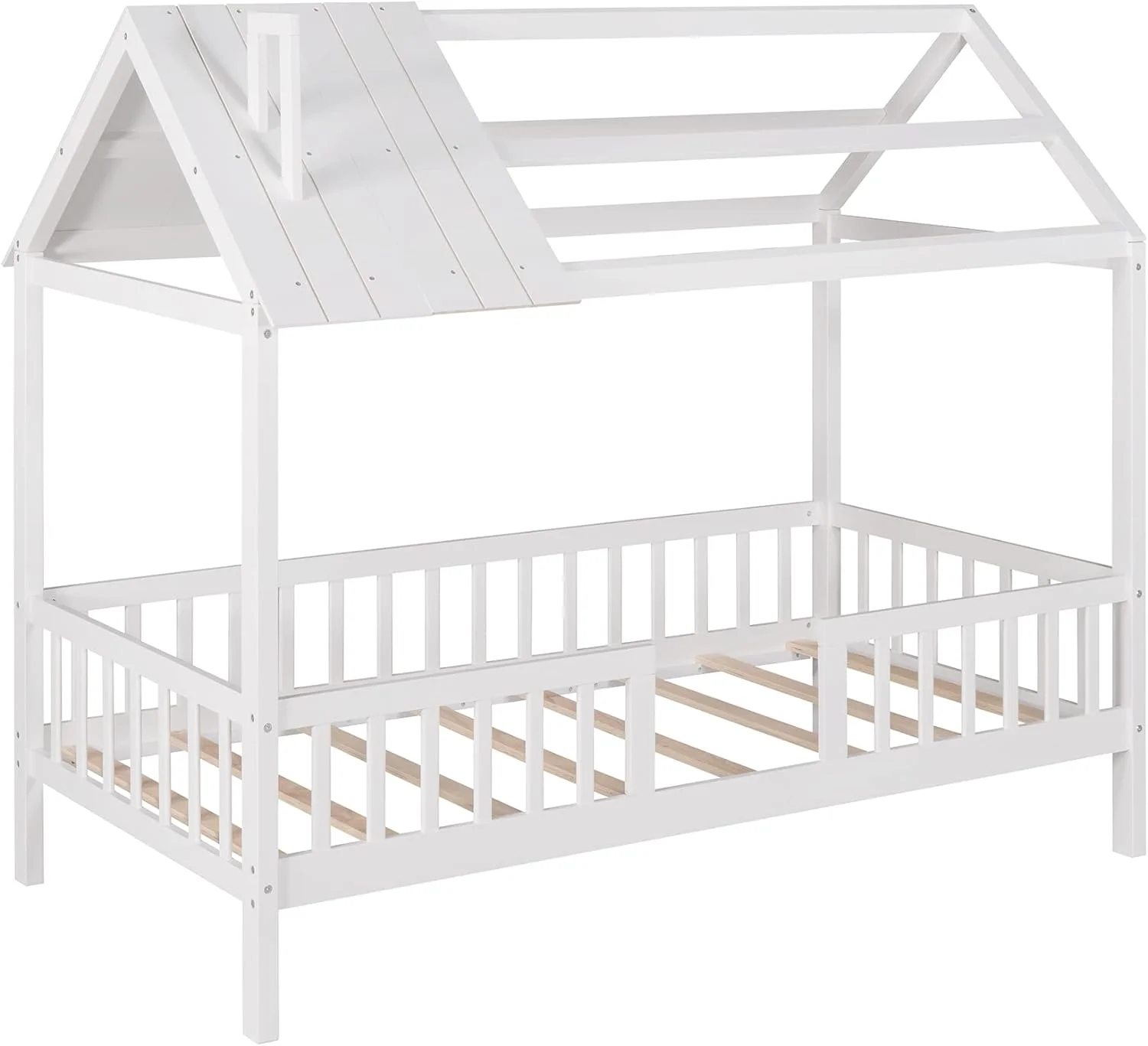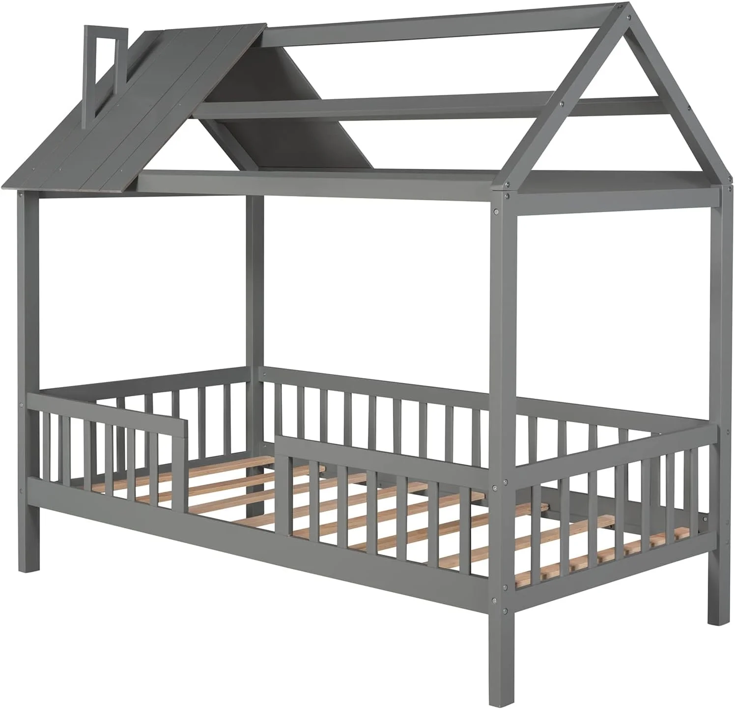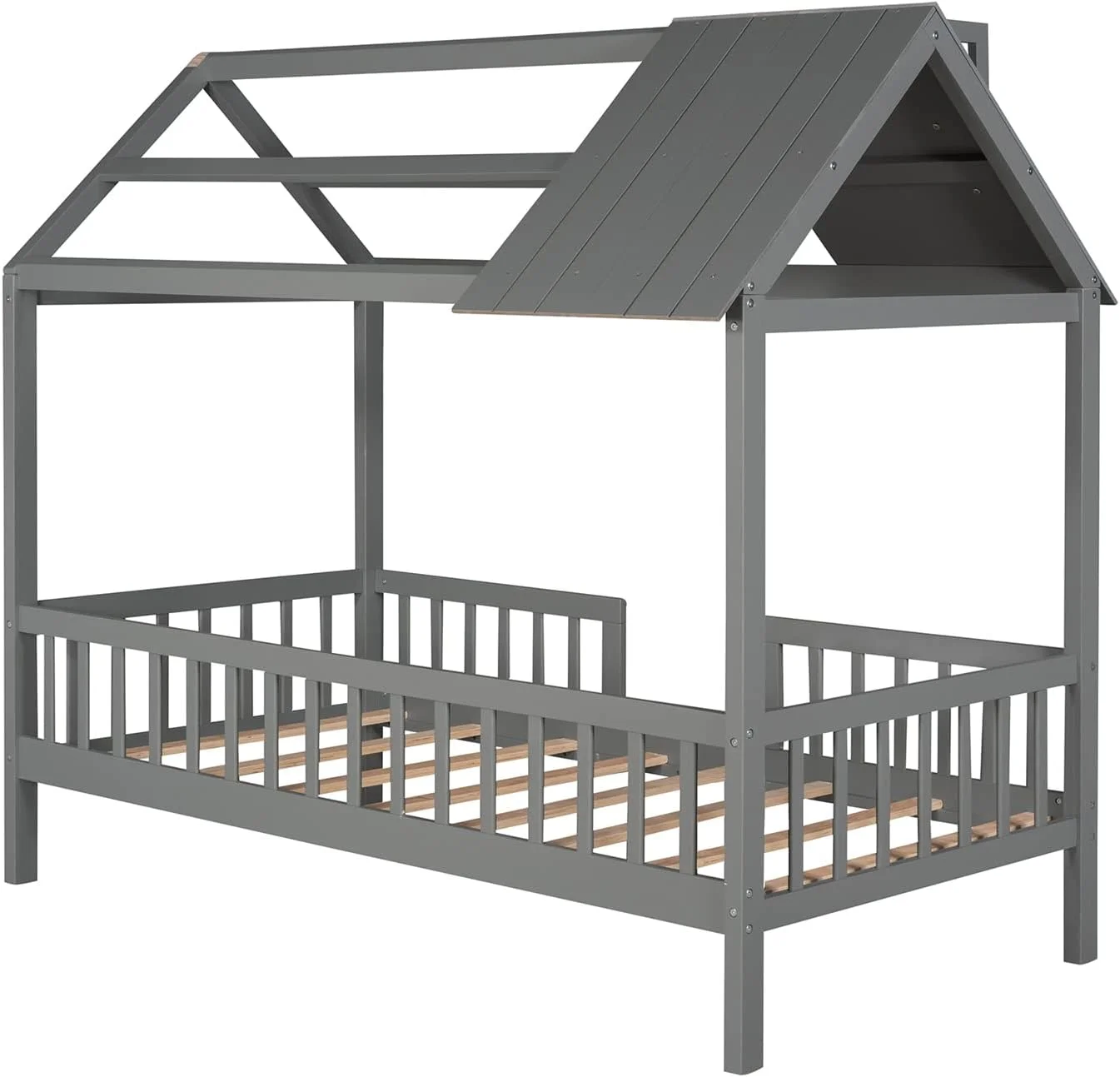 LANTRO JS House Bed Frame Twin Size, Kids Bed Frame Metal Platform Bed Floor Bed for Kids Boys Girls No Box Spring Needed