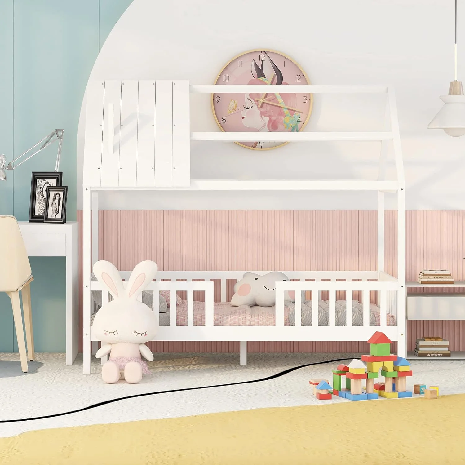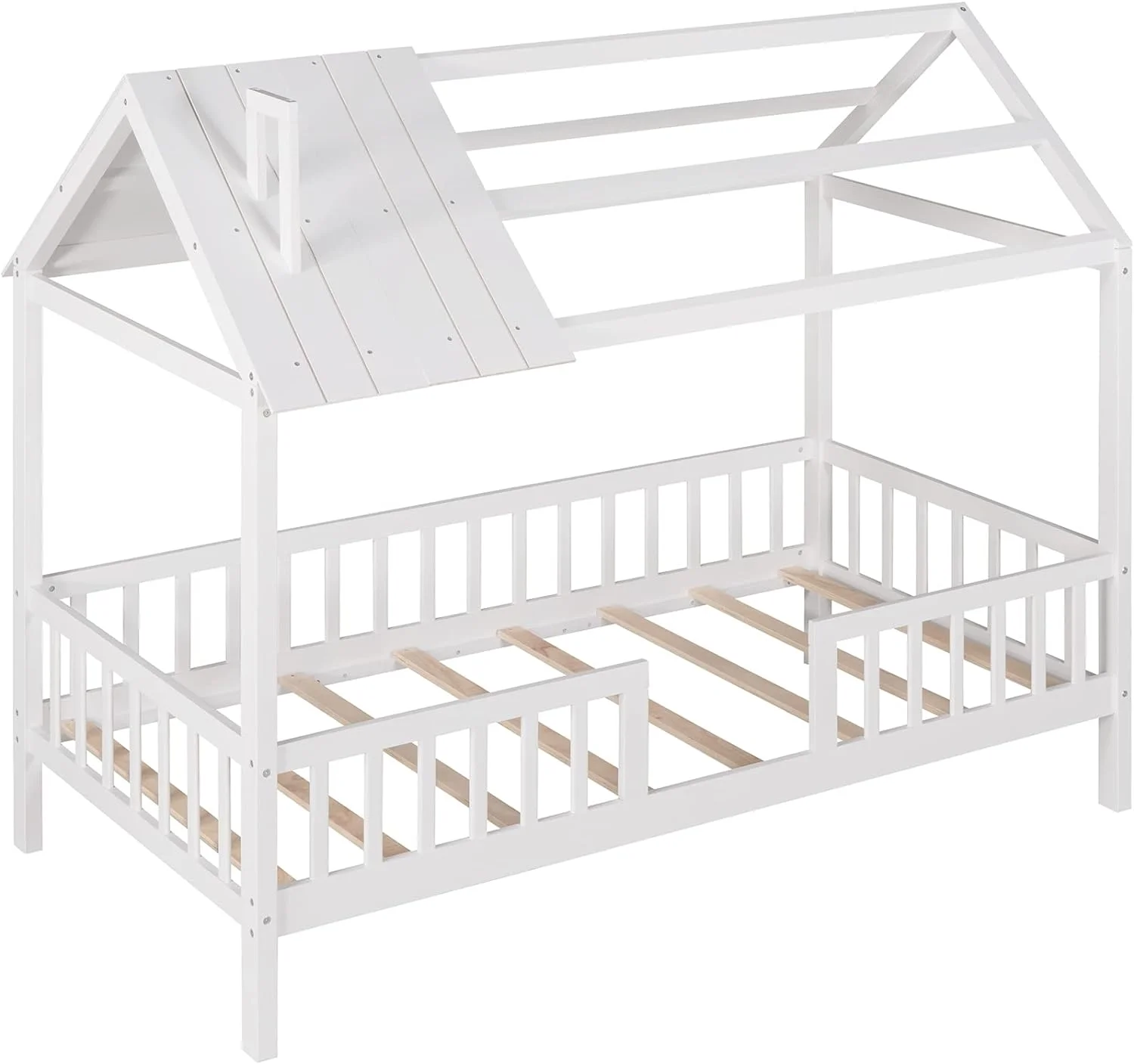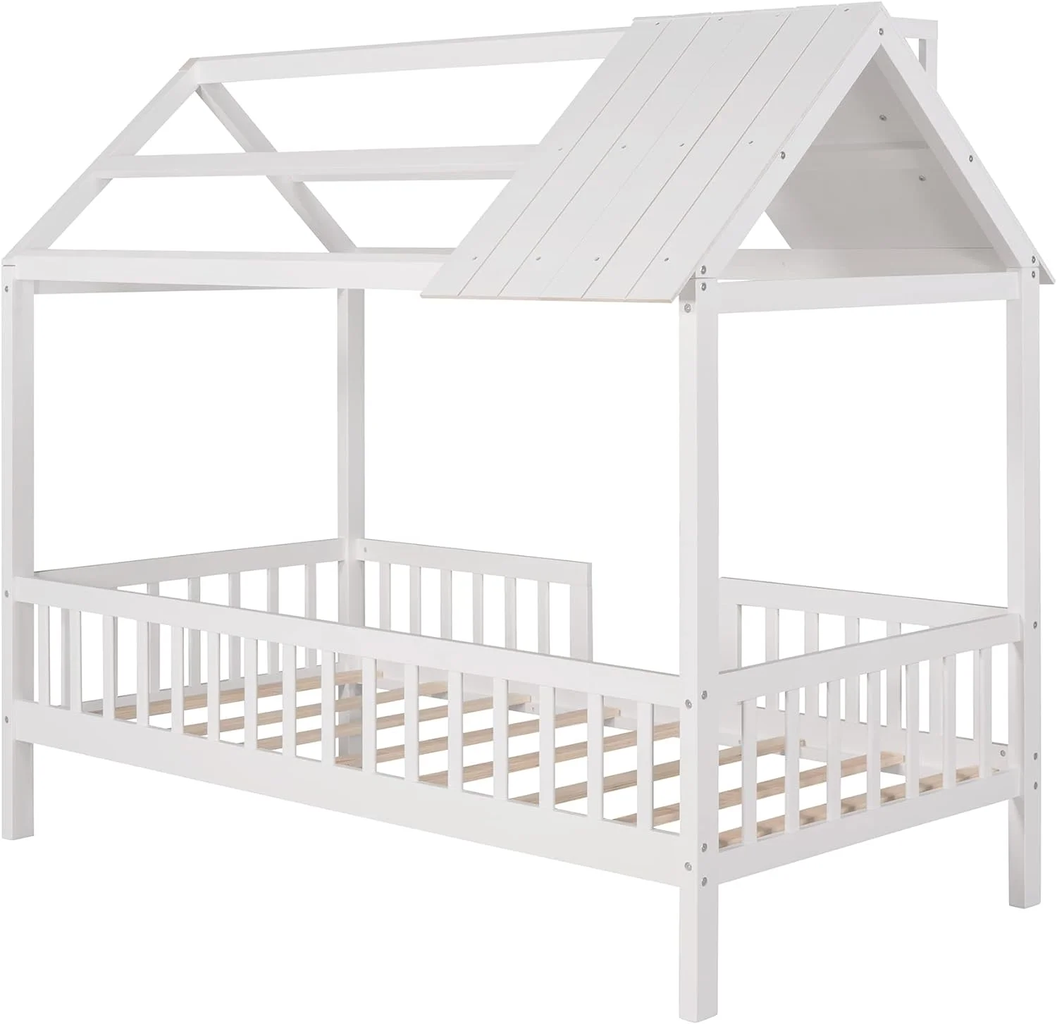 LANTRO JS House Bed Frame Twin Size, Kids Bed Frame Metal Platform Bed Floor Bed for Kids Boys Girls No Box Spring Needed