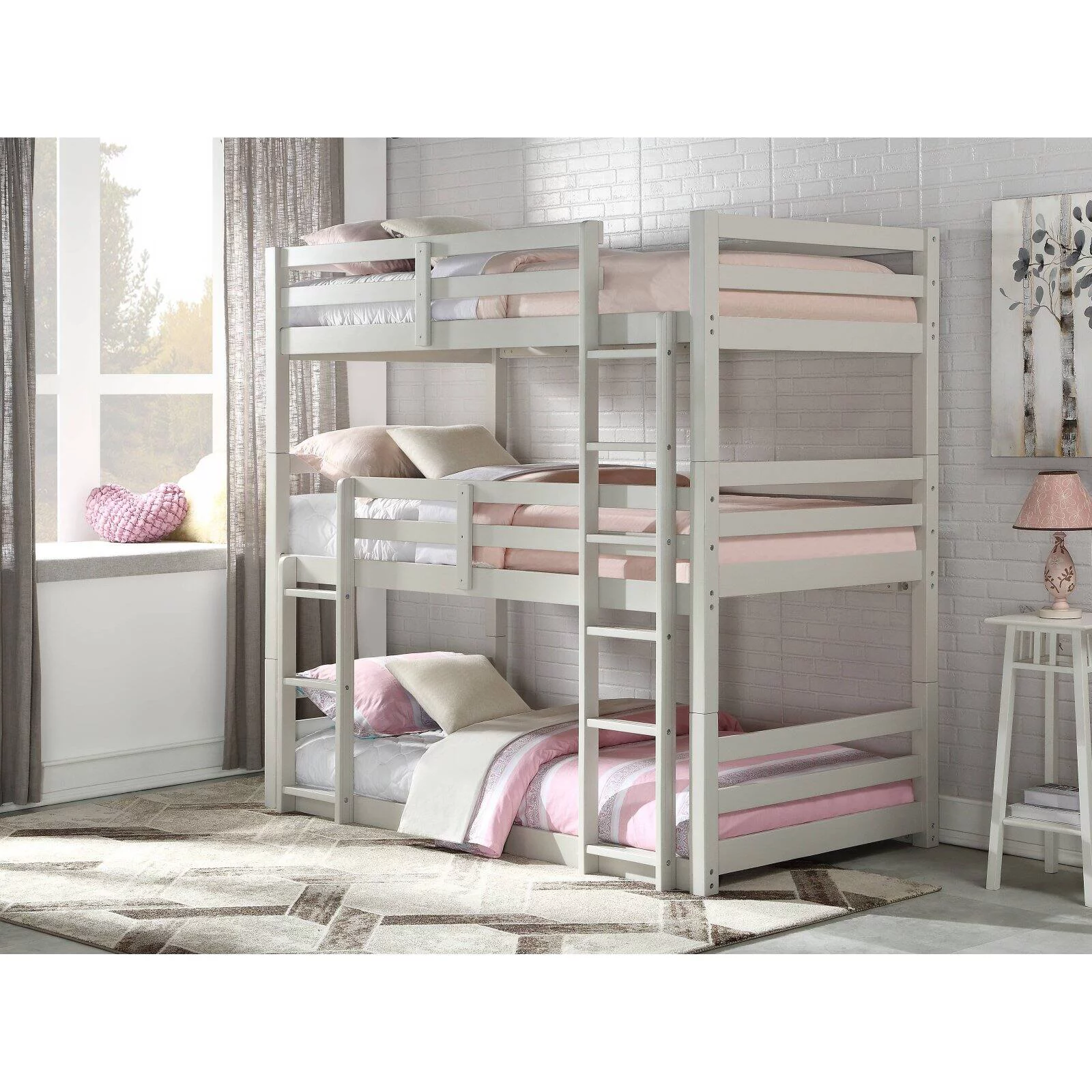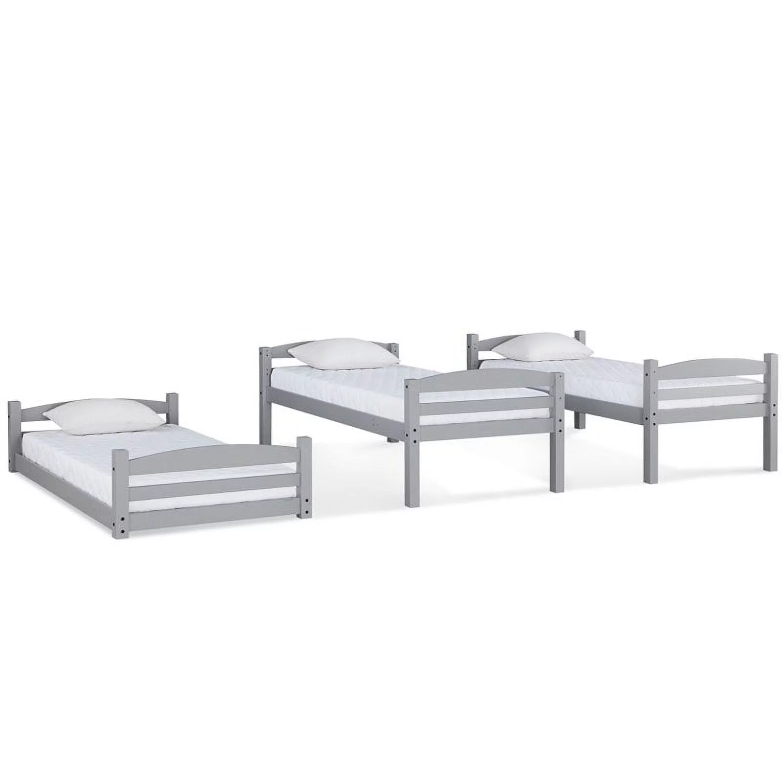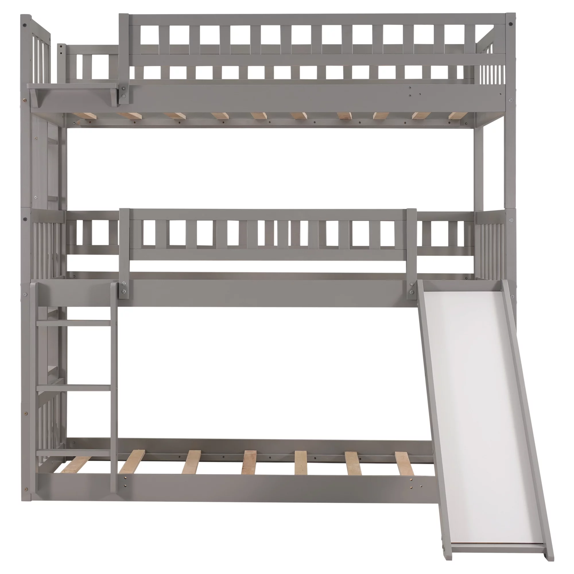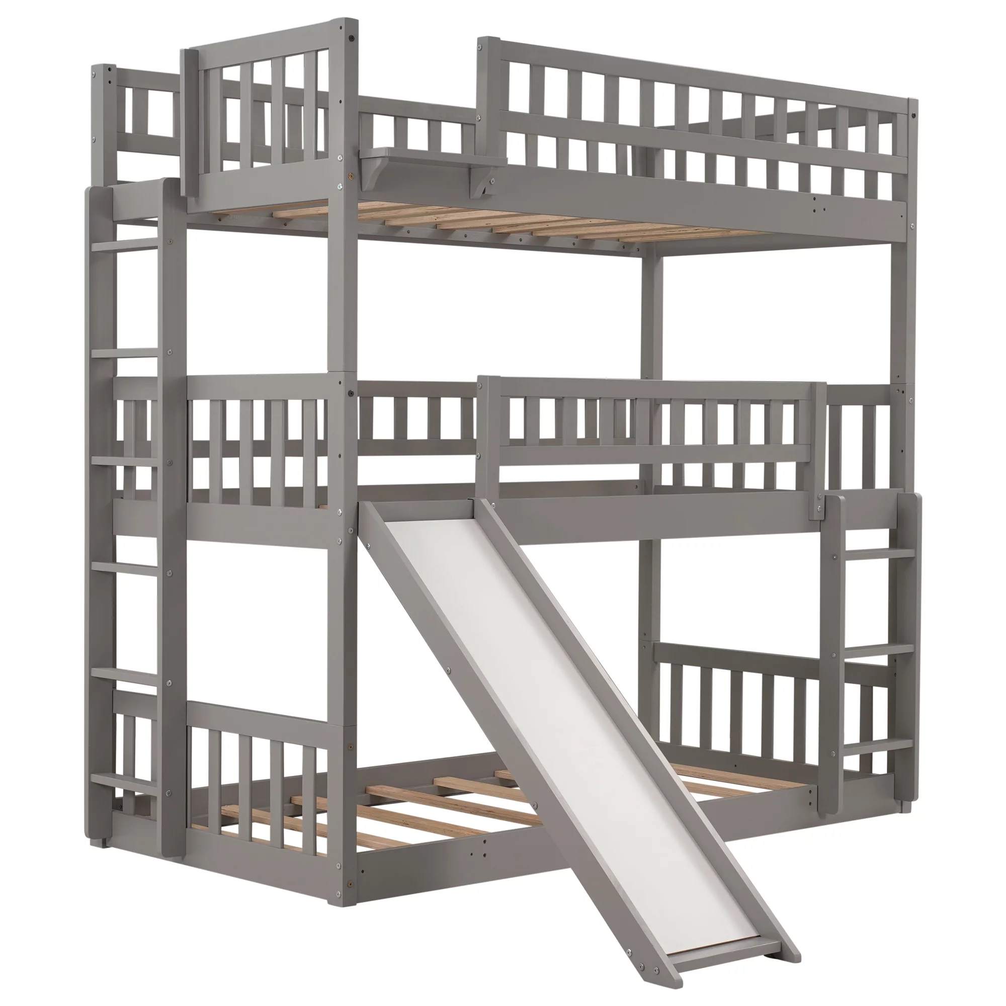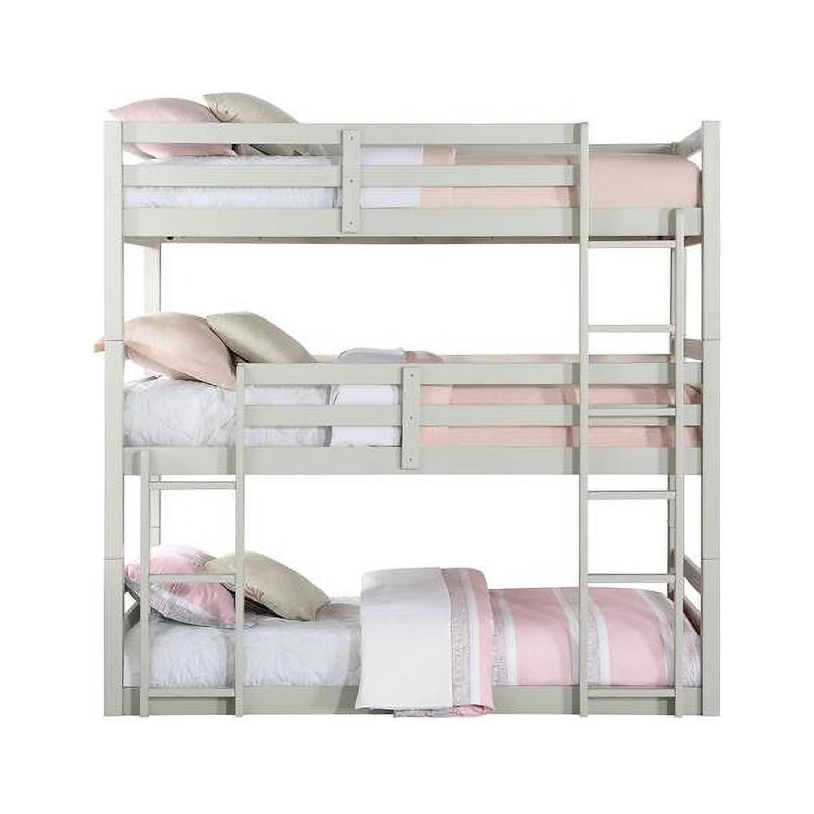 Dawn Whisper Full over Twin and Twin Bunk Bed, Triple Bunk Bed with Drawers, Gray