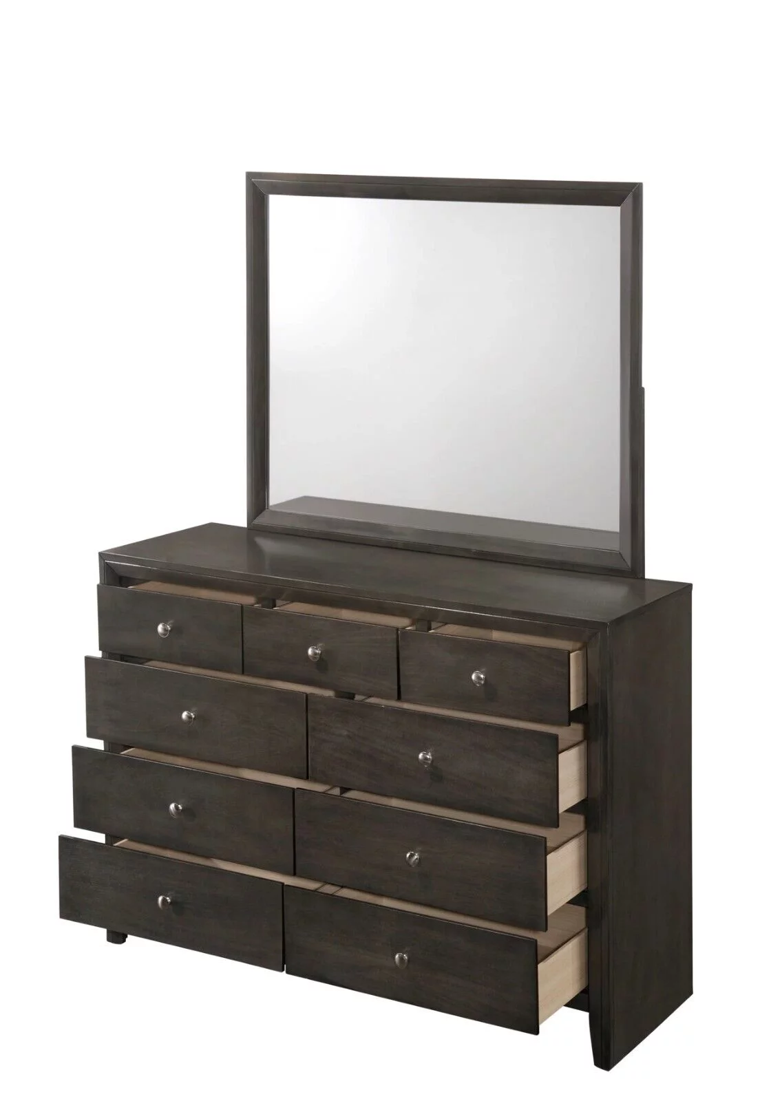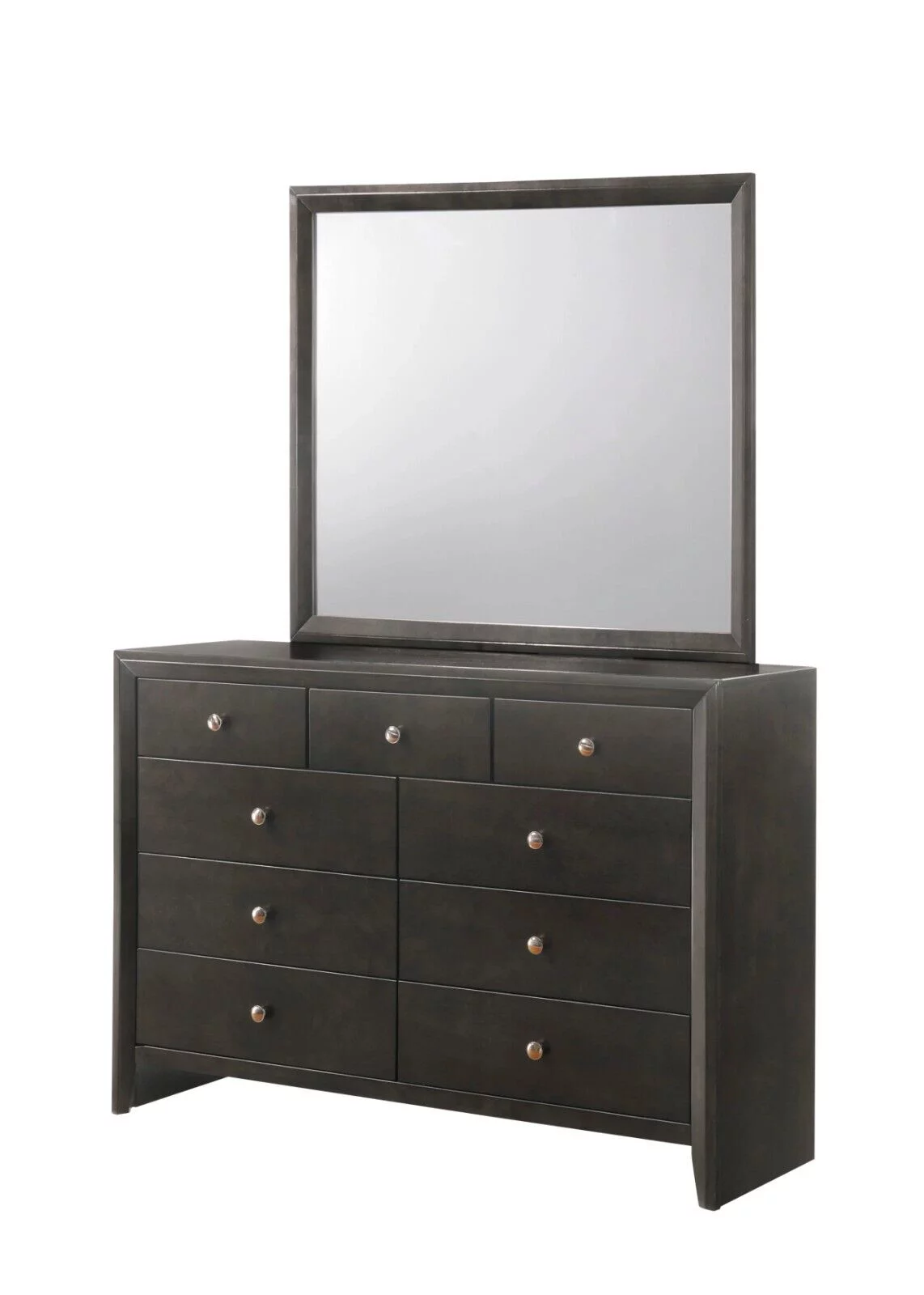 Contemporary 4pc Full Size Platform Bedroom Set Gray Finish Bed Dresser Mirror Nightstand Wooden Bedroom Furniture