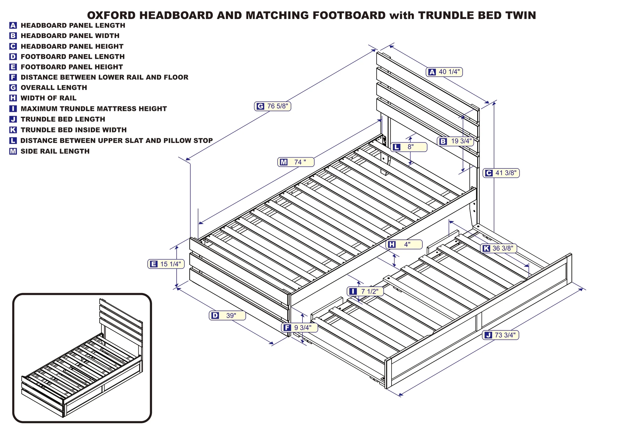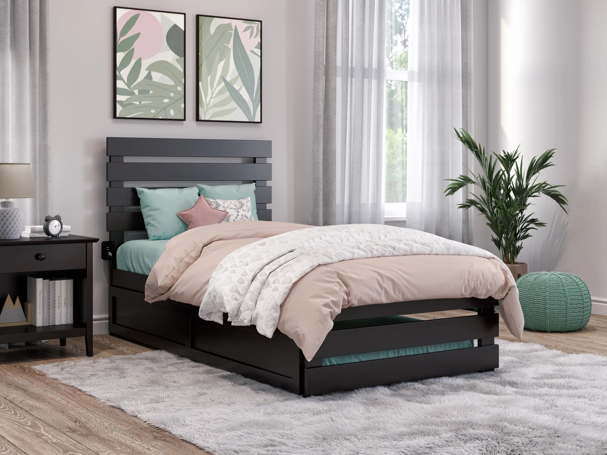 AFI Oxford Twin Wood Platform Bed with Headboard Footboard & Twin XL Trundle, Espresso