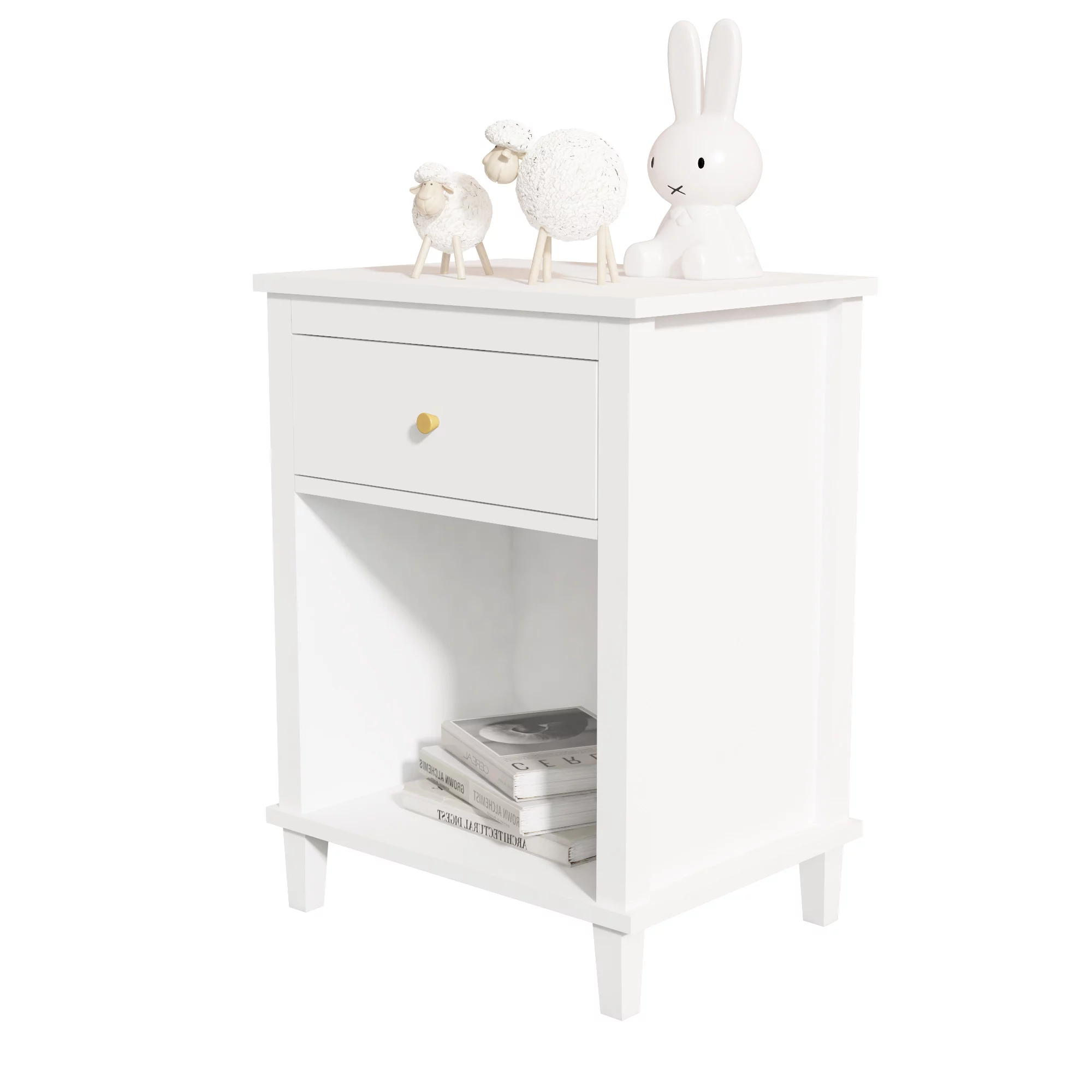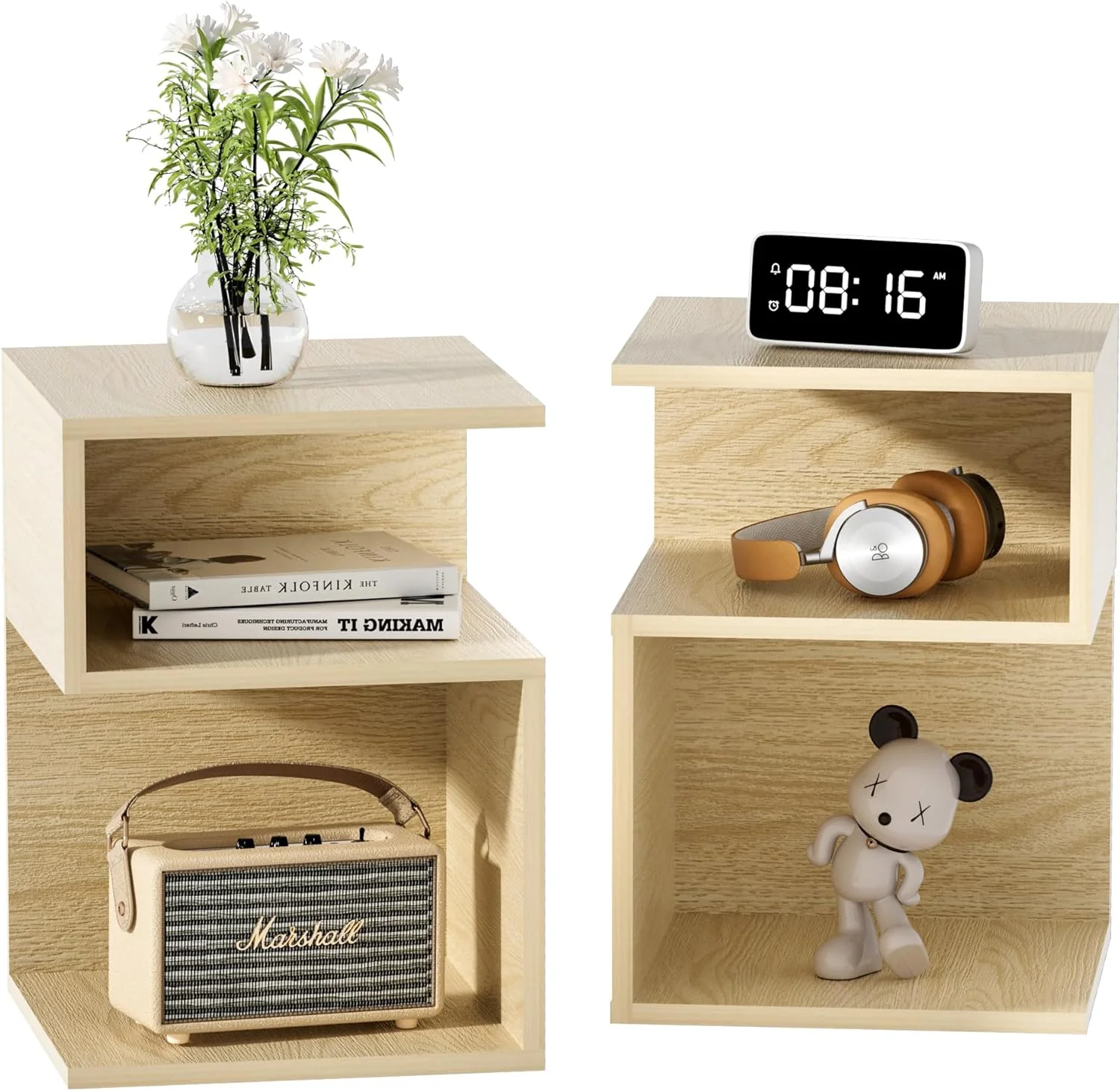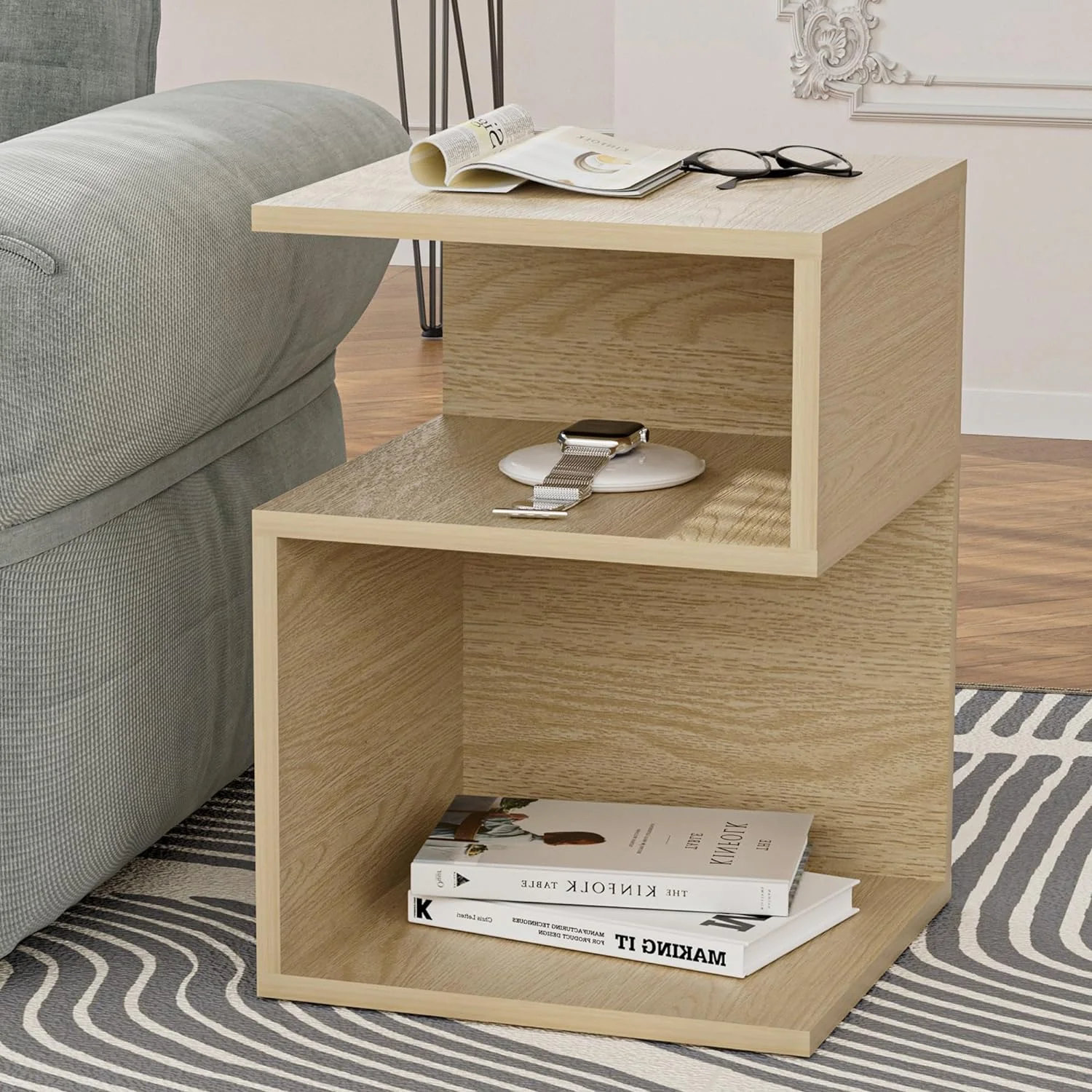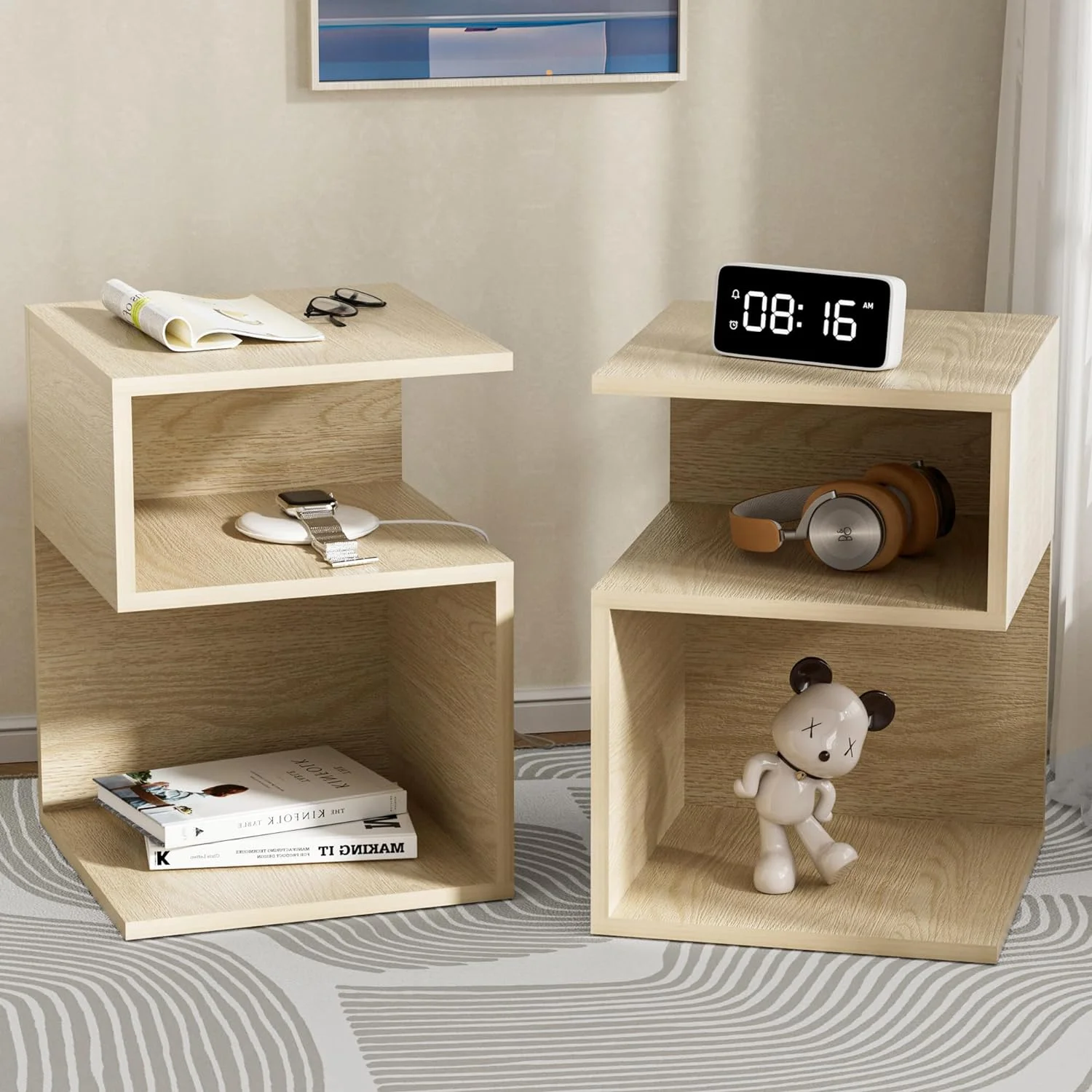 Minimalist 3-Tier Wood Mirror Nightstand for Small Spaces with Open Storage - Japanese-Inspired Bedside Table for Bedroom