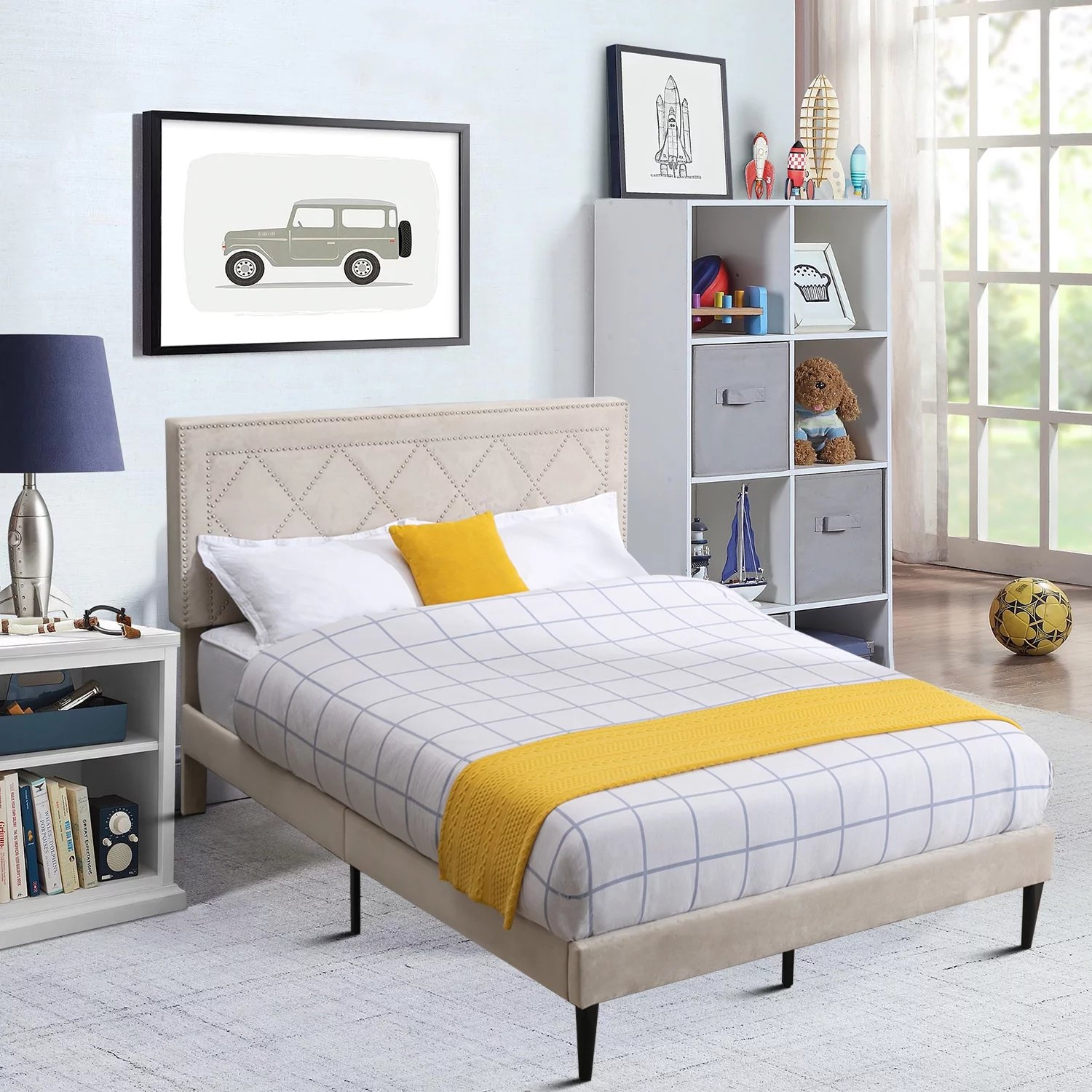 Carson Carrington Valsta Tufted Fabric Headboard Bed Grey Full Children's, Modern & Contemporary