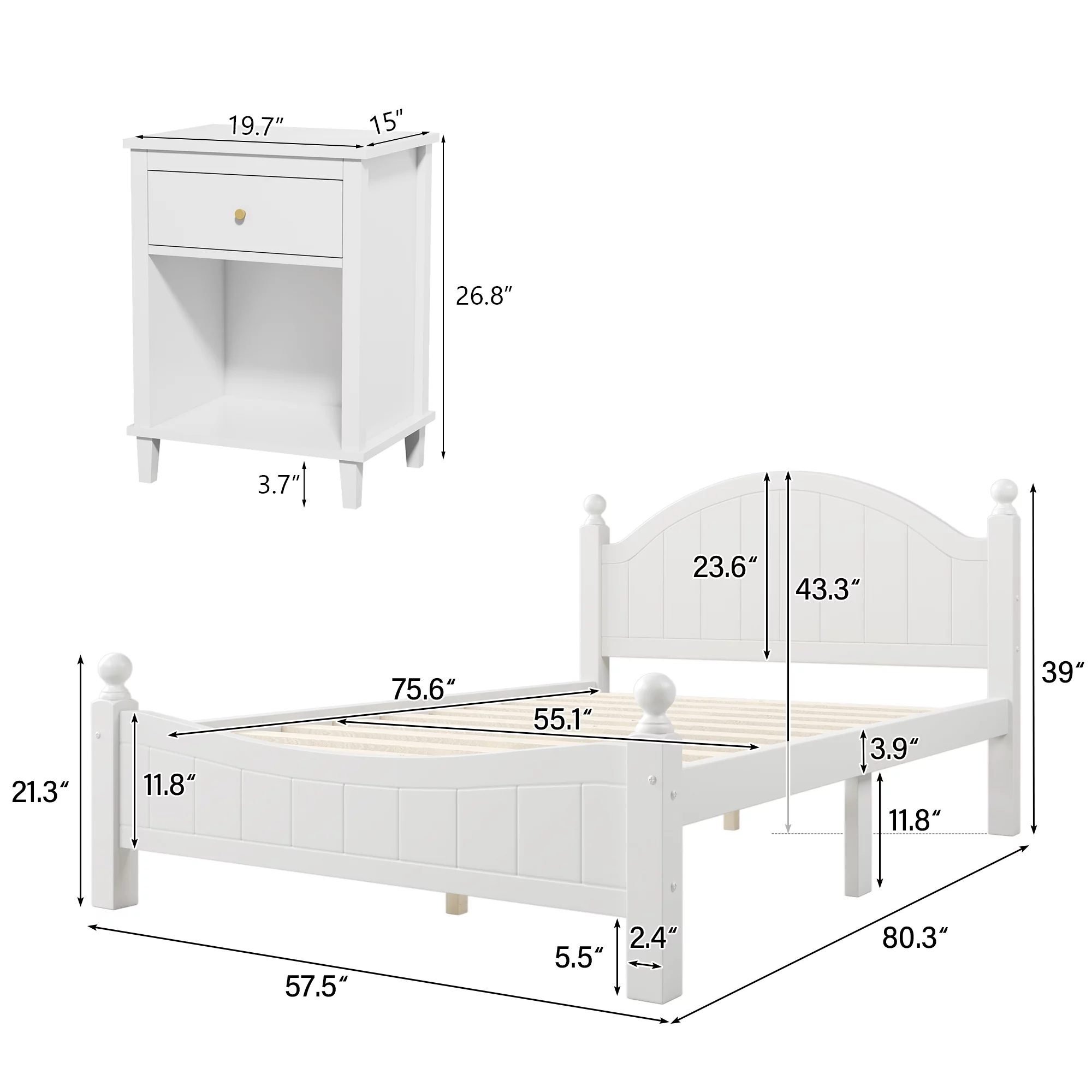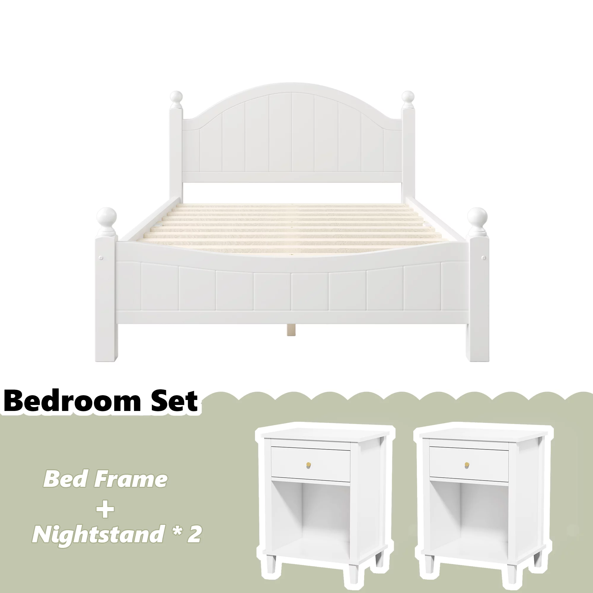 Bellemave 3 Pieces Full Bedroom Furniture Set with Wood Full Size Platform Bed and 2 Nightstands in White