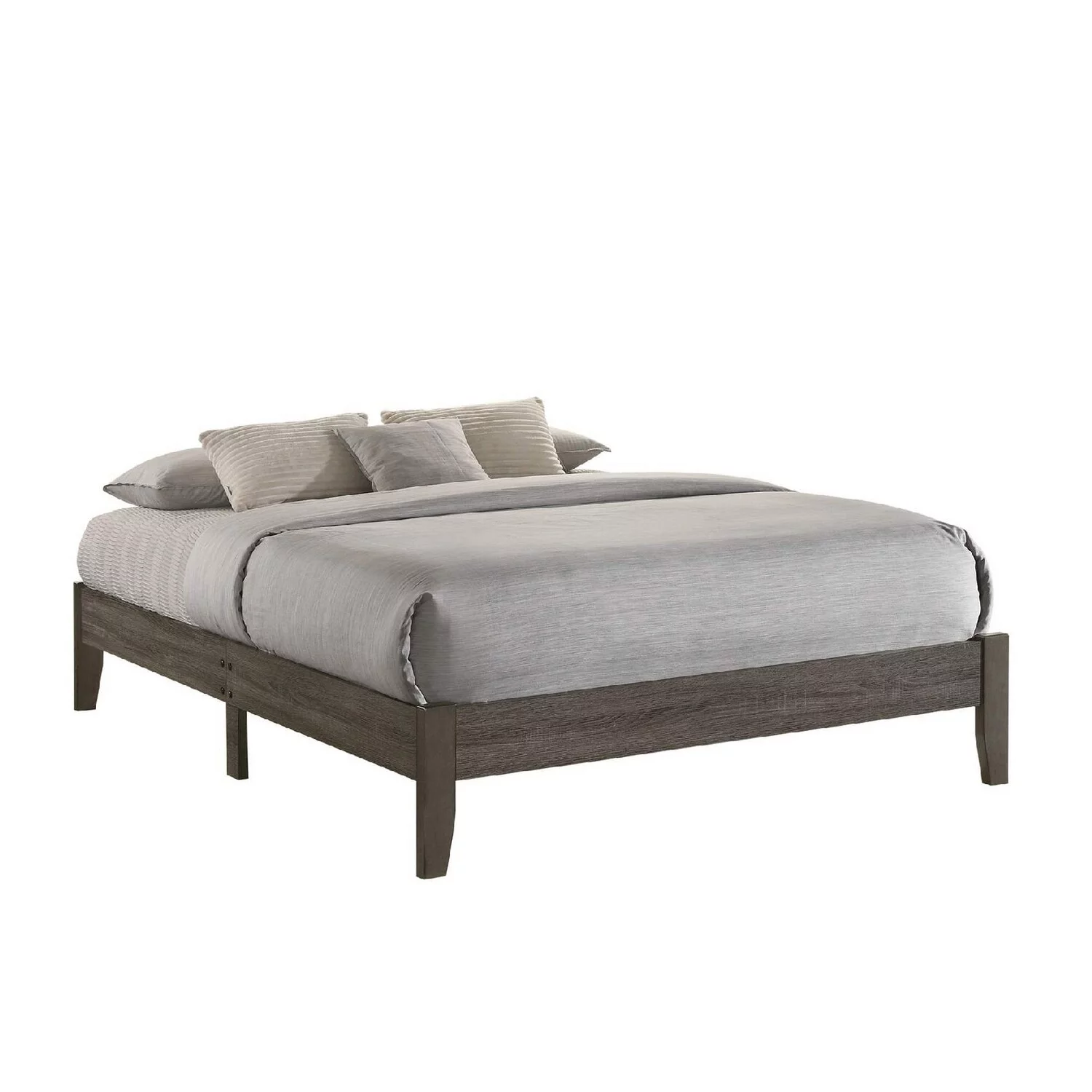 Benjara Queen Size Bed with Wooden Transitional Platform Style, Gray