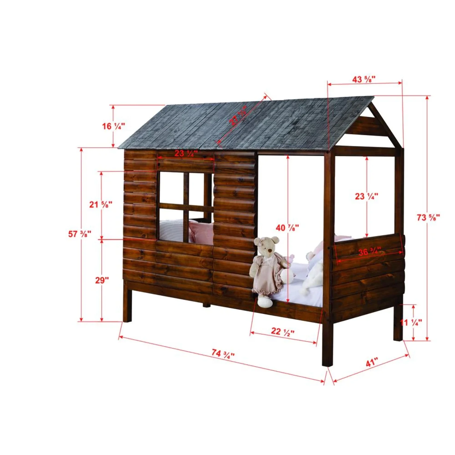 Donco Kids Log Cabin Twin Solid Wood Low Loft Bed with Trundle in Rustic Walnut
