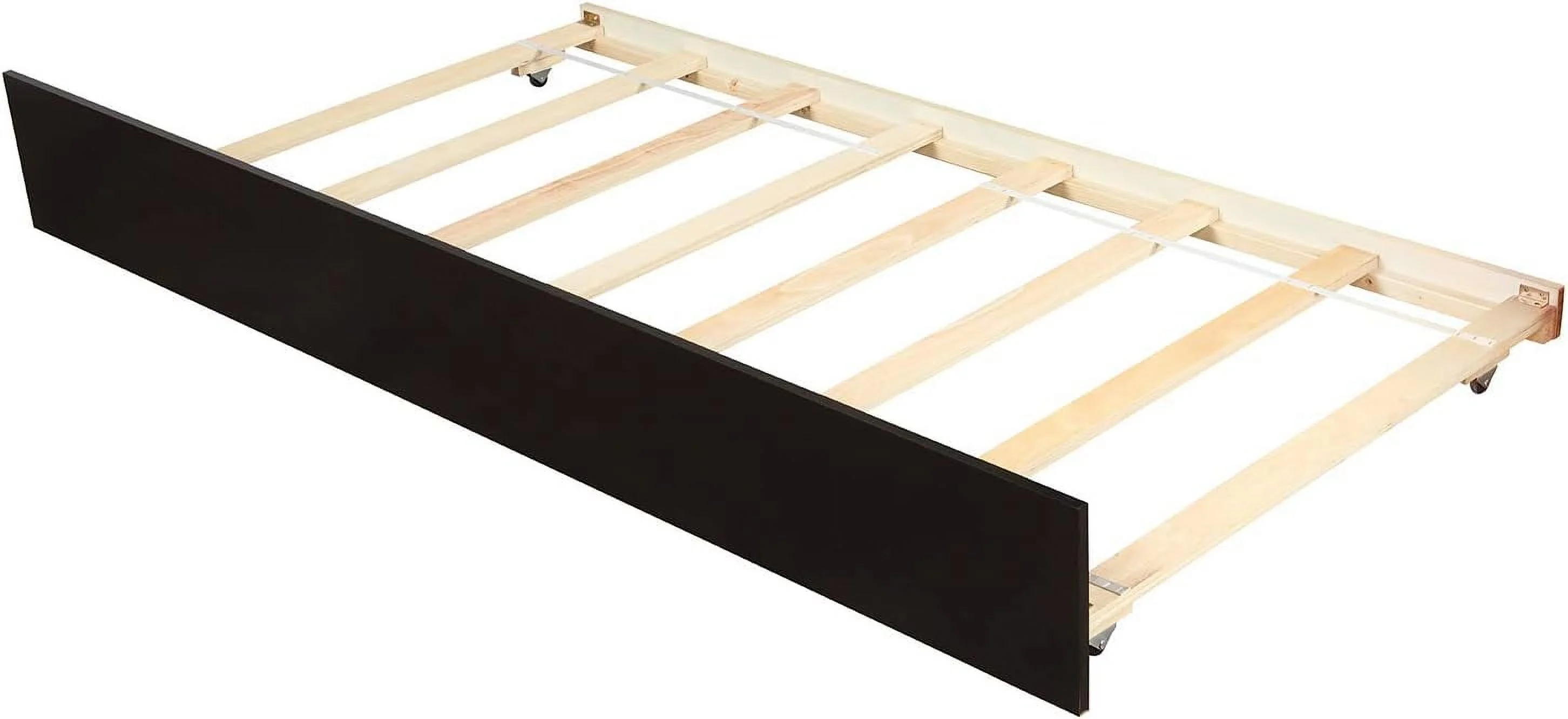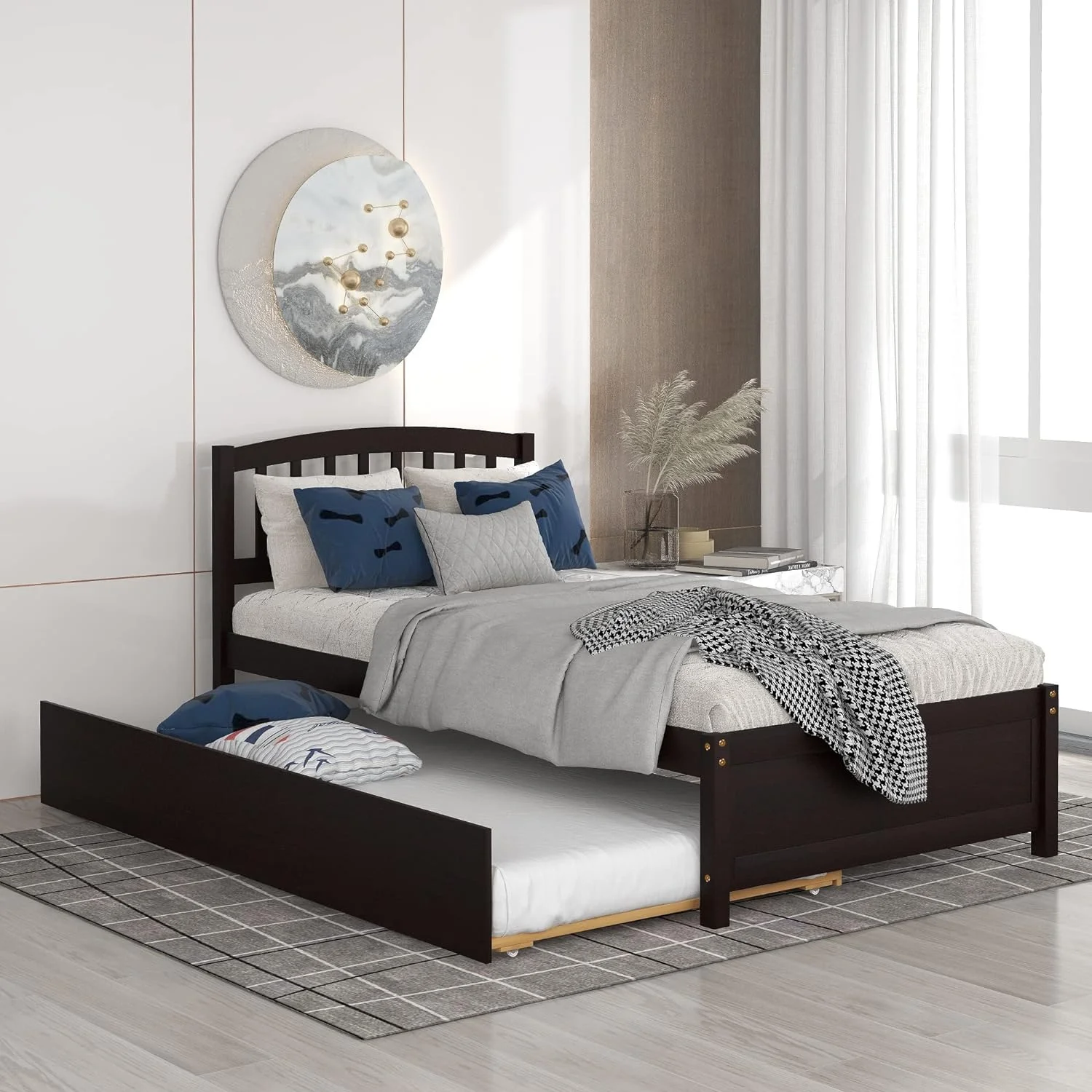 Woode Bed Frame Size, Platform Bed With Pull Out Trudle, Solid Platform Bed With Headboard For Kids(Espresso)