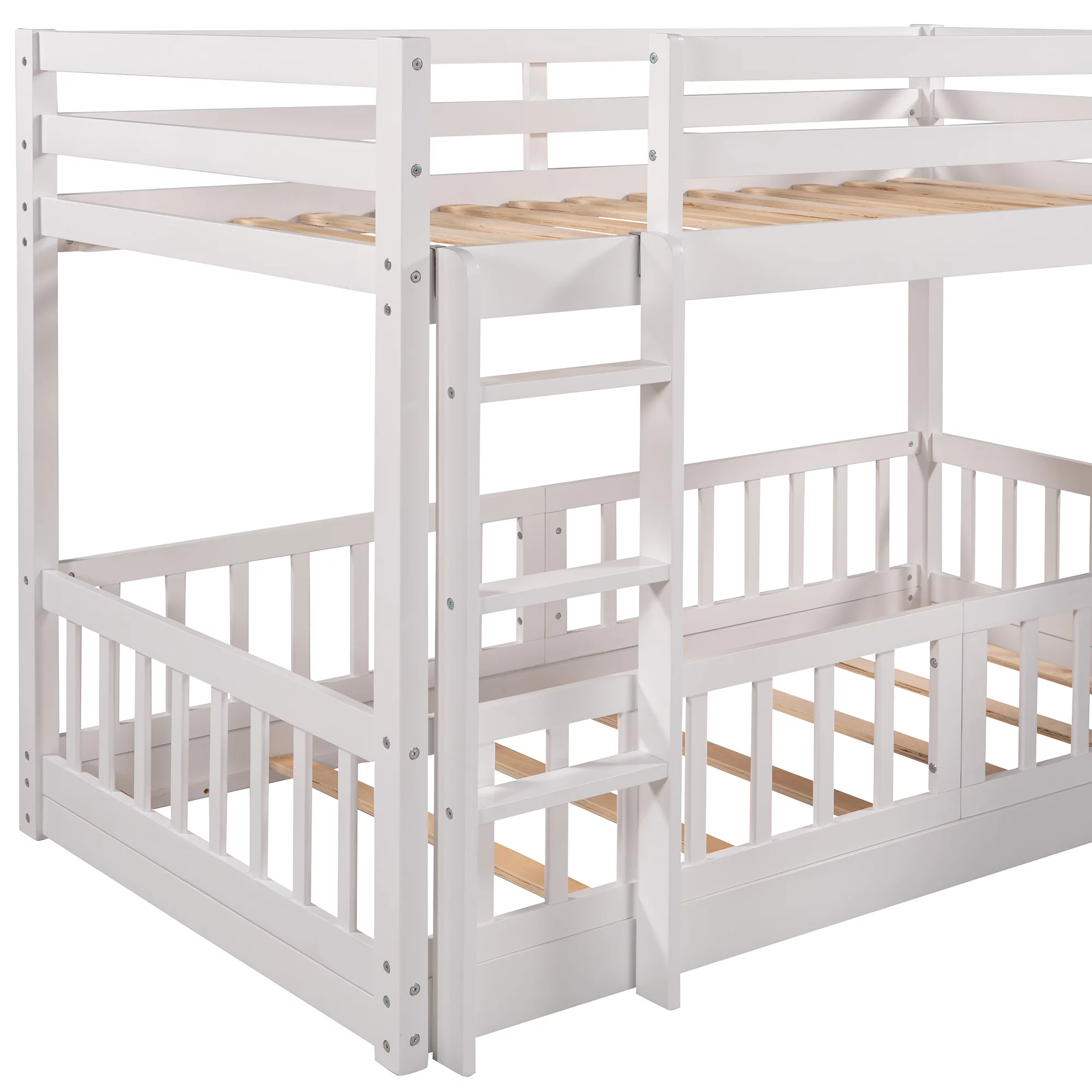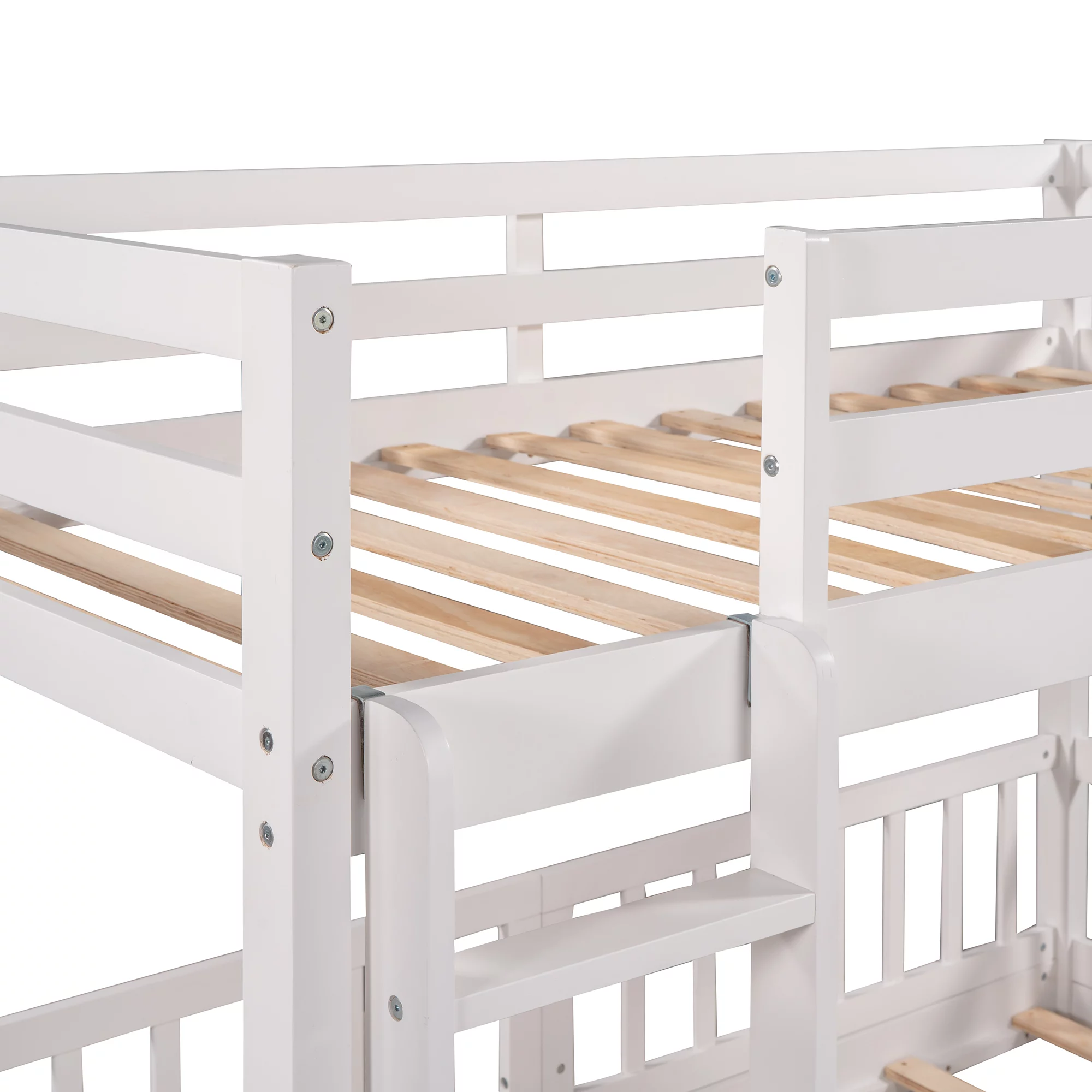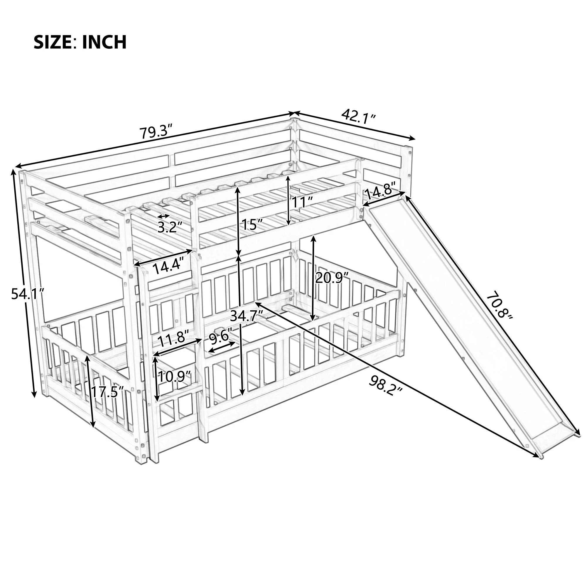 L-Shaped Bunk Bed Sets, Twin over Full & Twin over Twin Size with Slide and Ladder, Solid Wood Slats Support Solid Grey