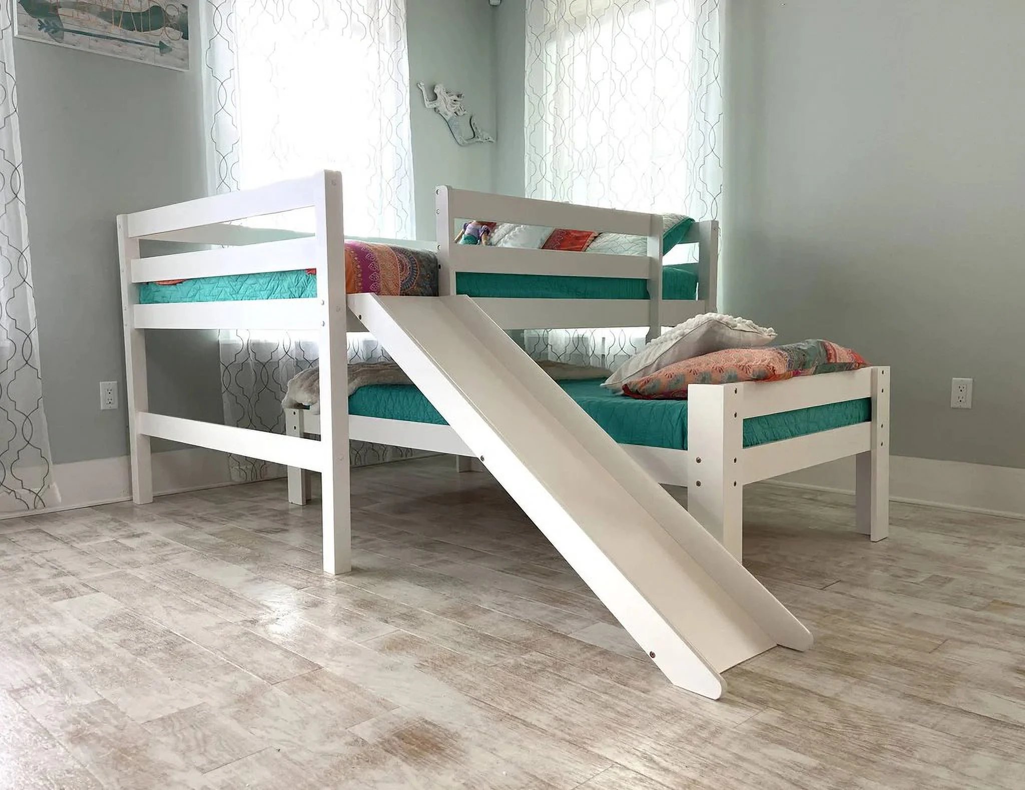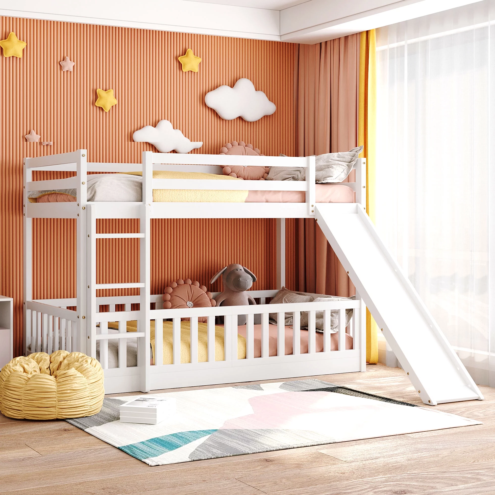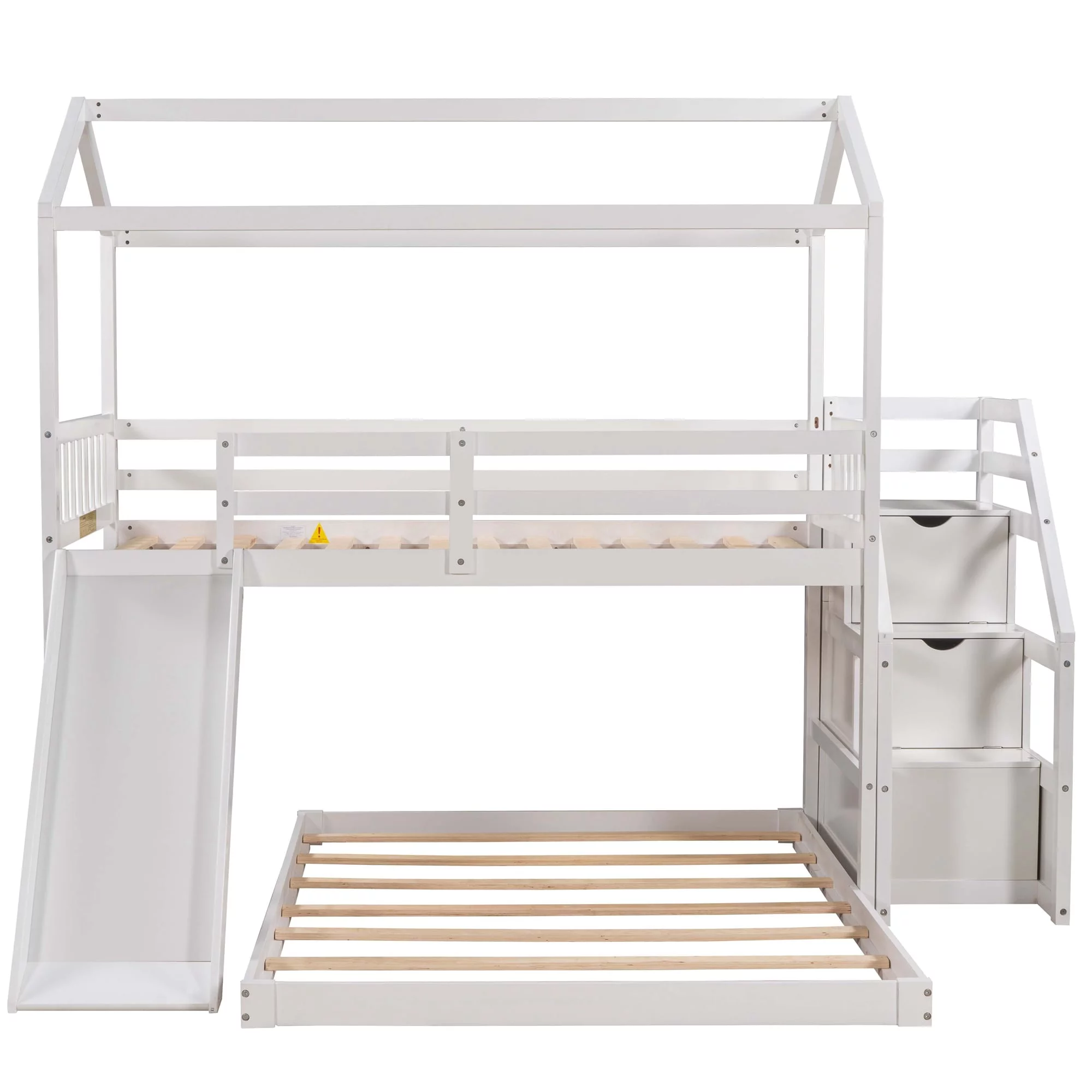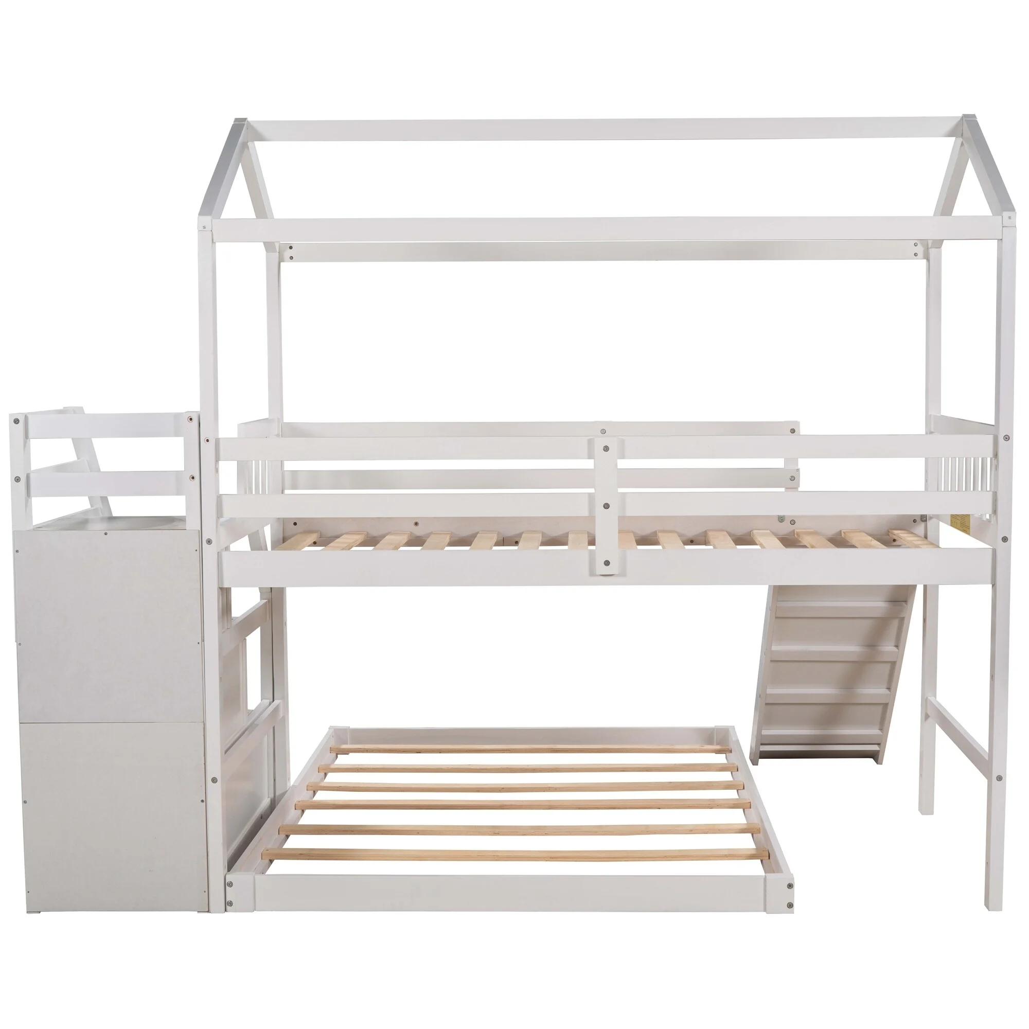 CoSoTower Twin over Full House Bunk Bed with Slide and Built-in Ladder, Full-Length Guardrail, White