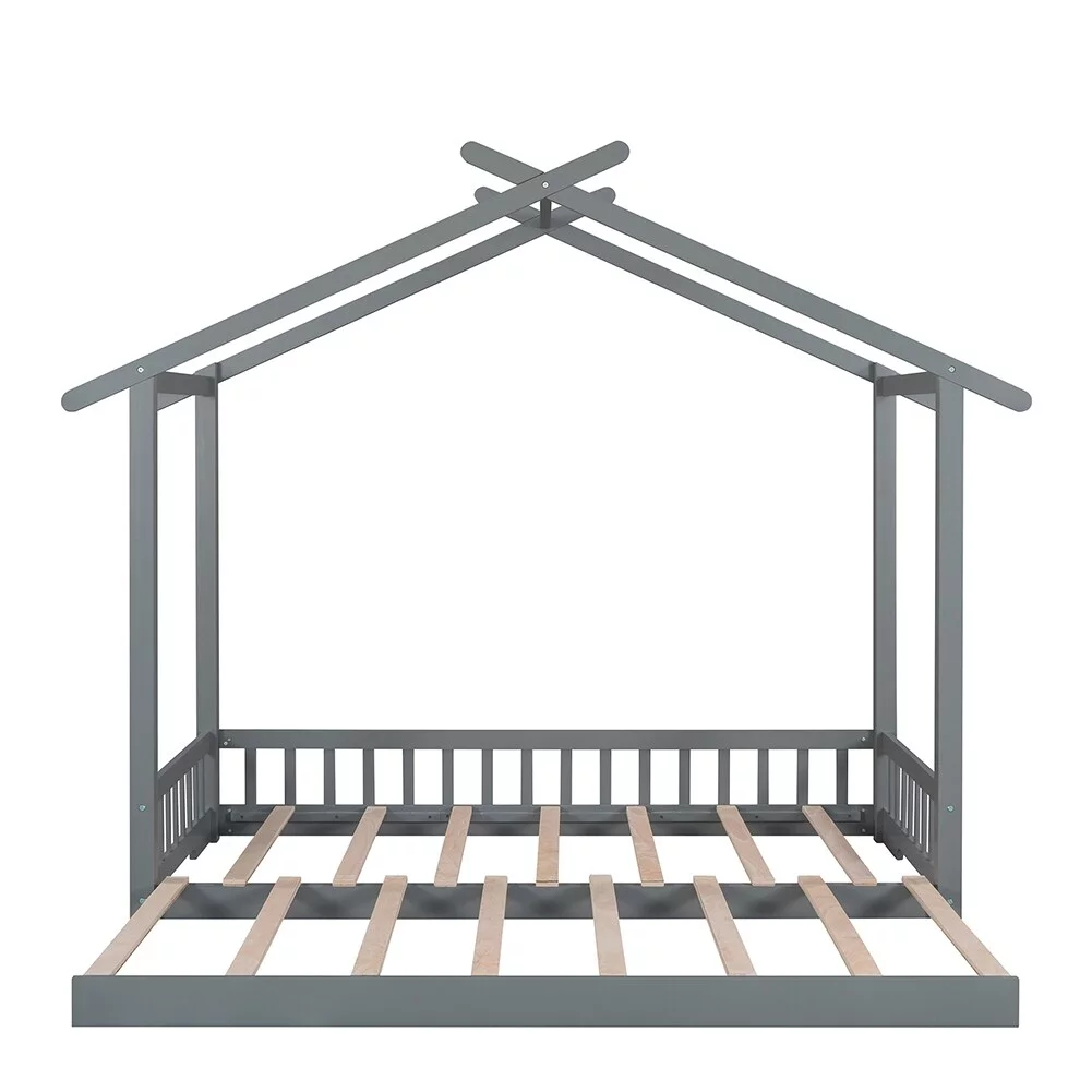 Home Adores, Inc. Kaylee Twin over Full House Bunk Bed with Slide and Storage Staircase Grey