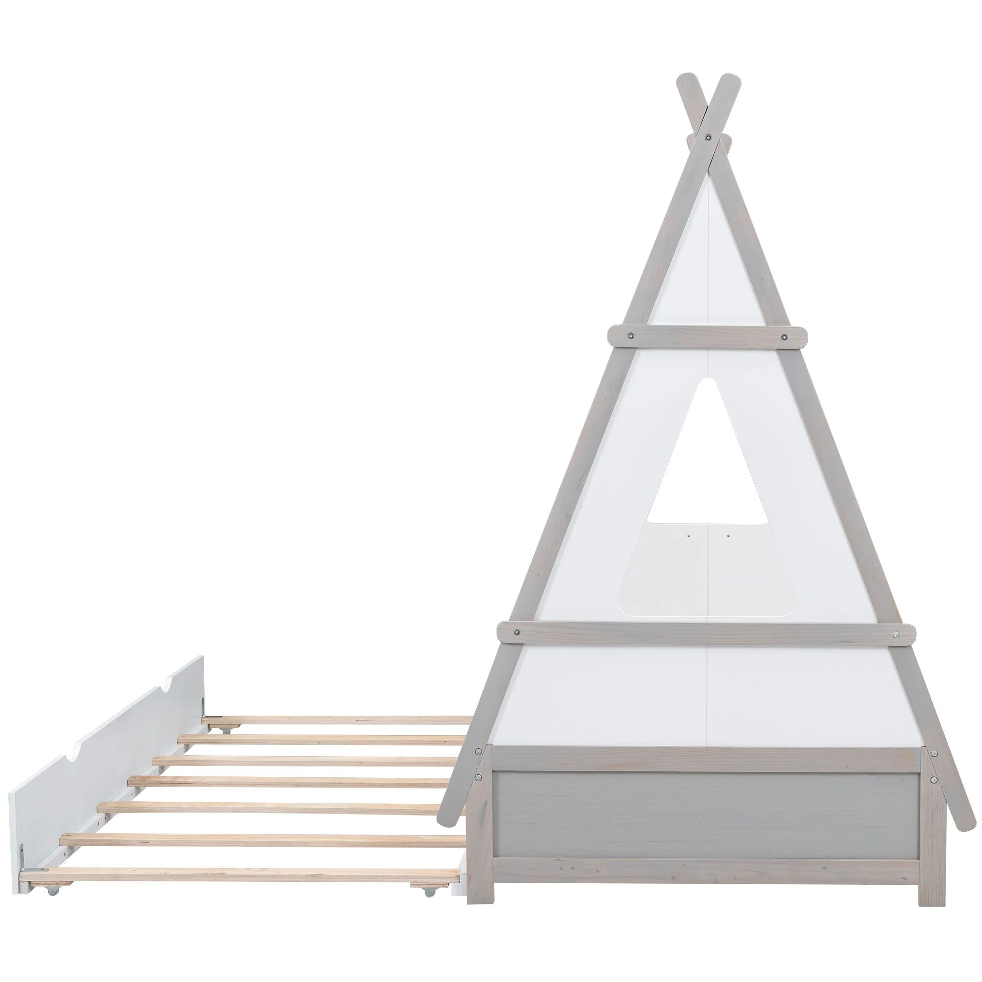 Bed Frame With Trundle, Kids Platform Bed With Pull Out Trundle,Solid Wood, No Box Spring Needed (Light Grey (Trundle))