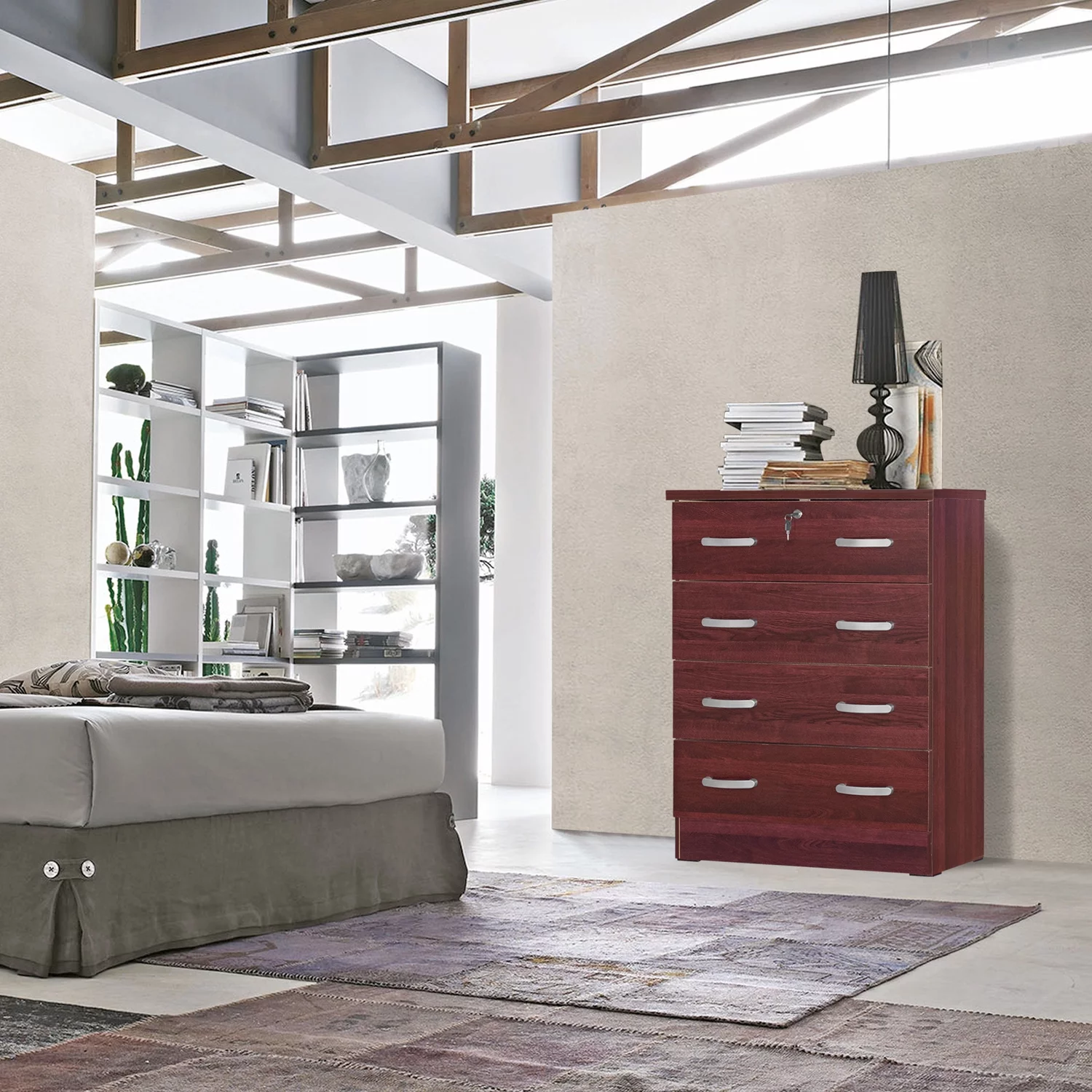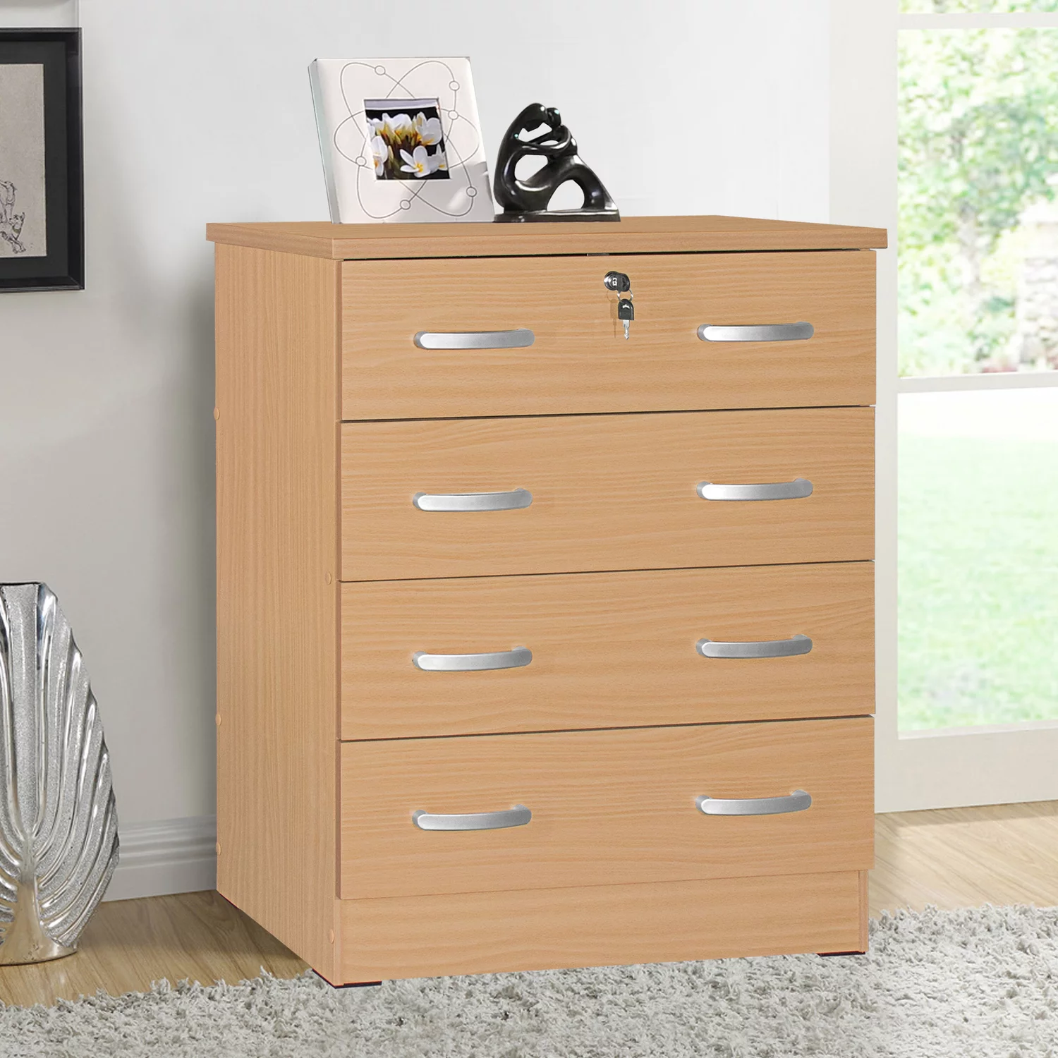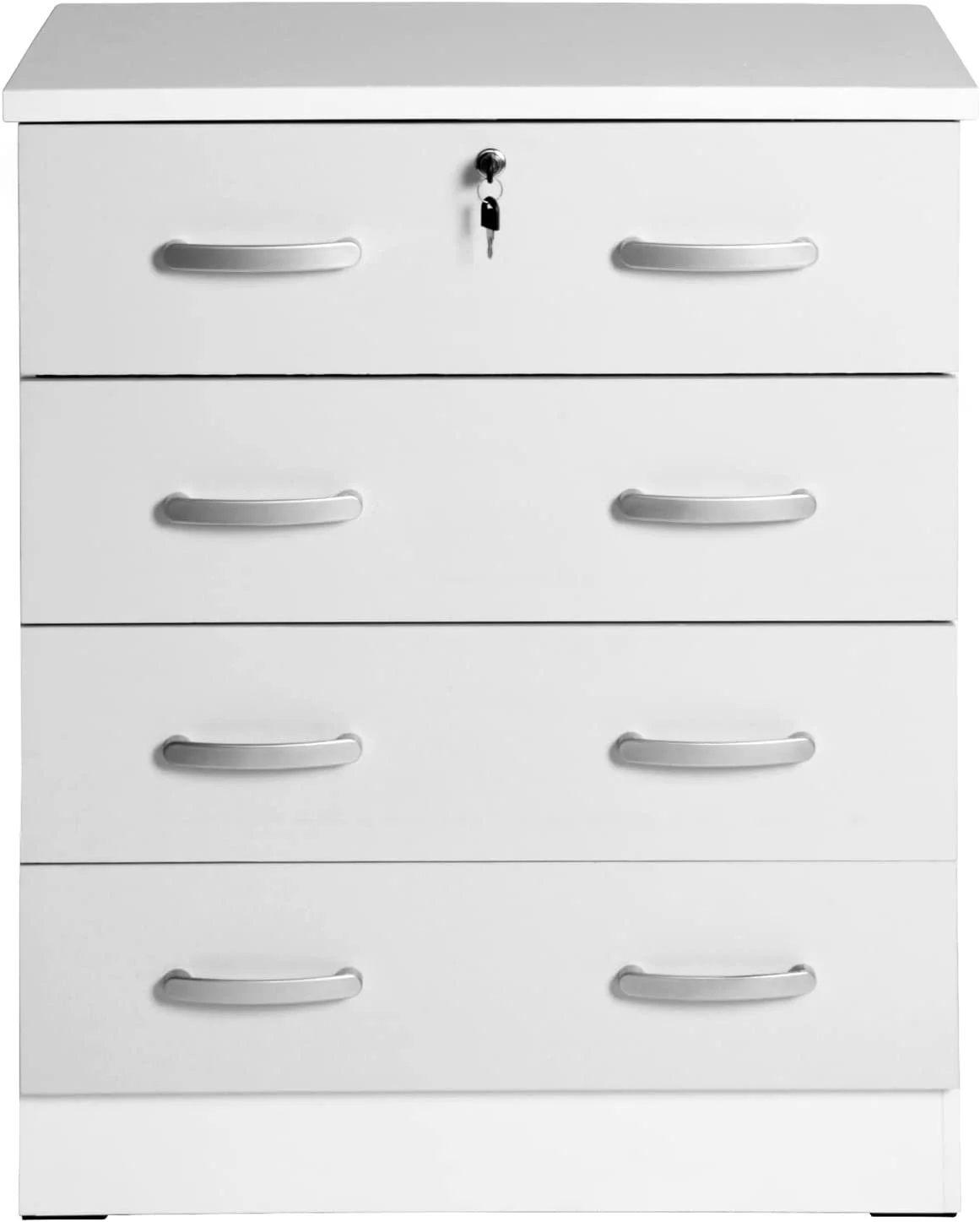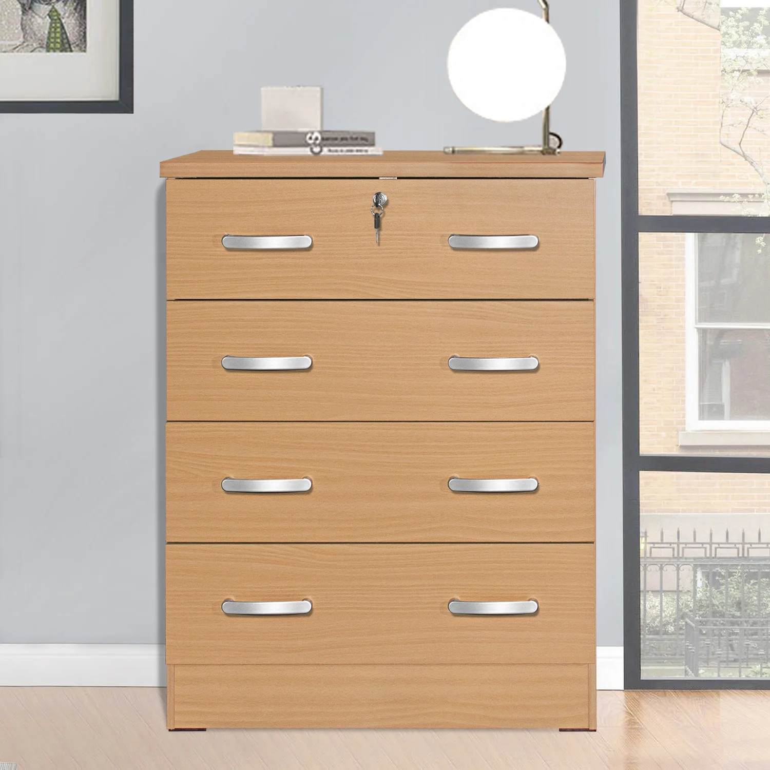 Better Home Products 4 Drawer Chest Dresser Wooden Storage Unit with Lock