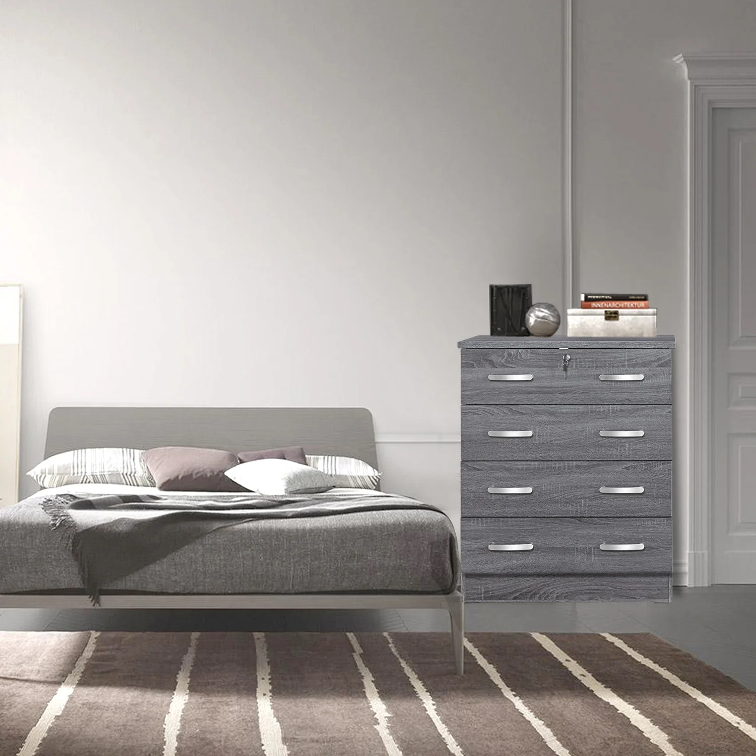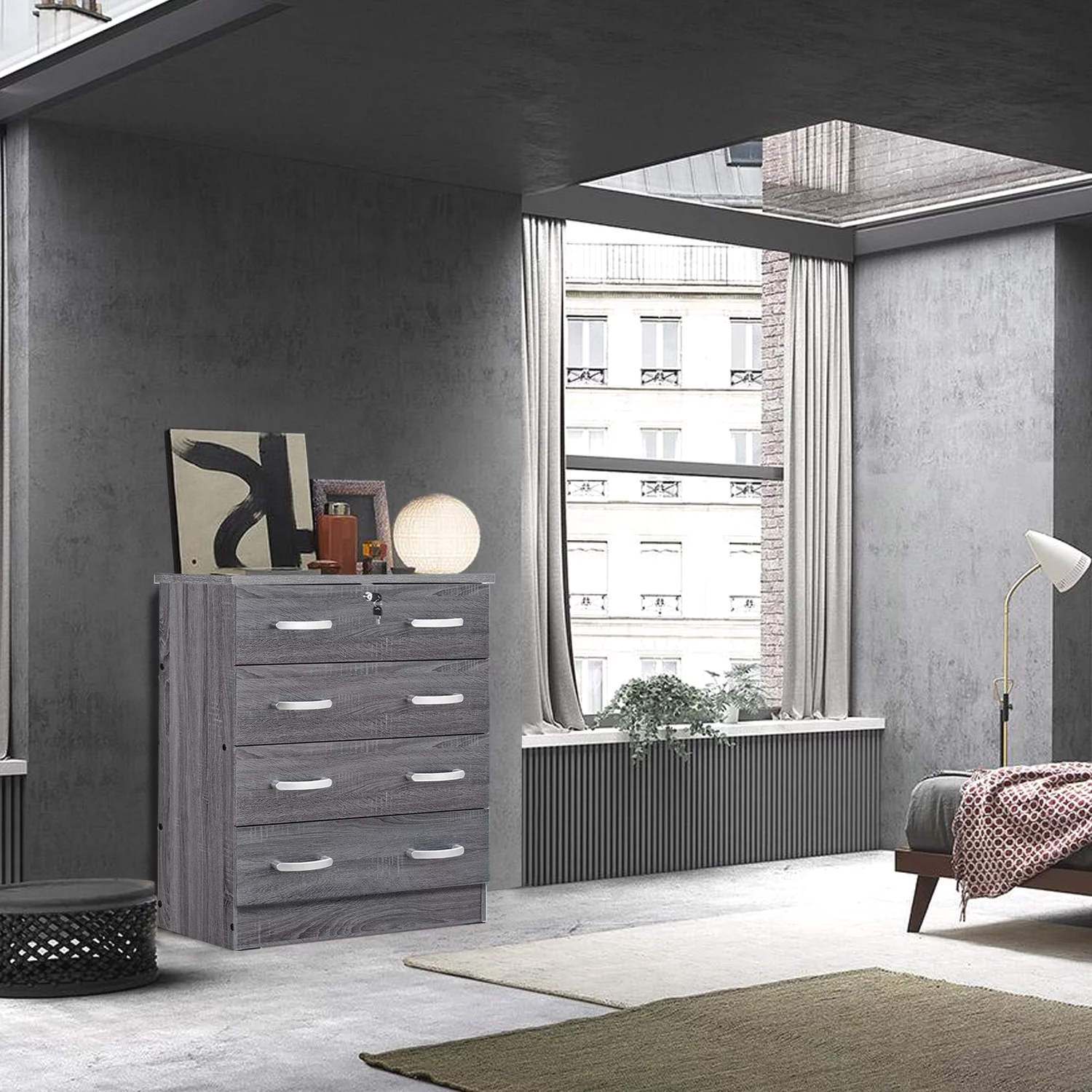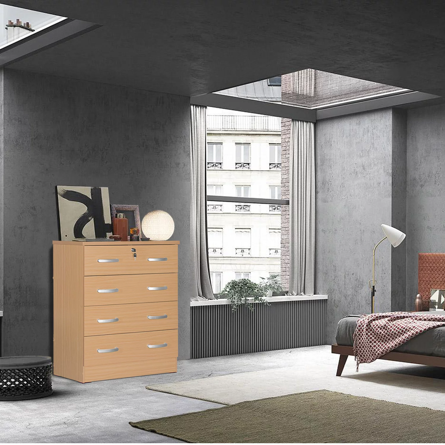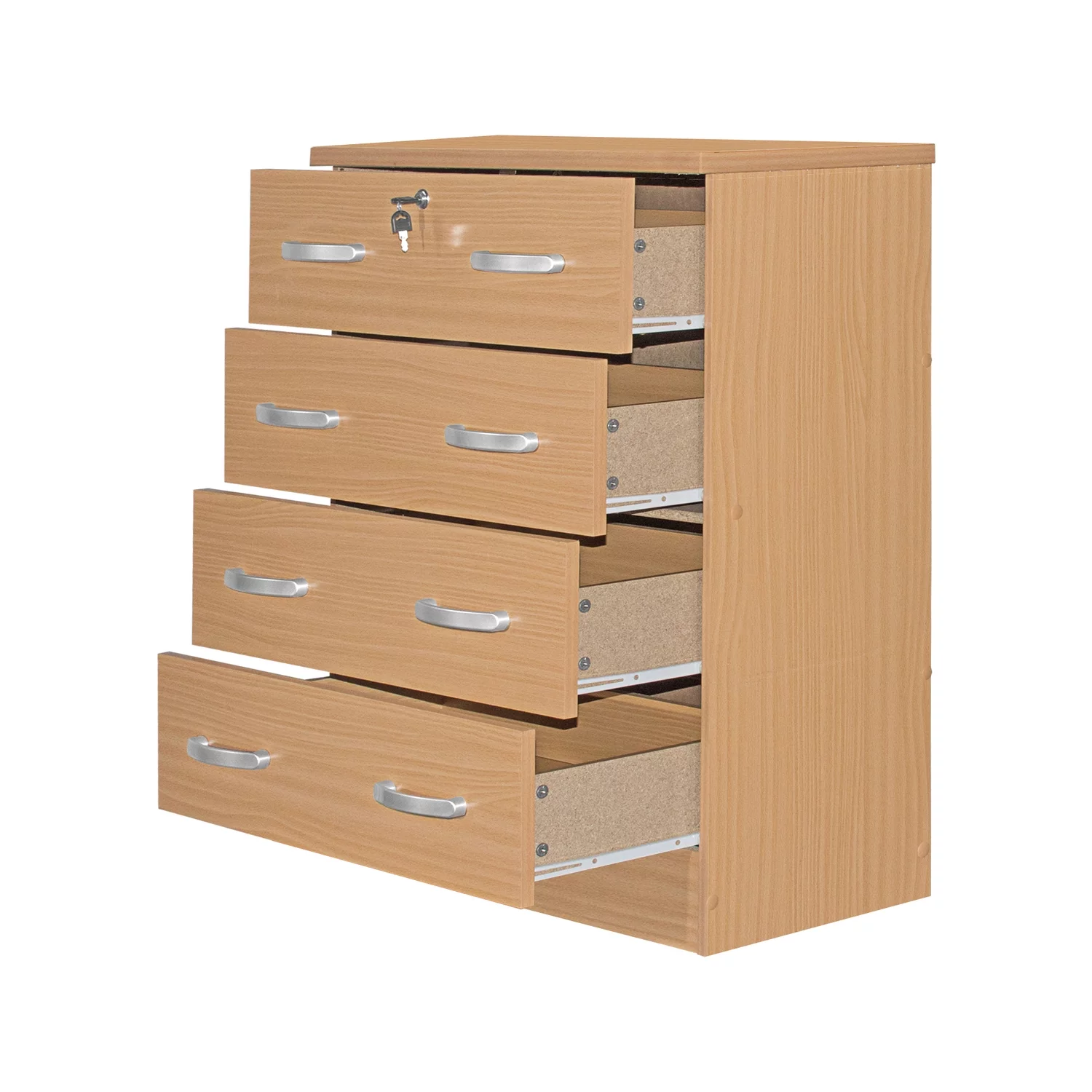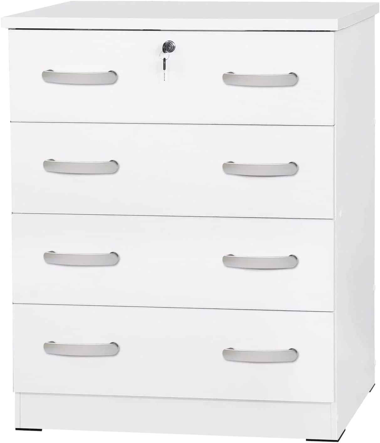 Better Home Products 4 Drawer Chest Dresser Wooden Storage Unit with Lock