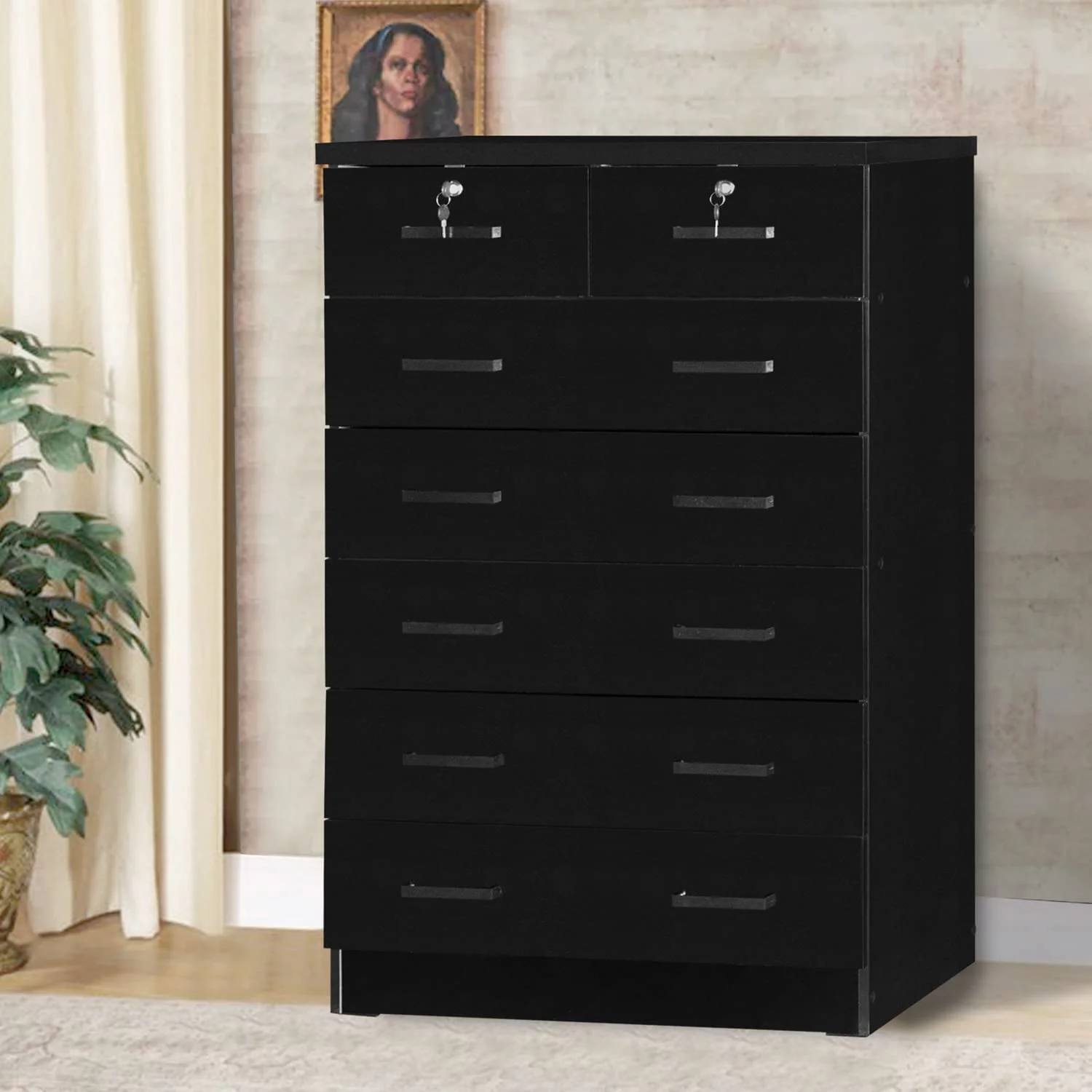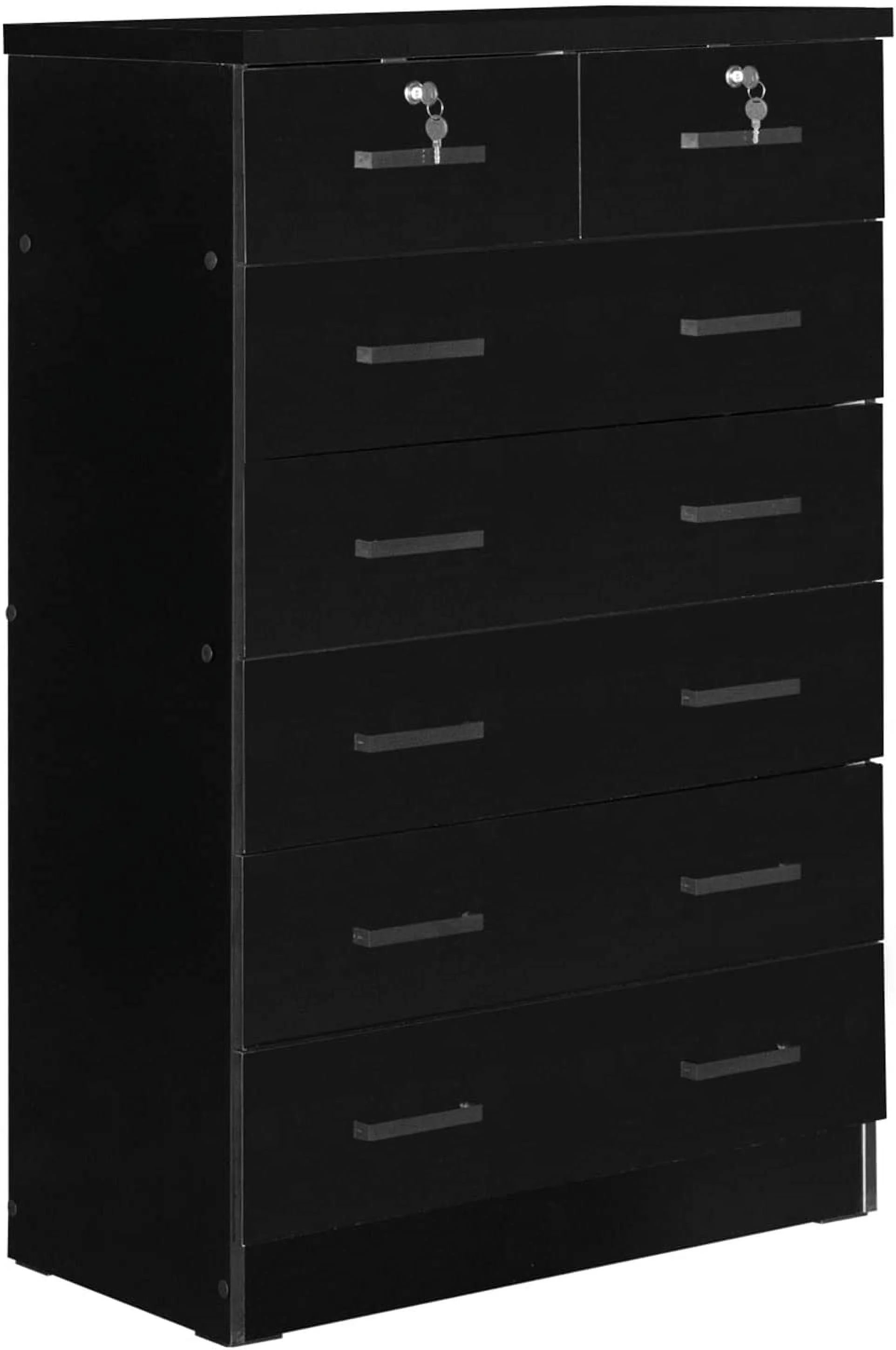 Popular Home Products Cindy 7 Drawer Chest Wooden Dresser with Lock in Gray