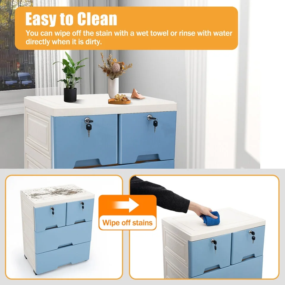 Drawers Dresser Storage Cabinet with Lock Dresser Organizer 4 Wheels Plastic