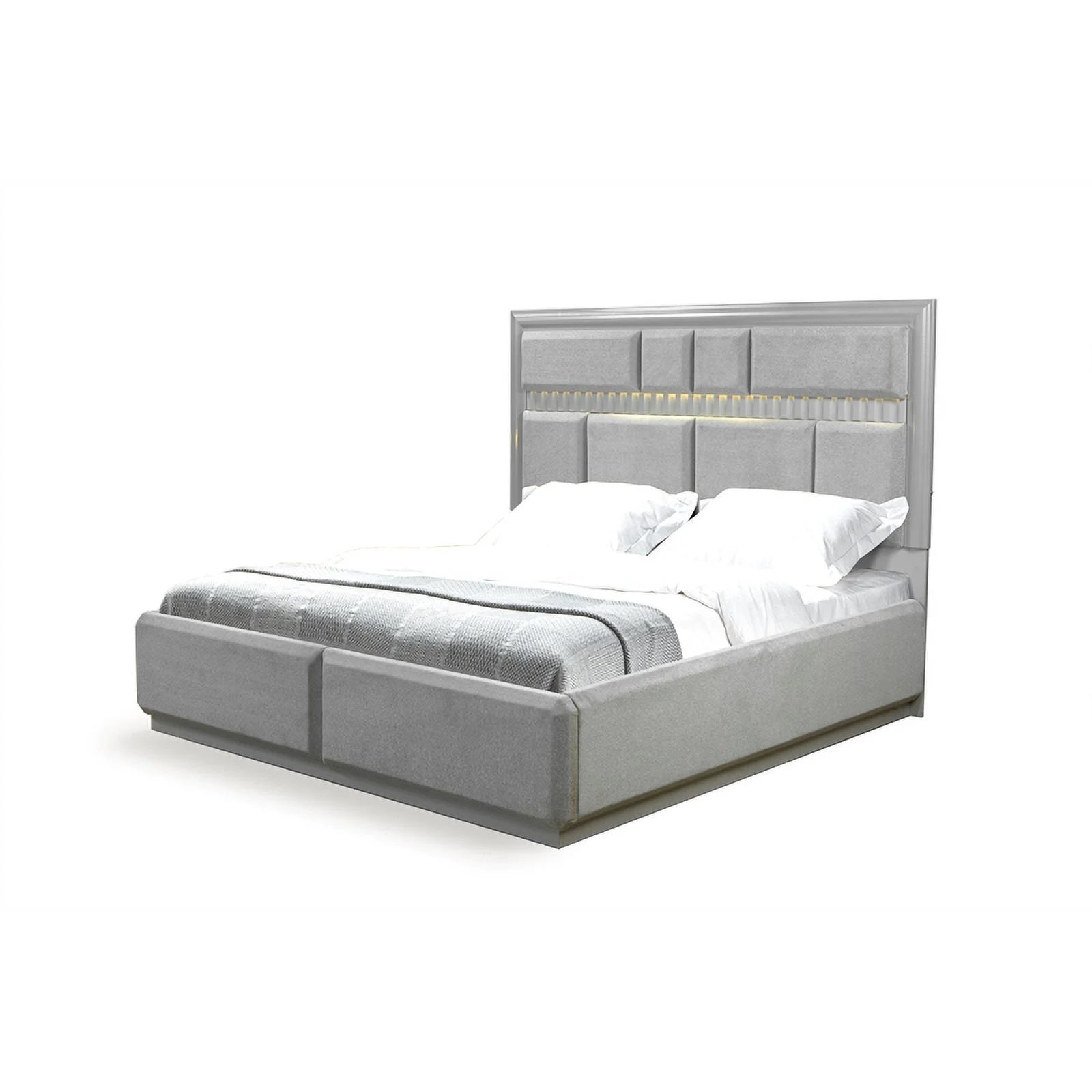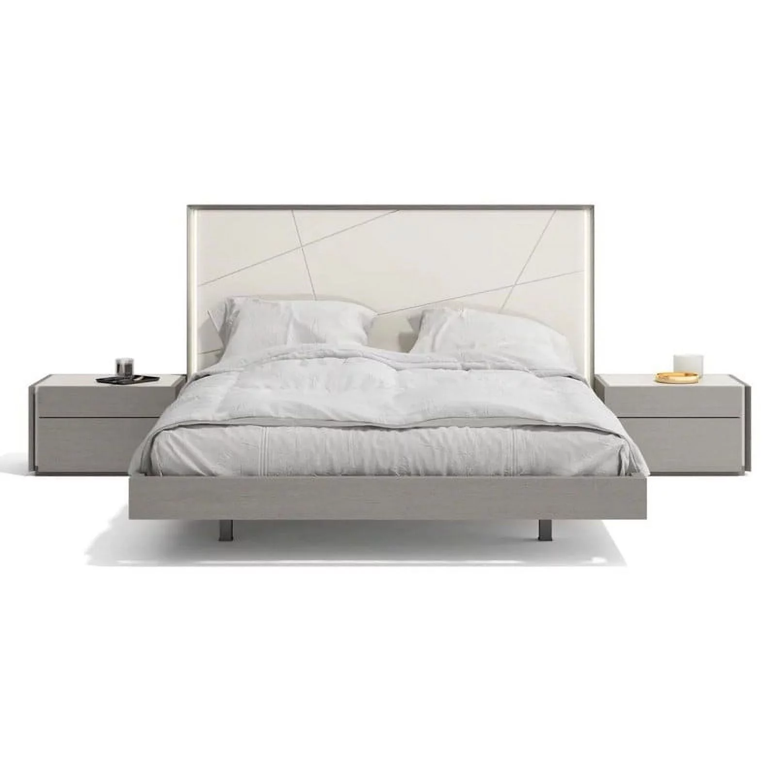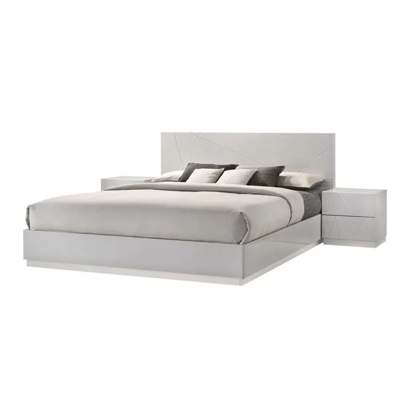 Milan Valencia Modern Gloss White & Grey 5-Piece Queen-Size Bedroom Set