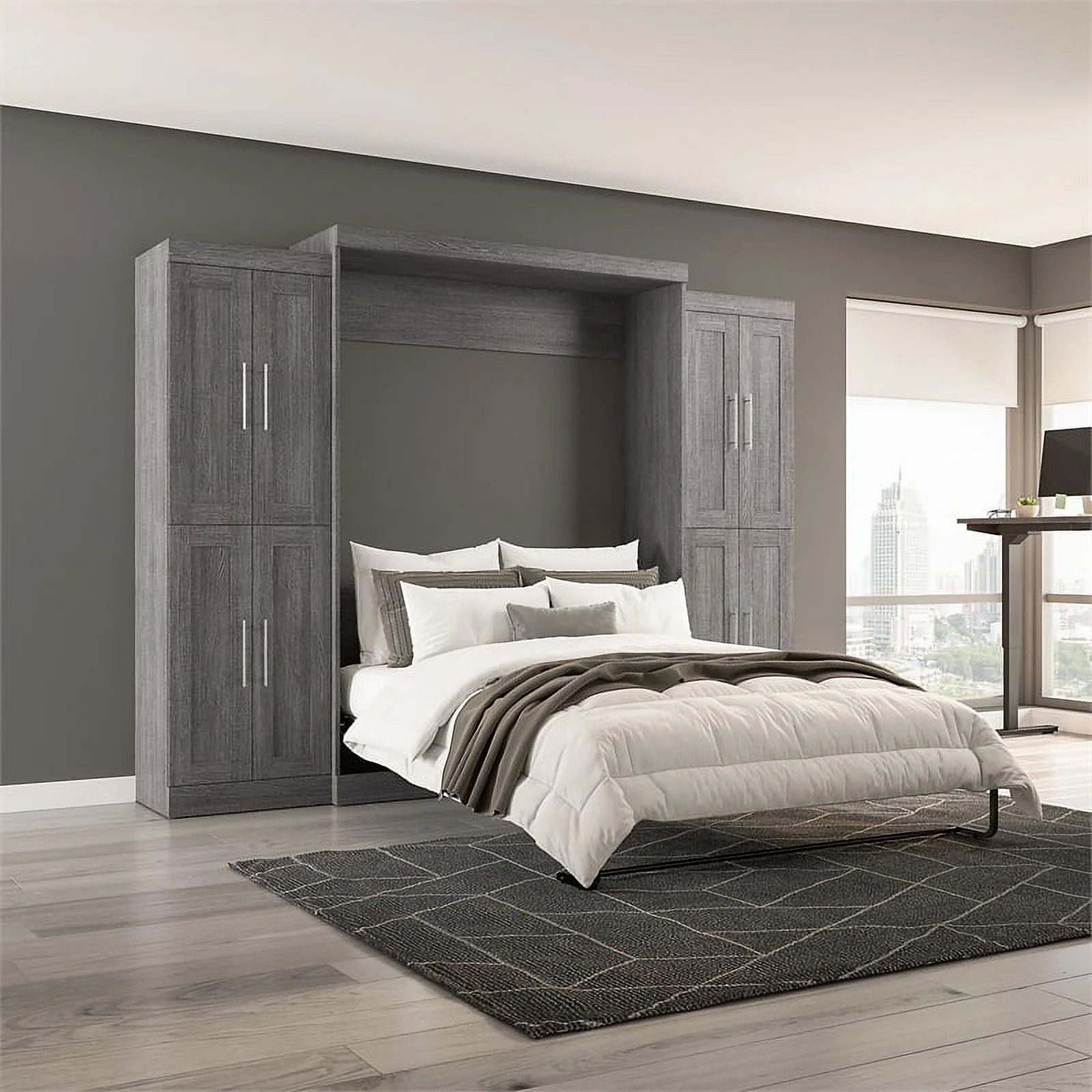 Bestar Pur Engineered Wood Queen Murphy Bed with Storage Cabinets in Gray