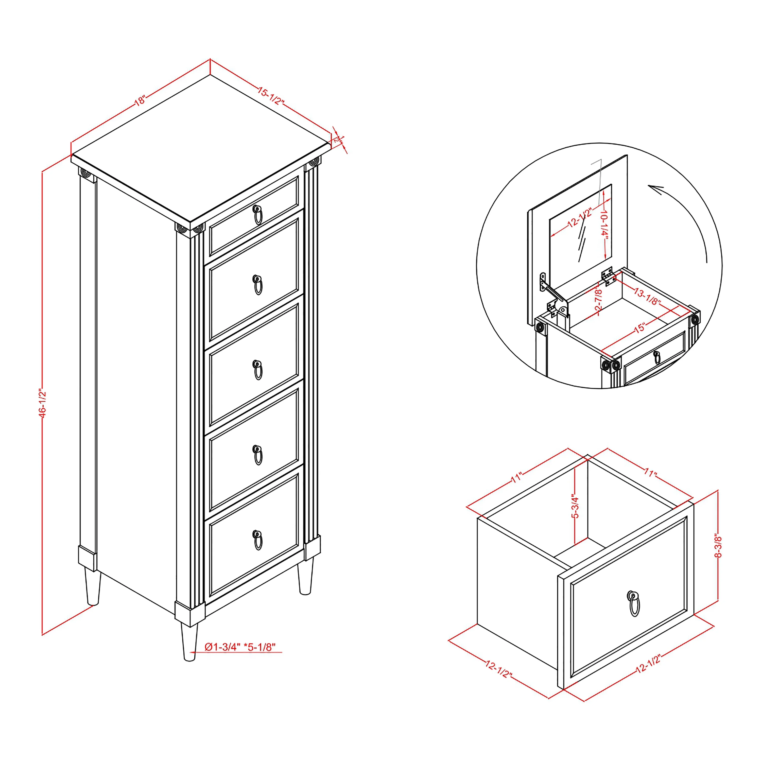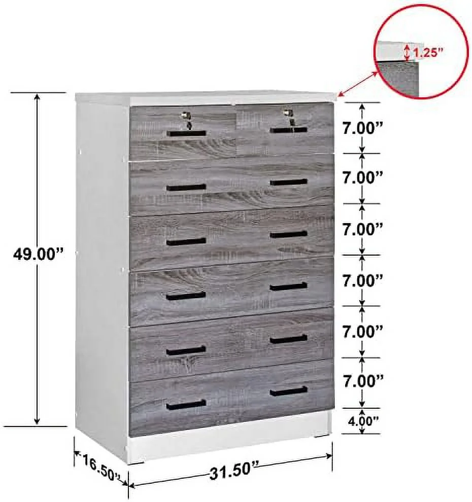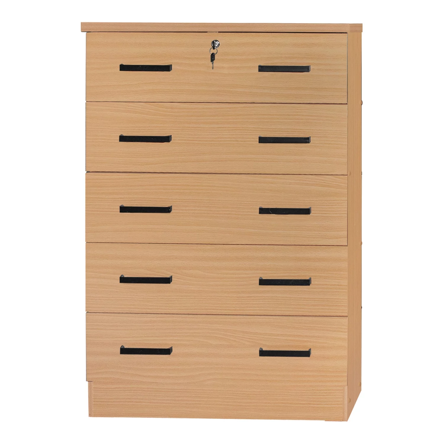 Better Home Products 5 Drawer Chest Dresser Wooden Storage Unit with Lock