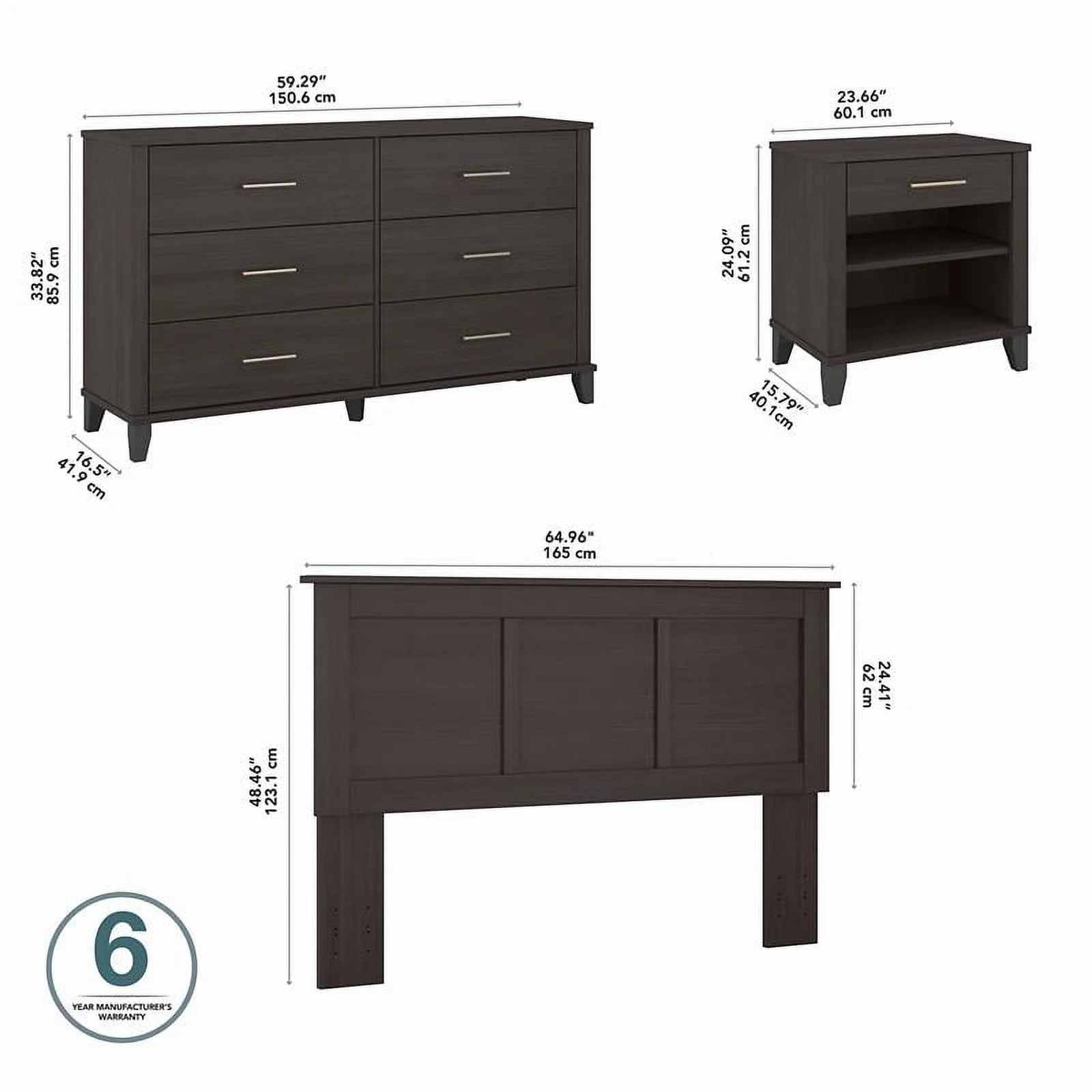 Pemberly Row 3 Piece Full/Queen Size Bedroom Set in Storm Gray - Engineered Wood