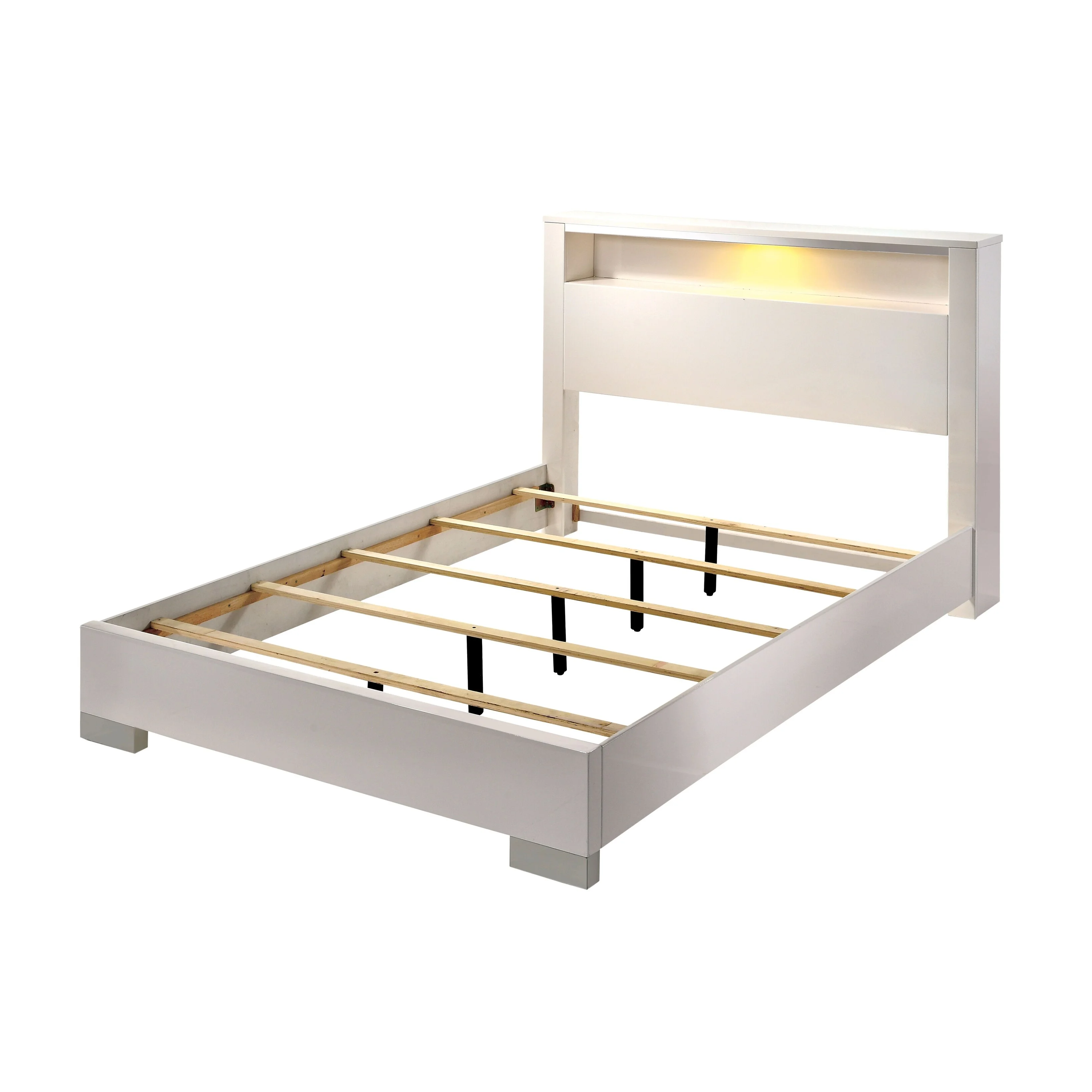 Carbon Loft Champs White Wood Panel Bed with LED Storage Headboard White Queen