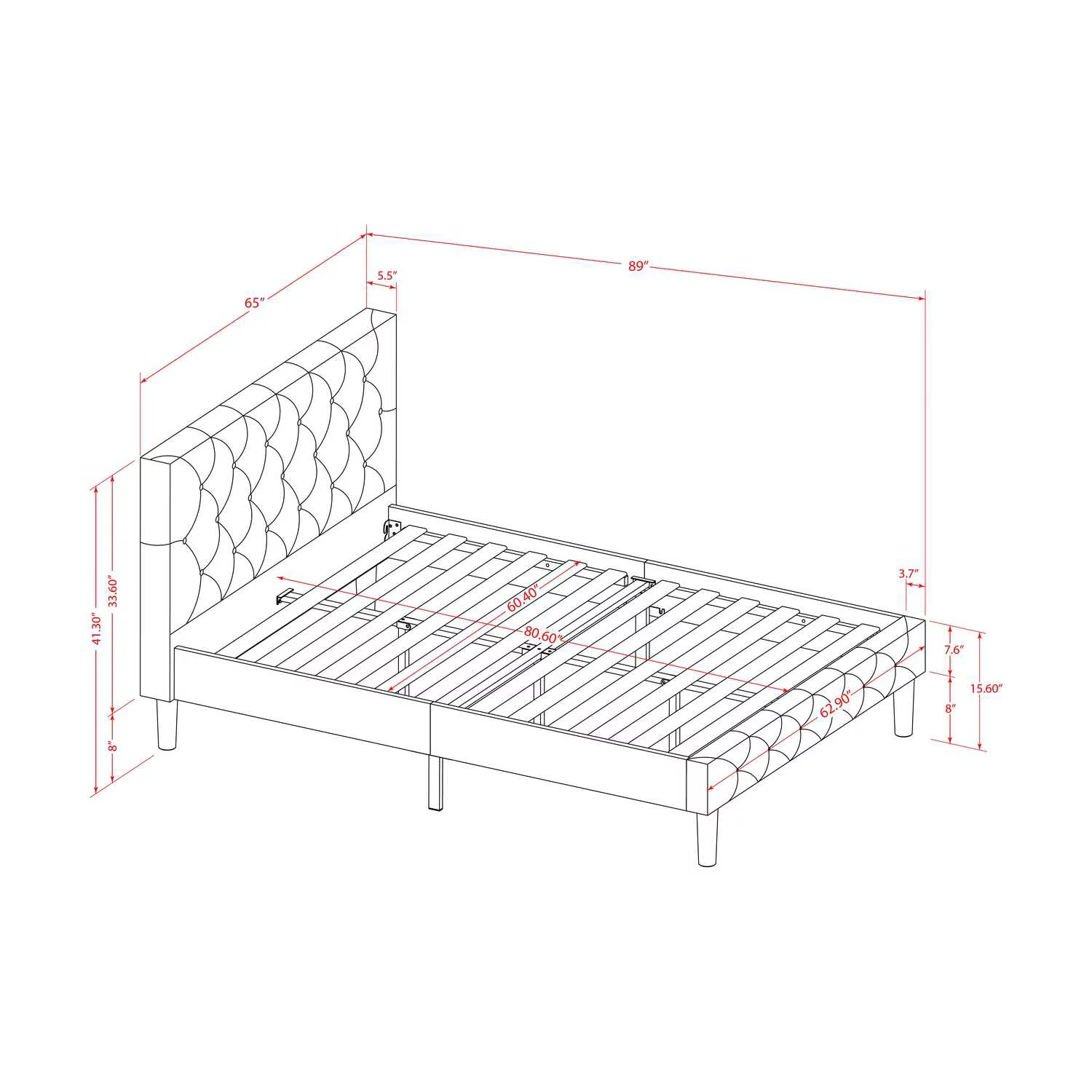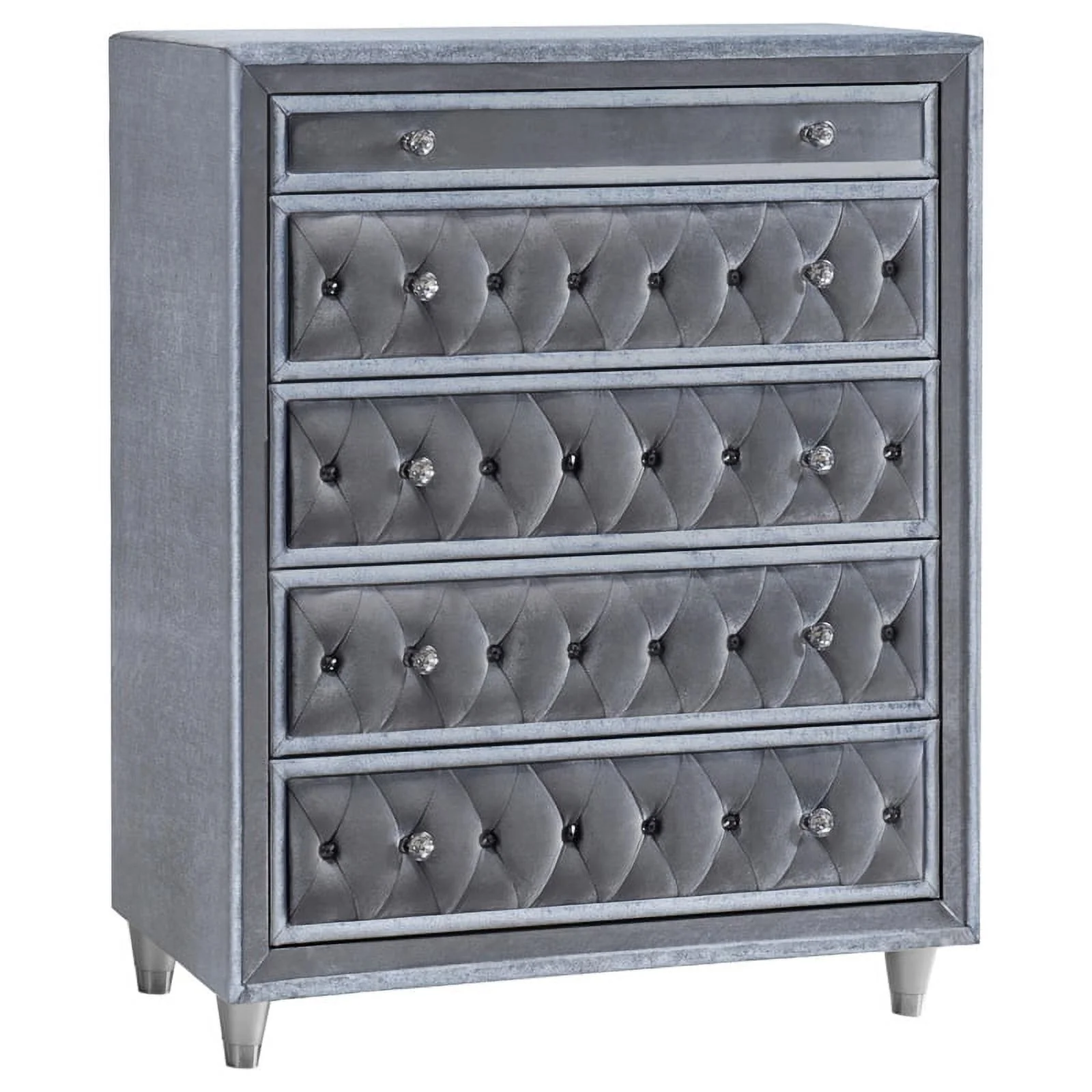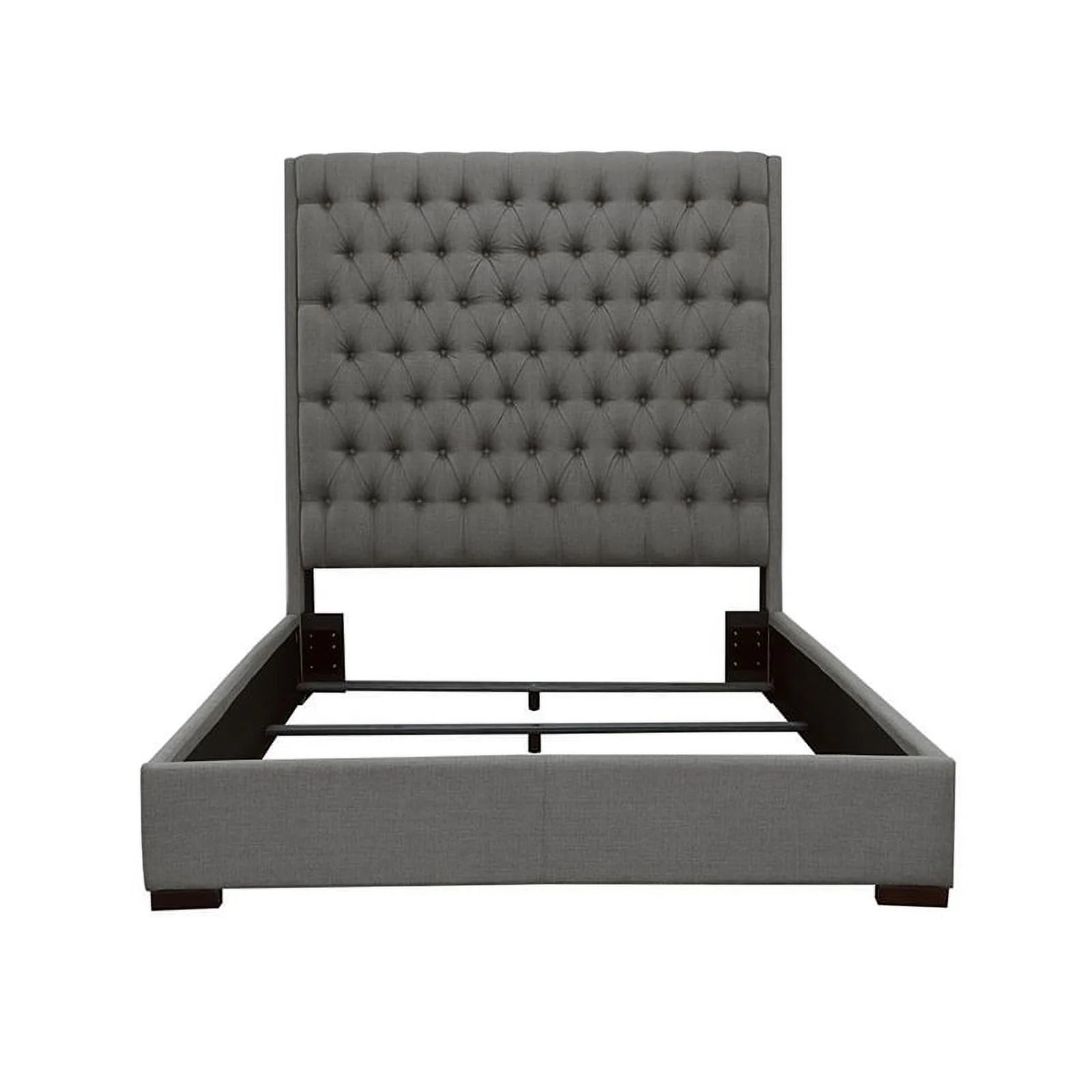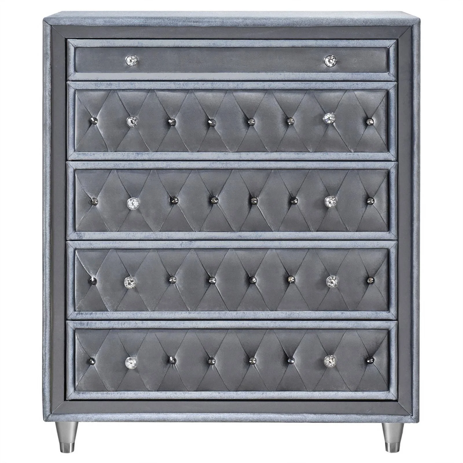 Maklaine 5-Piece Velvet Upholstered Tufted Queen Bedroom Set in Gray