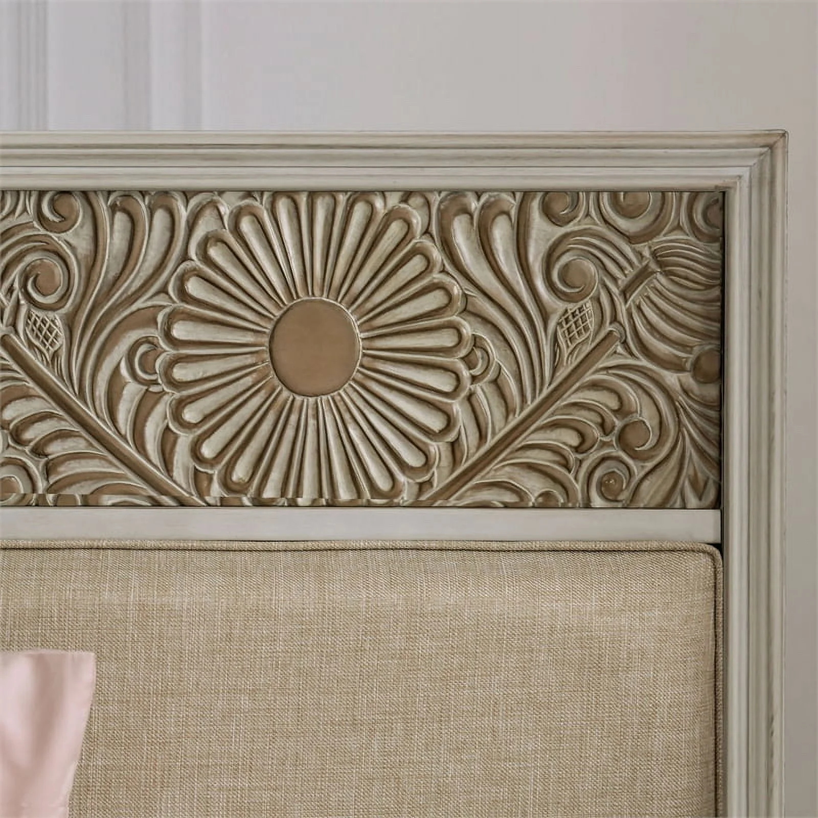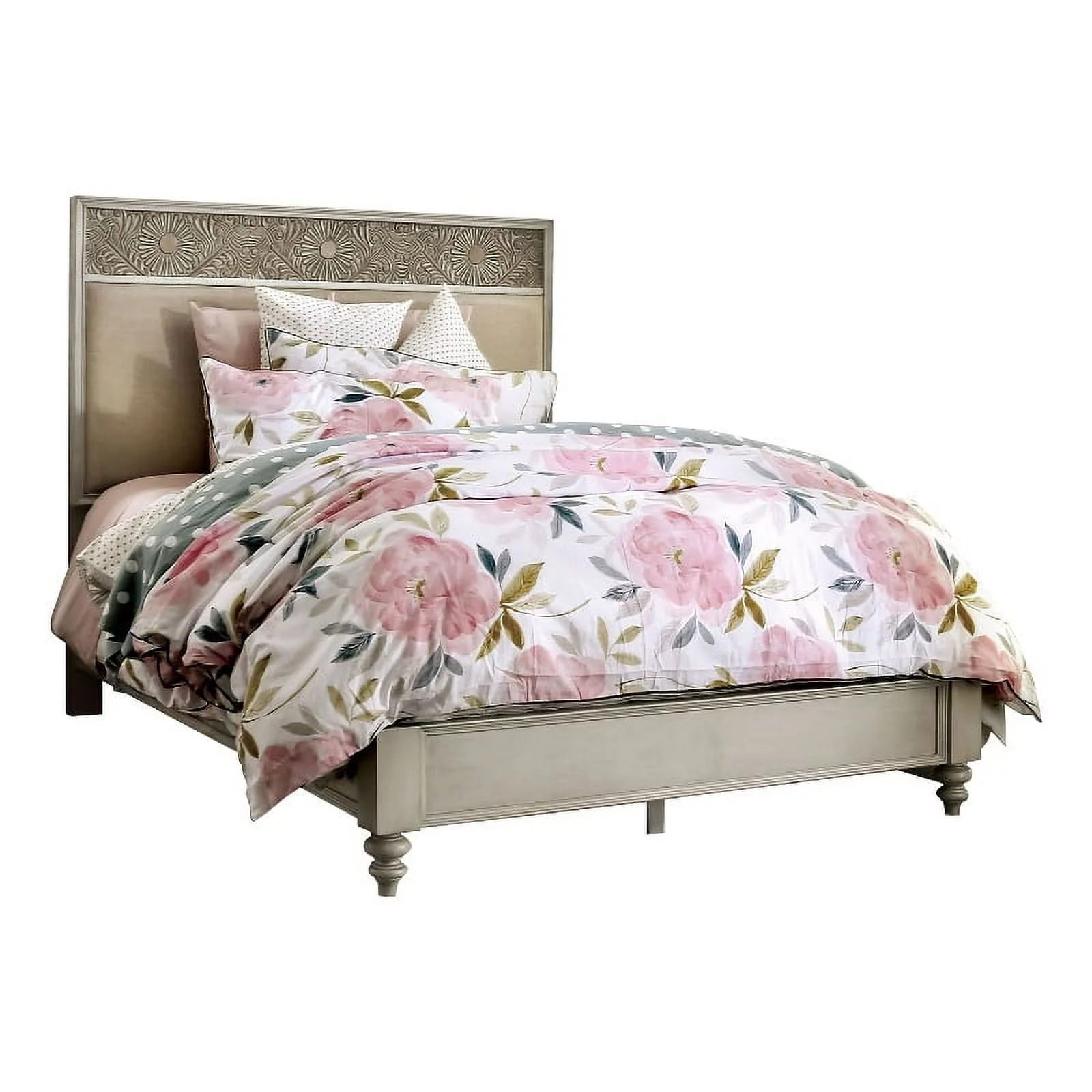 Furniture of America Winne Wood Padded Headboard Queen Bed in Antique White