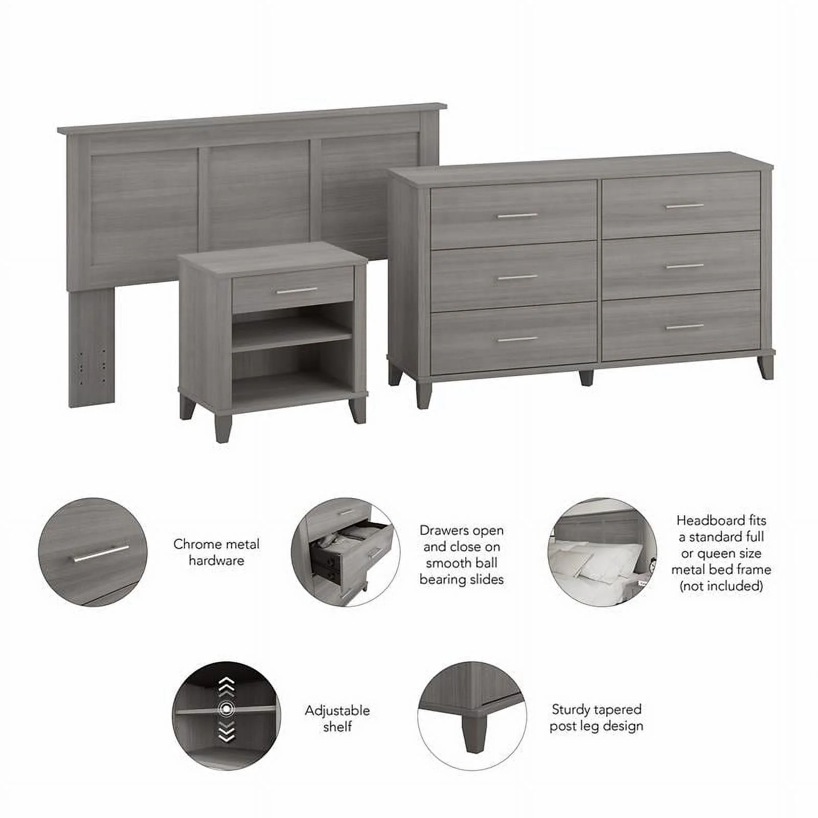Pemberly Row Engineered Wood 3 Piece Full/Queen Size Bedroom Set - Platinum Gray