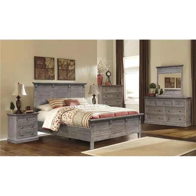 Picket House Furnishings Poppy Queen 5PC Panel Bedroom Set in Gray