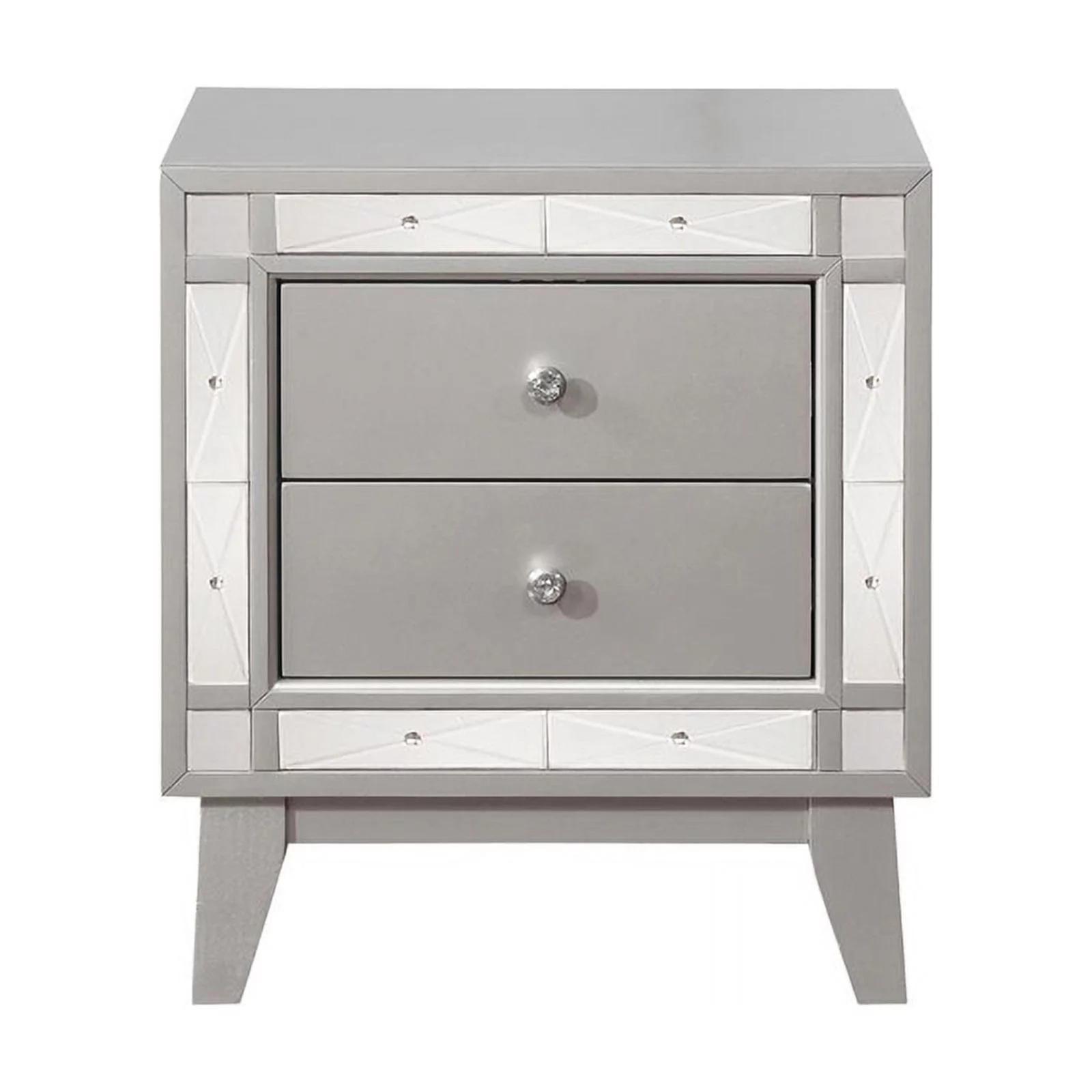 3pc Modern Glam Queen Size Panel Bed and Nightstand Set Button-Tufted Headboard Dark Gray Finish Bedroom Furniture