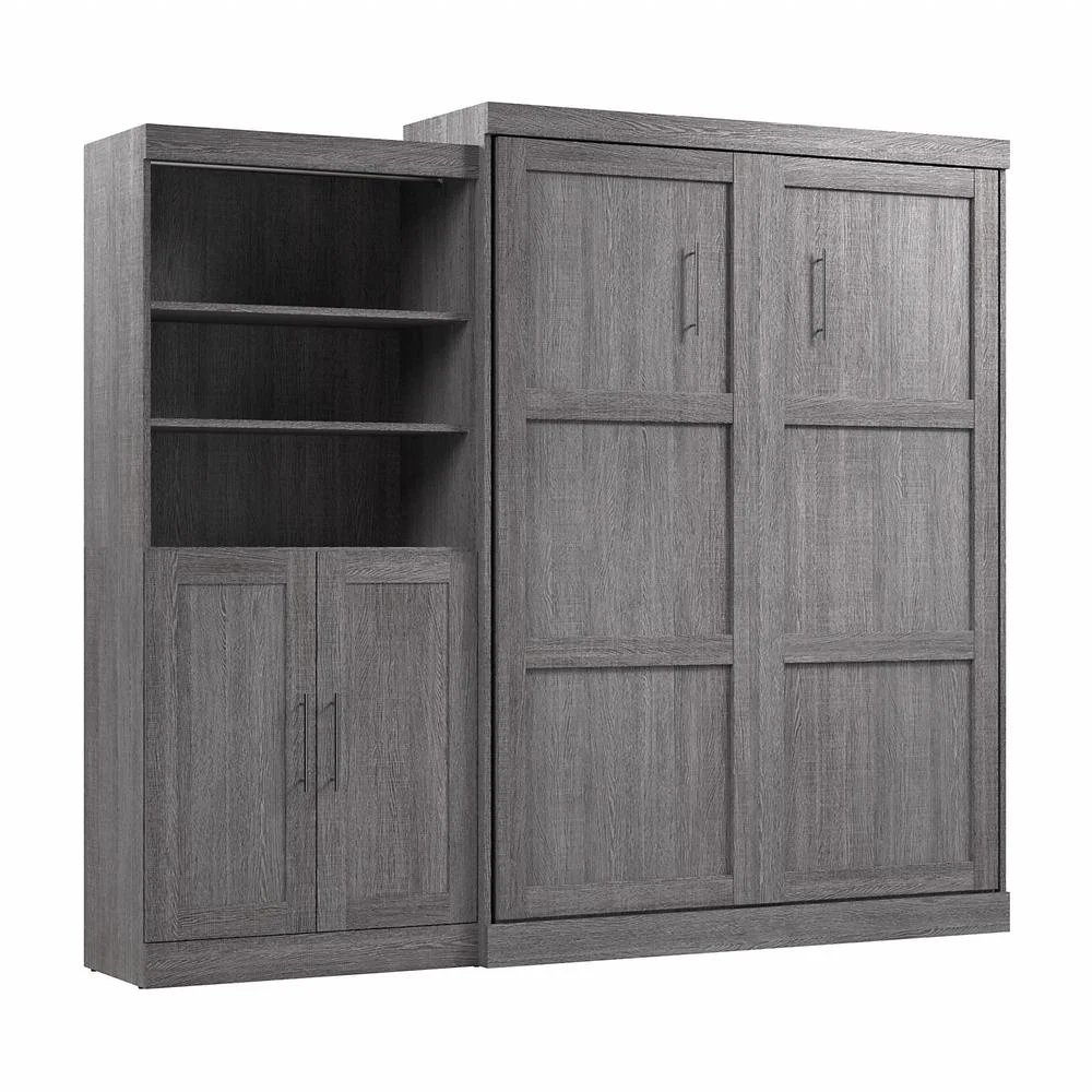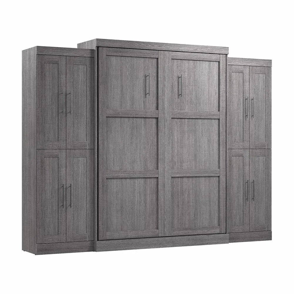 Bestar Pur 101" Engineered Wood Queen Murphy Bed & Closet Organizer in Bark Gray