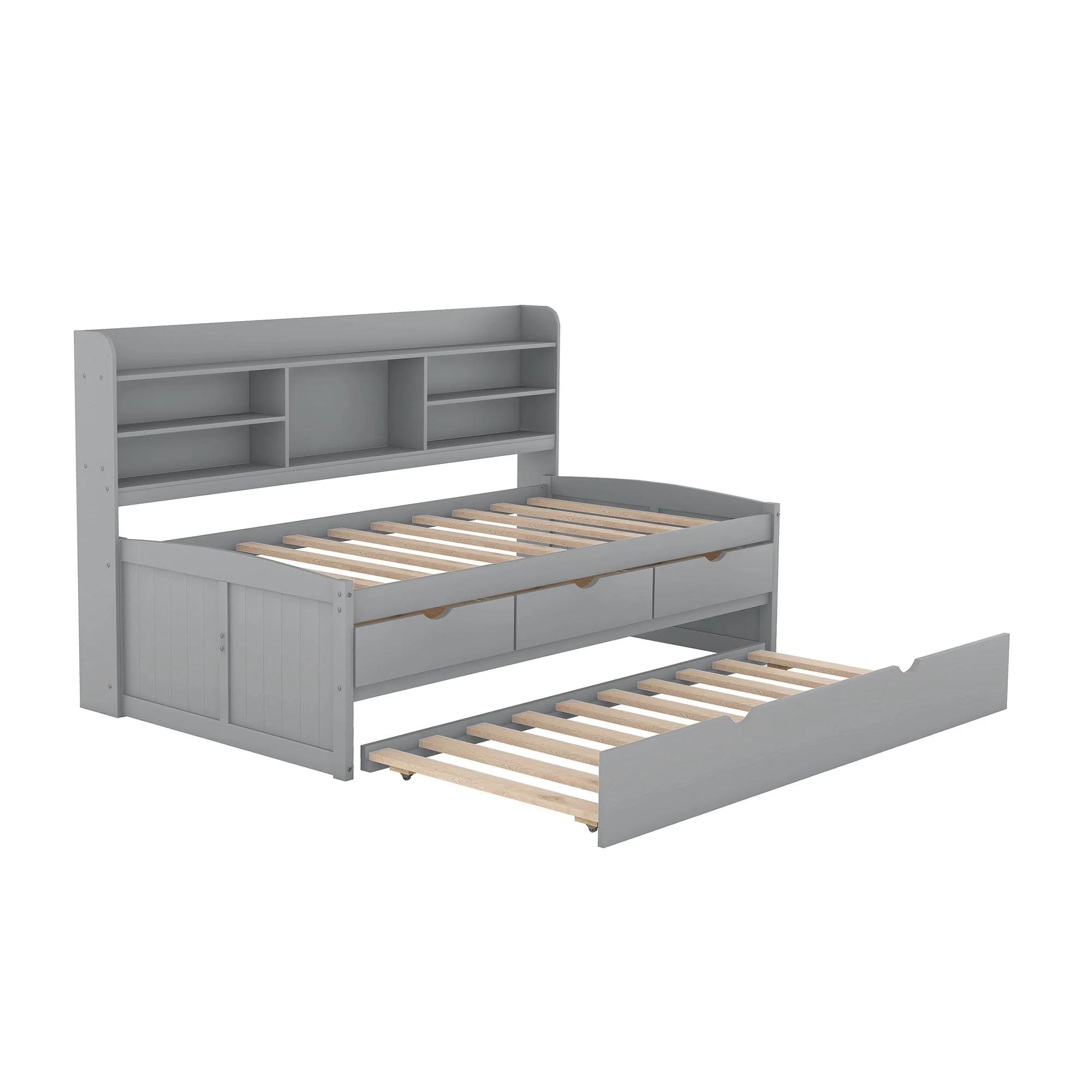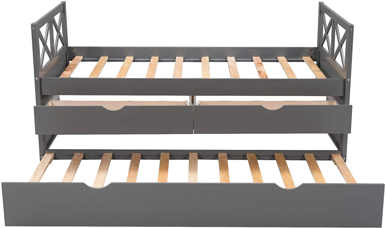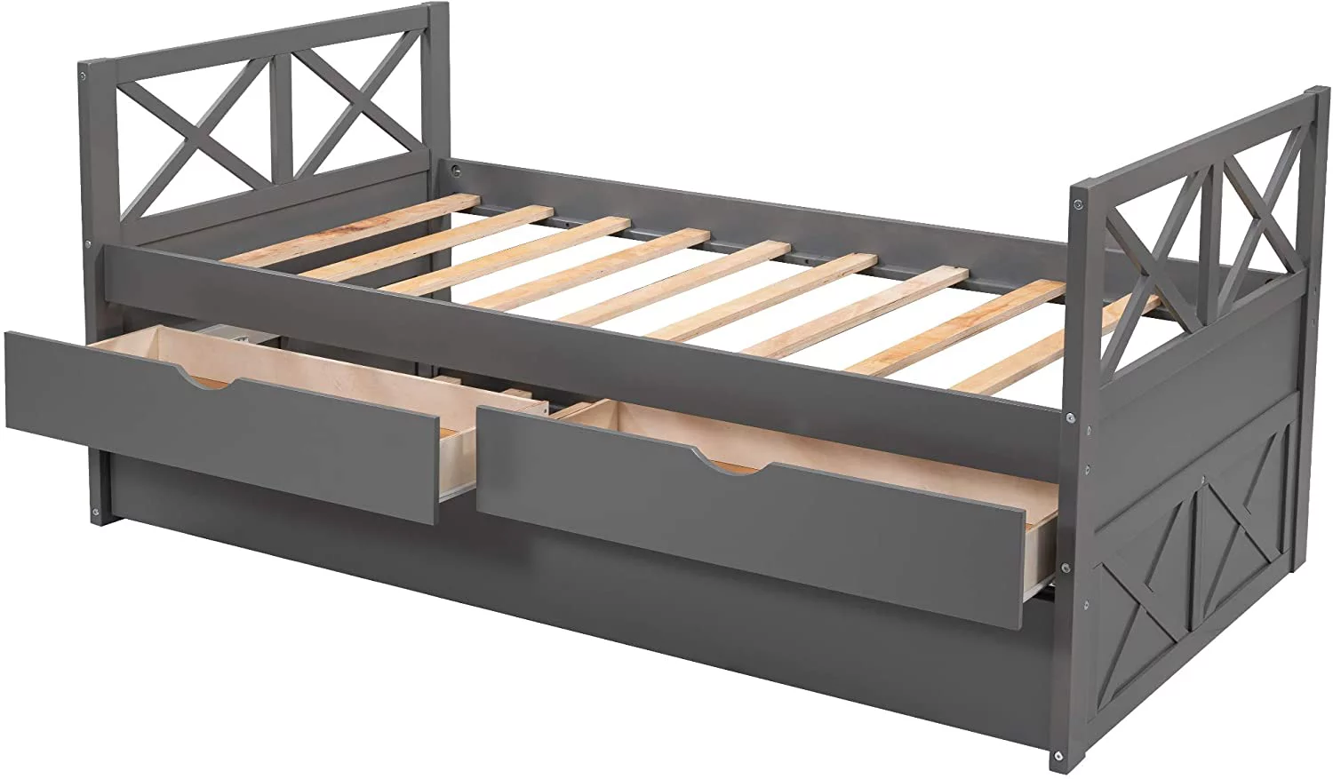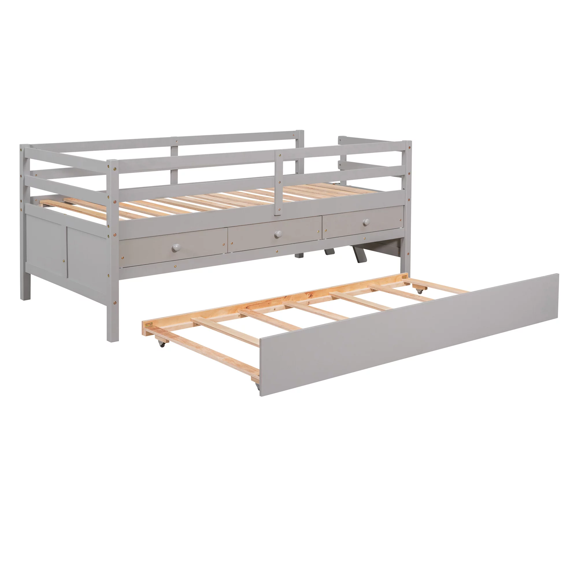 AngLink Twin Size Platform Storage Bed with Trundle, Multi-Functional Twin Daybed with 2 Storage Drawers (Grey)