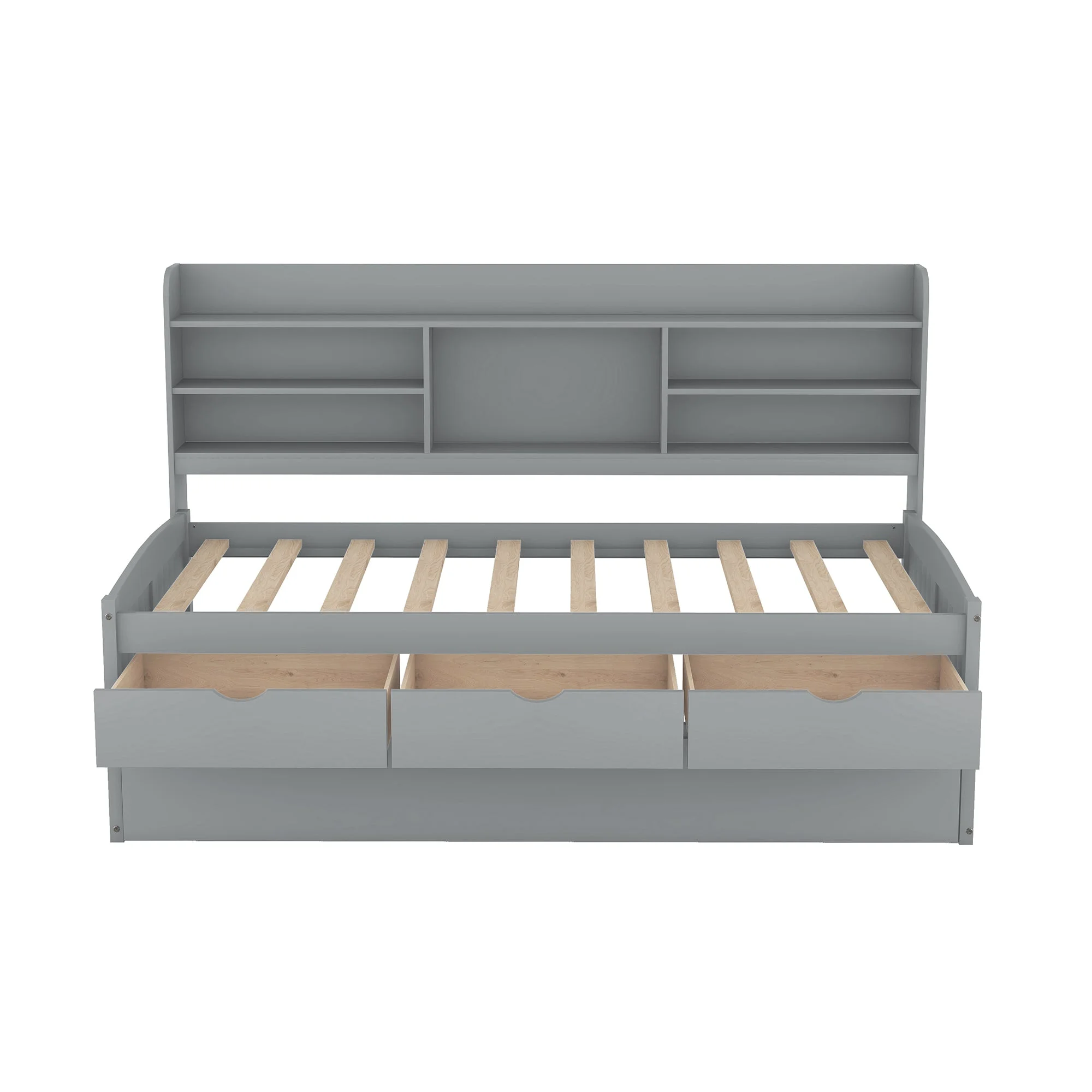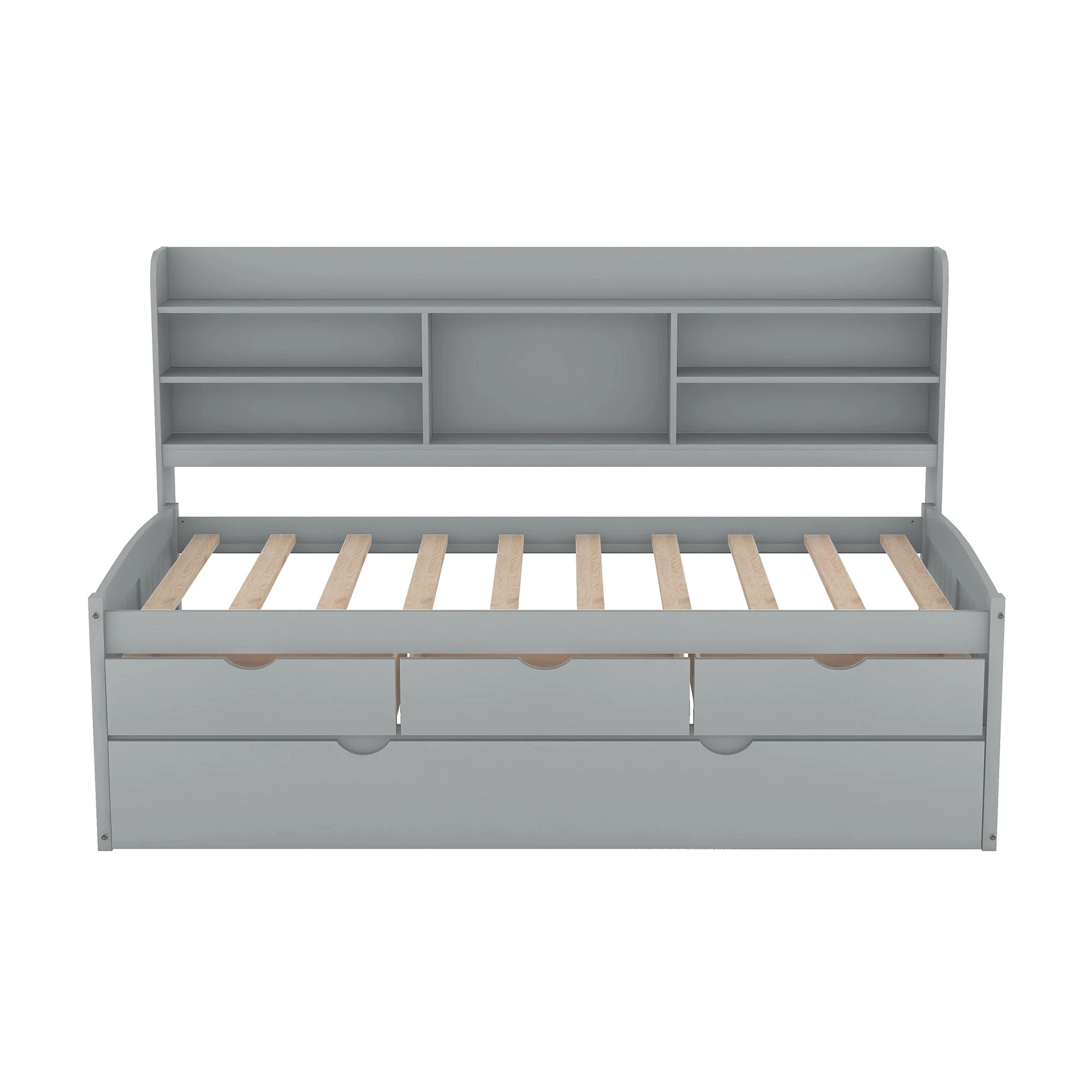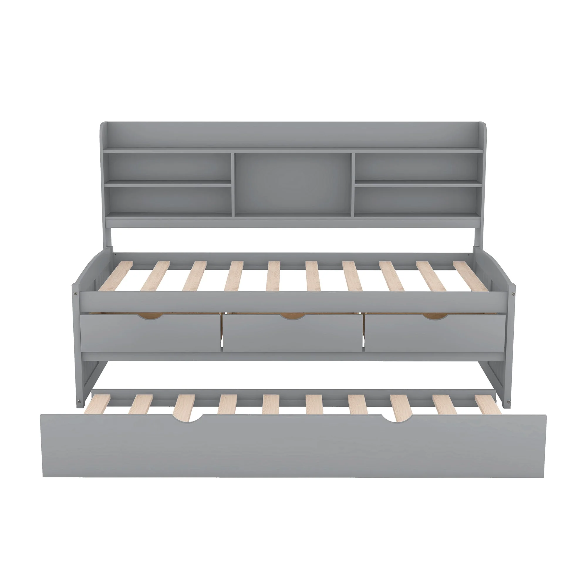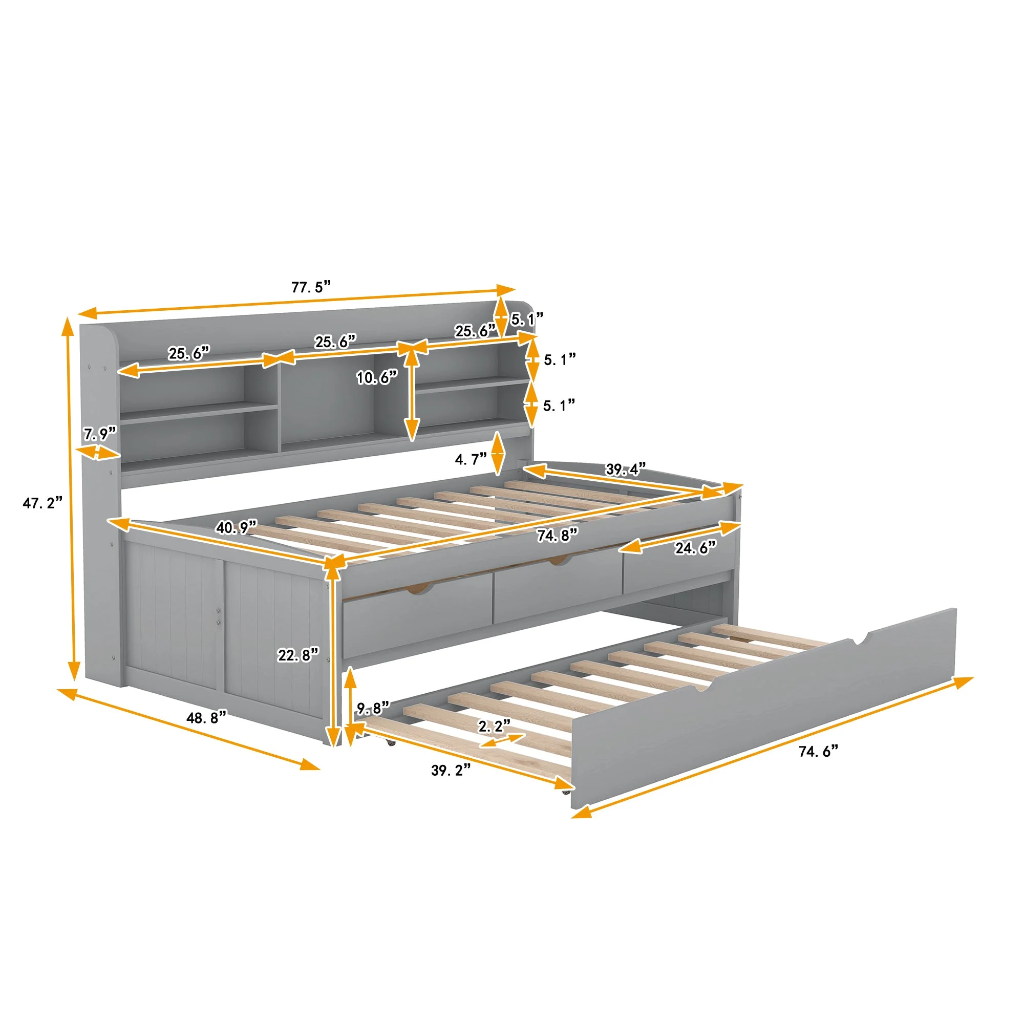 AngLink Twin Size Platform Storage Bed with Trundle, Multi-Functional Twin Daybed with 2 Storage Drawers (Grey)