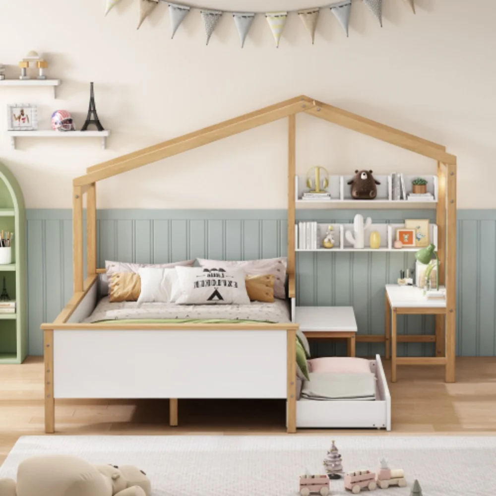 Tenozek Full Size Platform Bed with Drawers Storage for Kids Teens and Adult, White