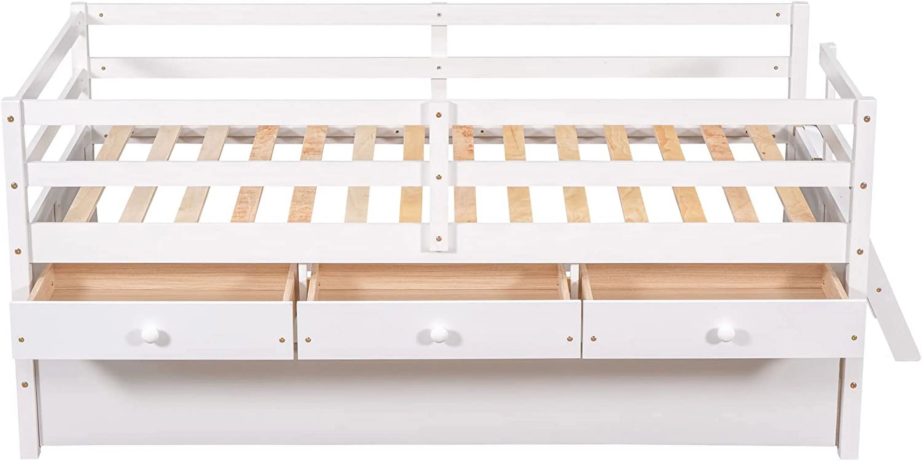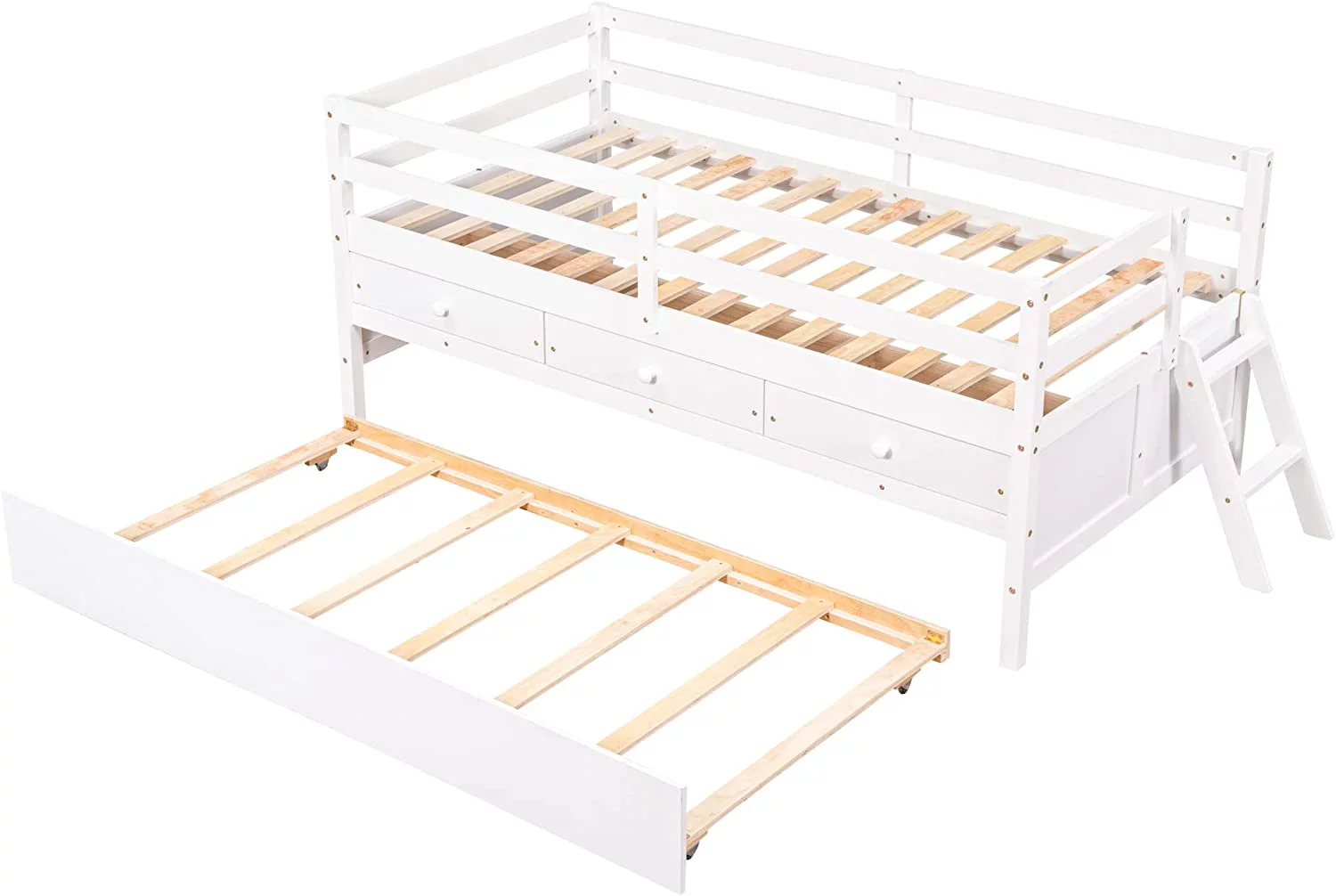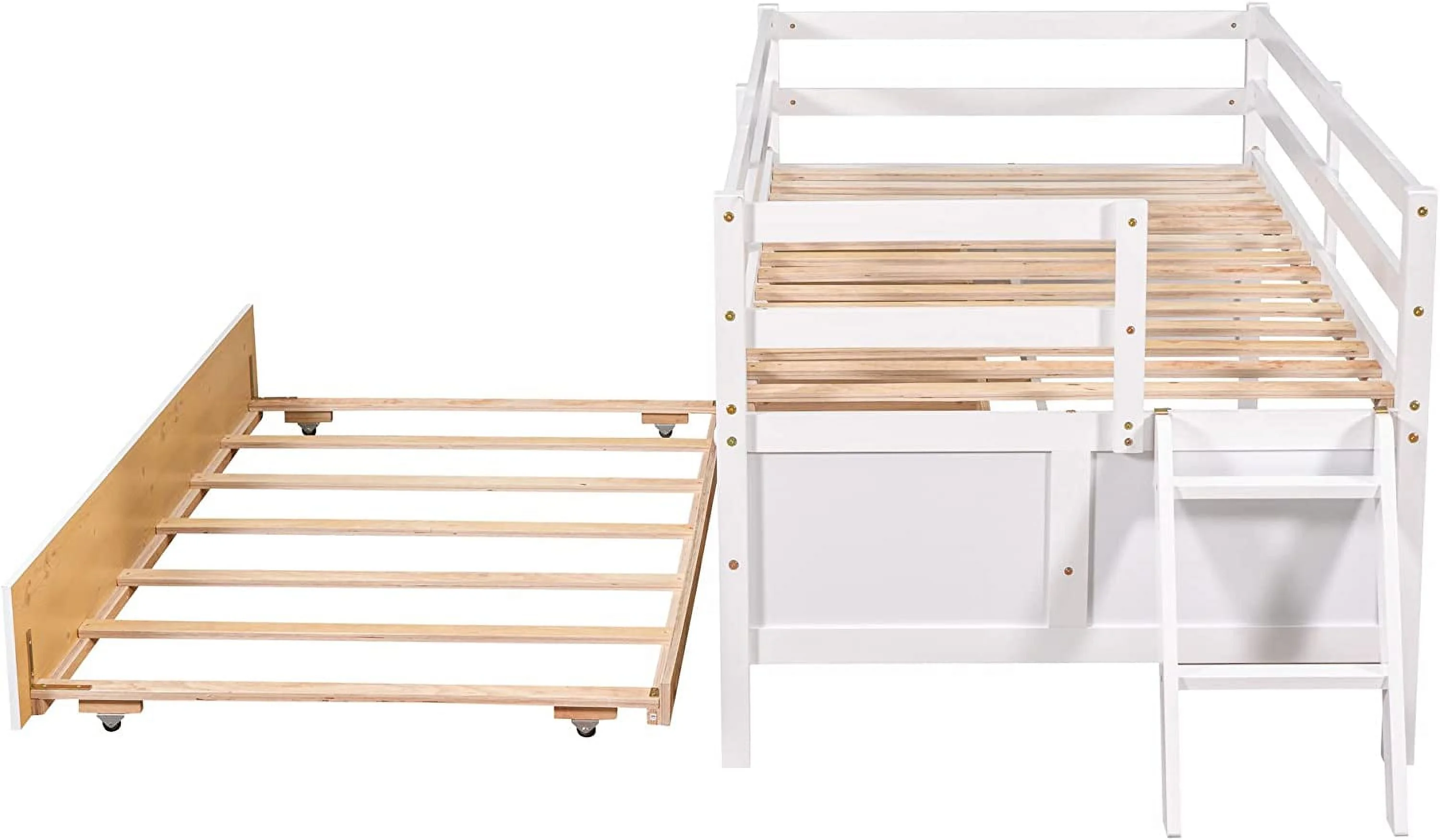 YJTONWIN Low Loft Bed Twin Size with Full Safety Fence Ladder and Trundle White