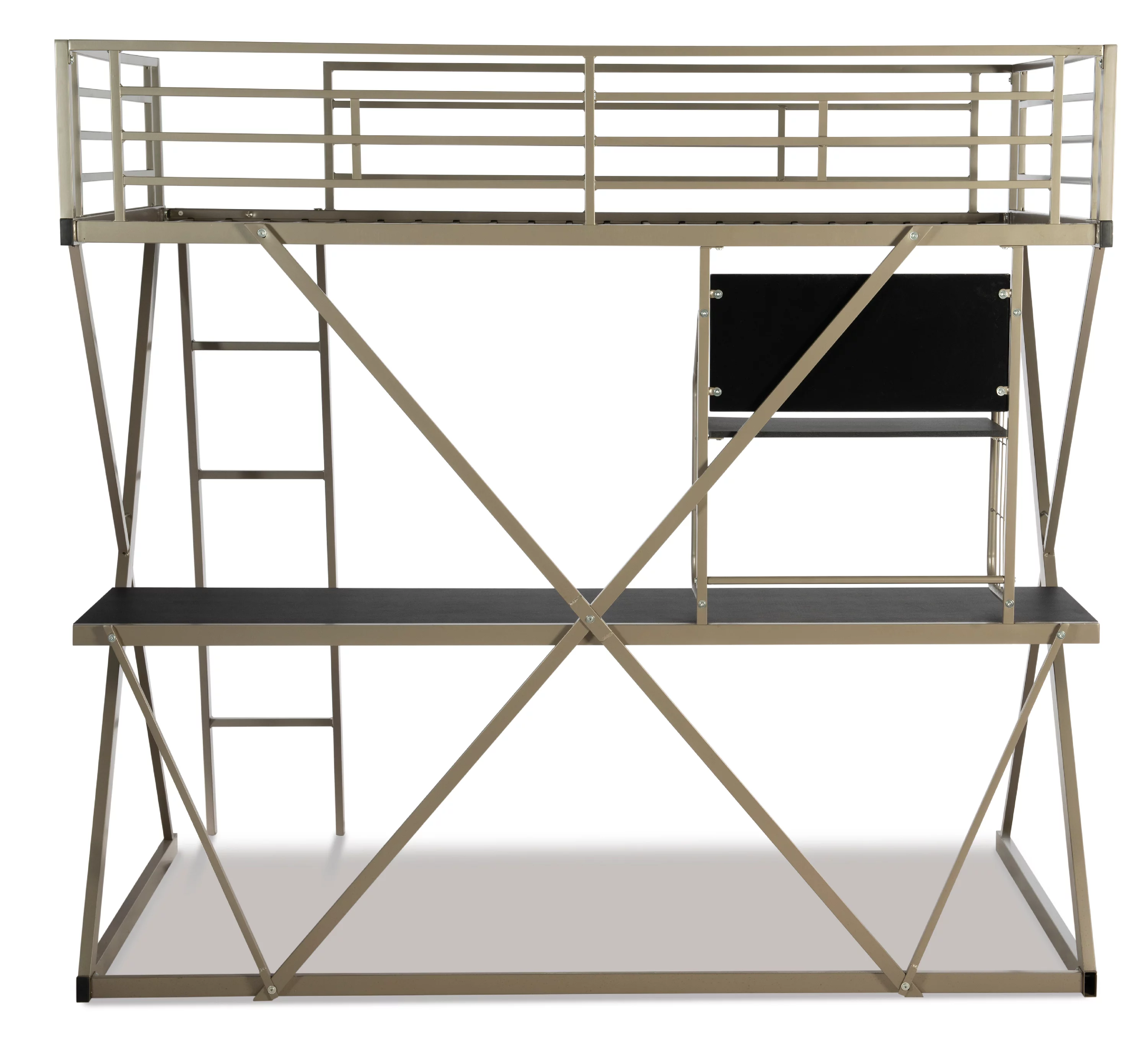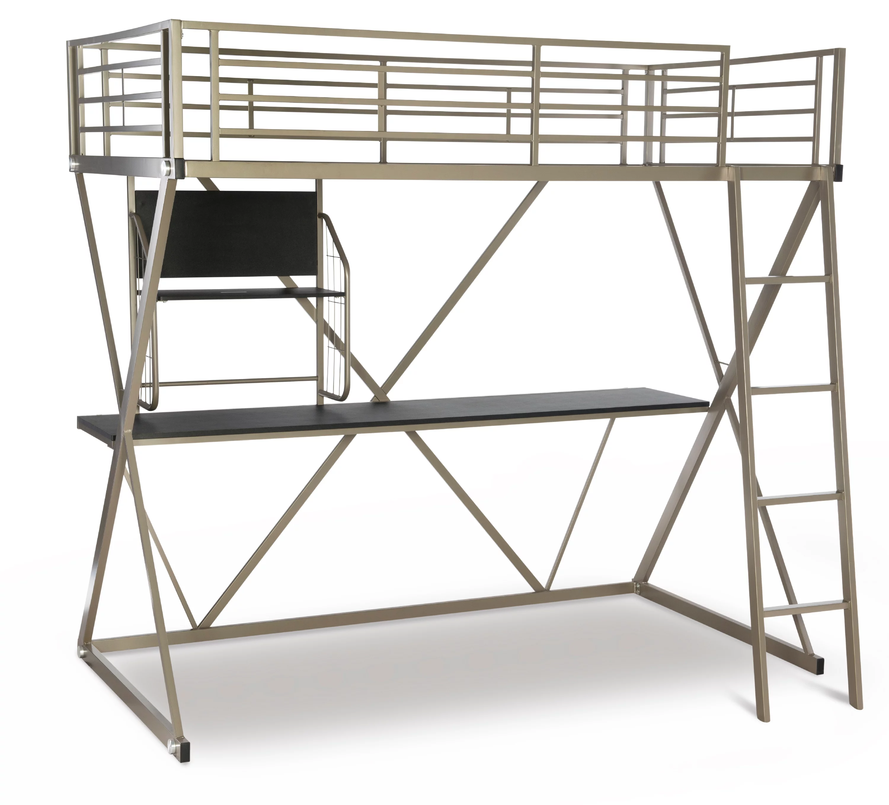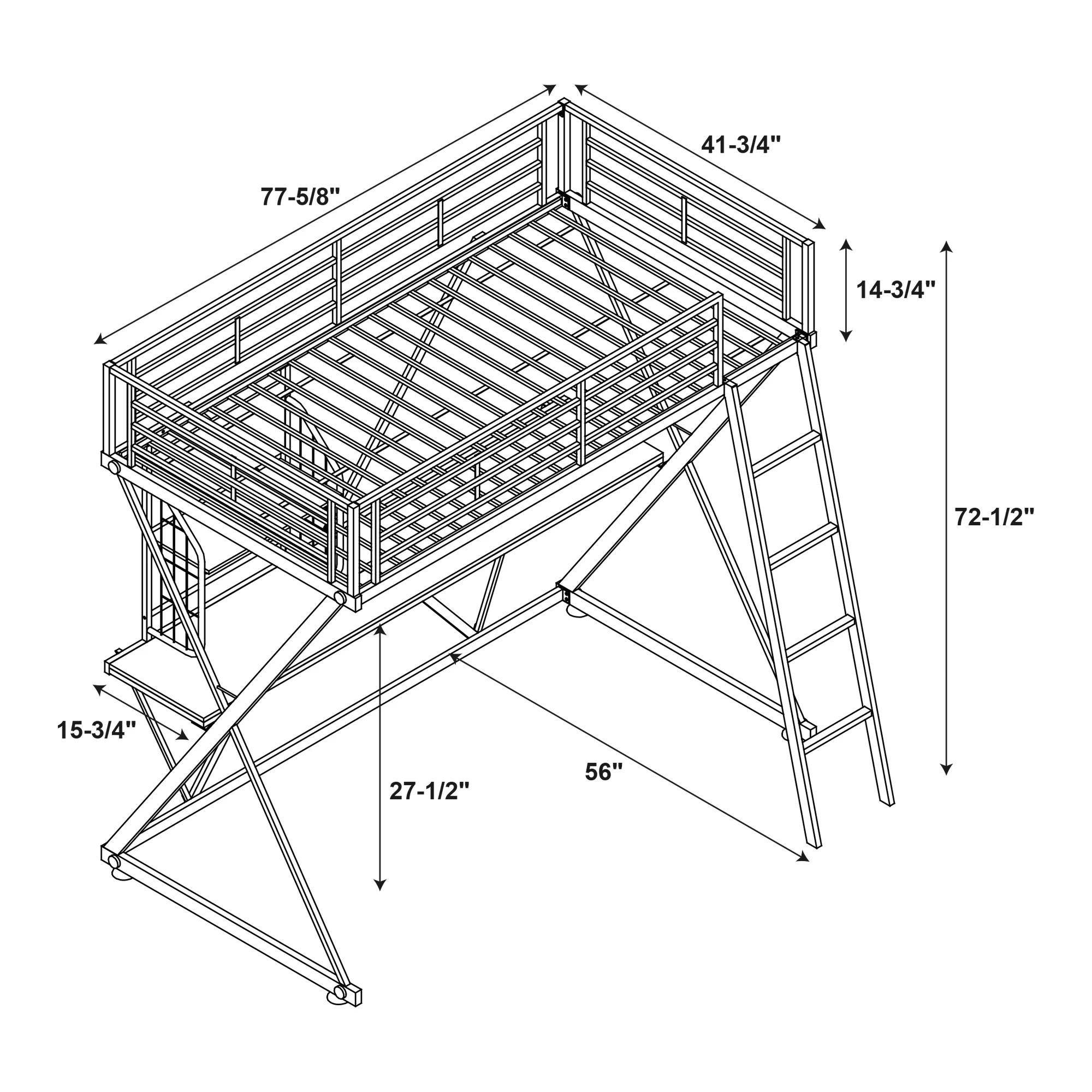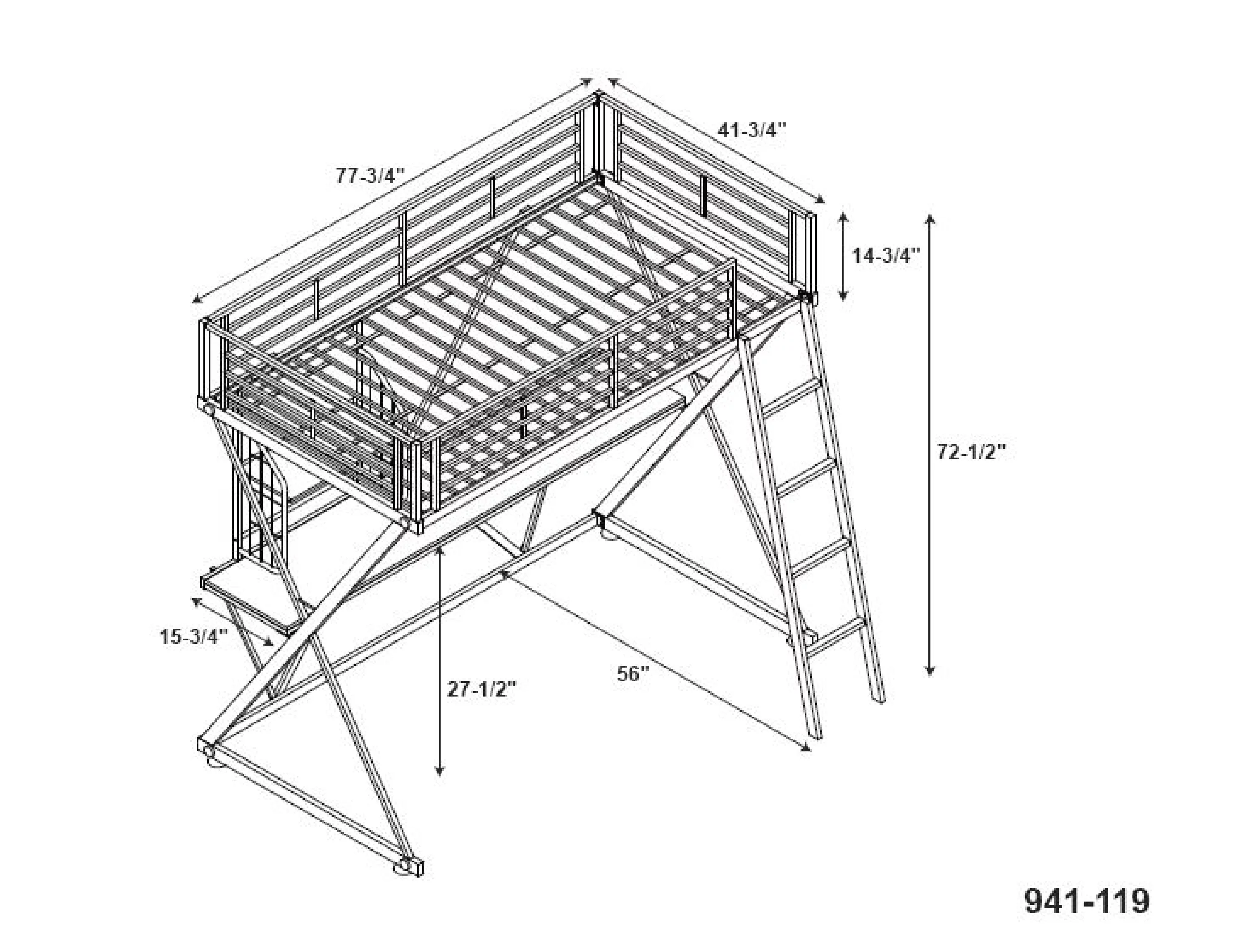 Twin Front Porch Low Loft In Rustic Driftwood Finish W/Twin Trundle Bed