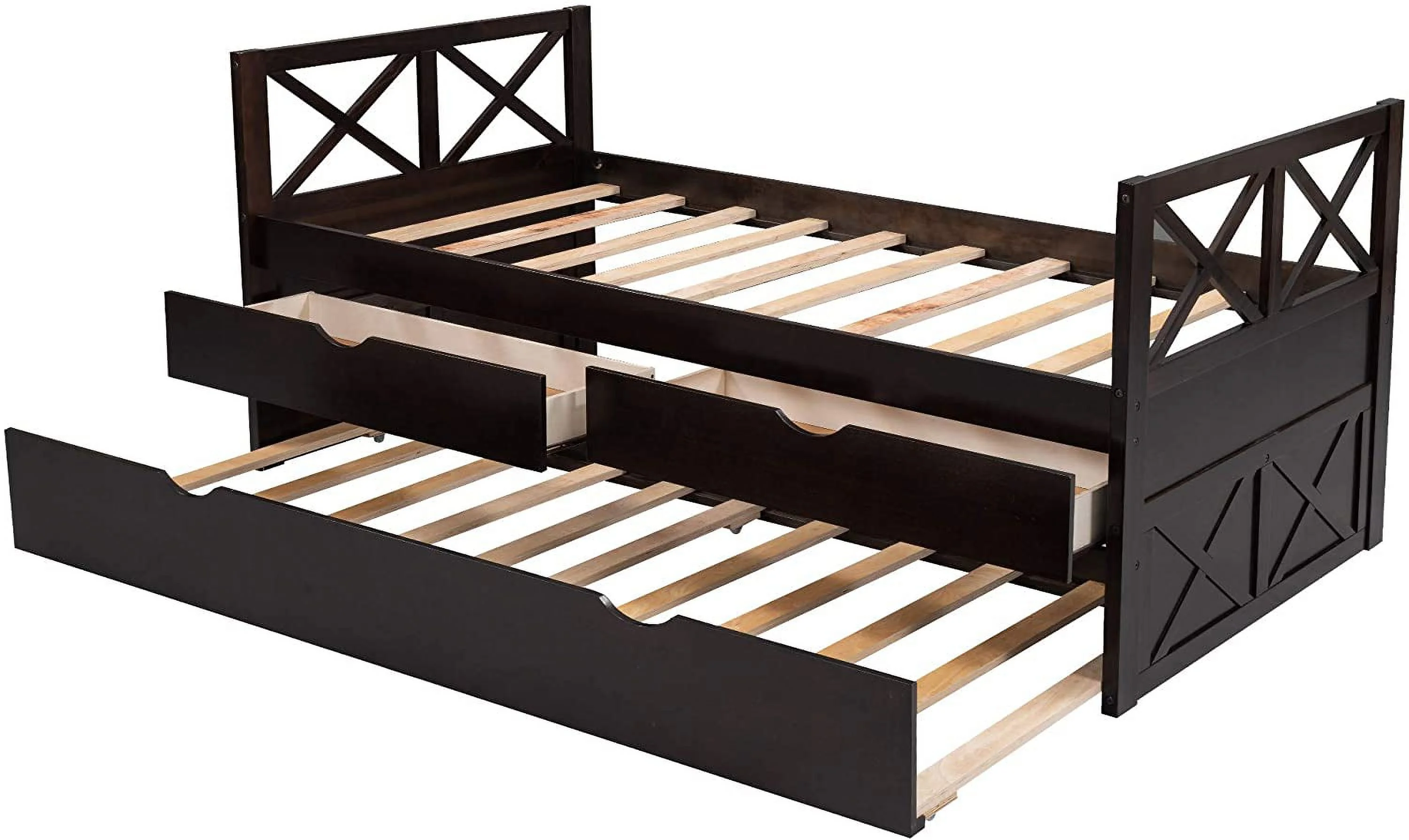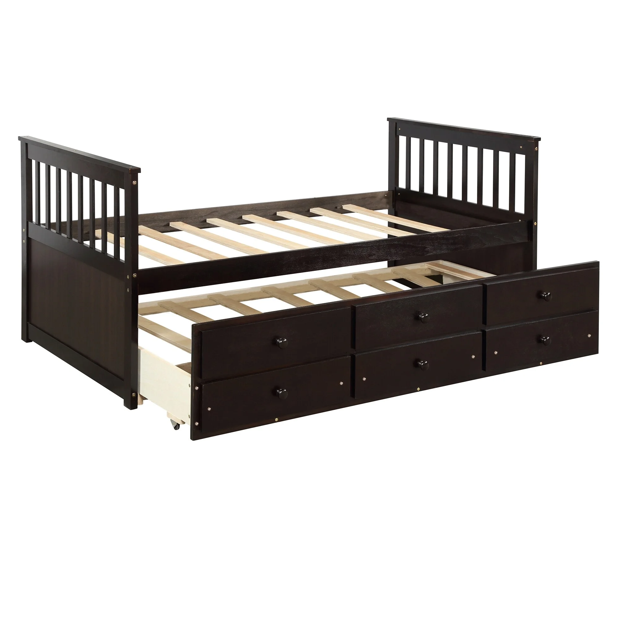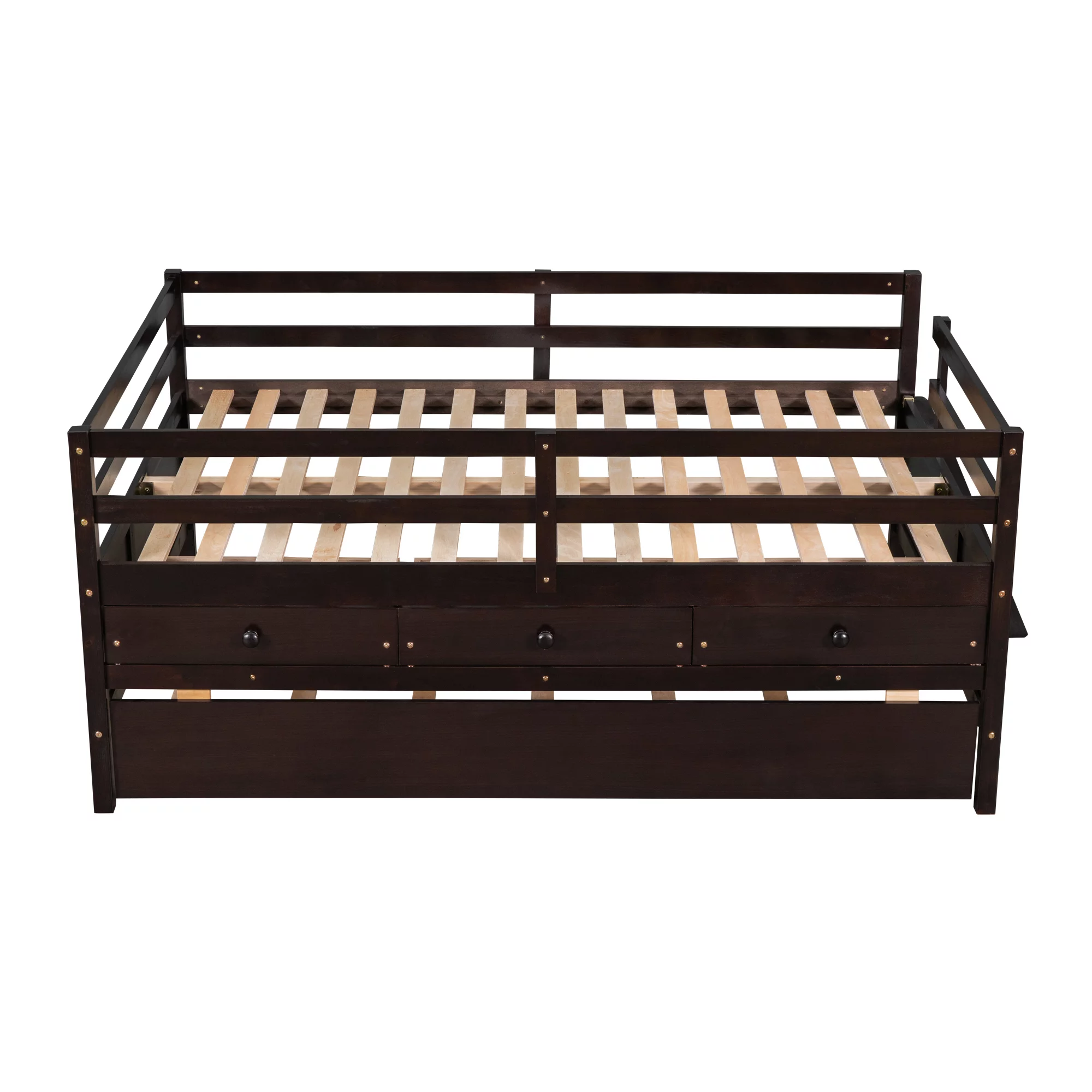 Espresso Captain's Bed Twin Daybed with Trundle Bed and Storage Drawers, No Box Spring Required, Easy Assembly