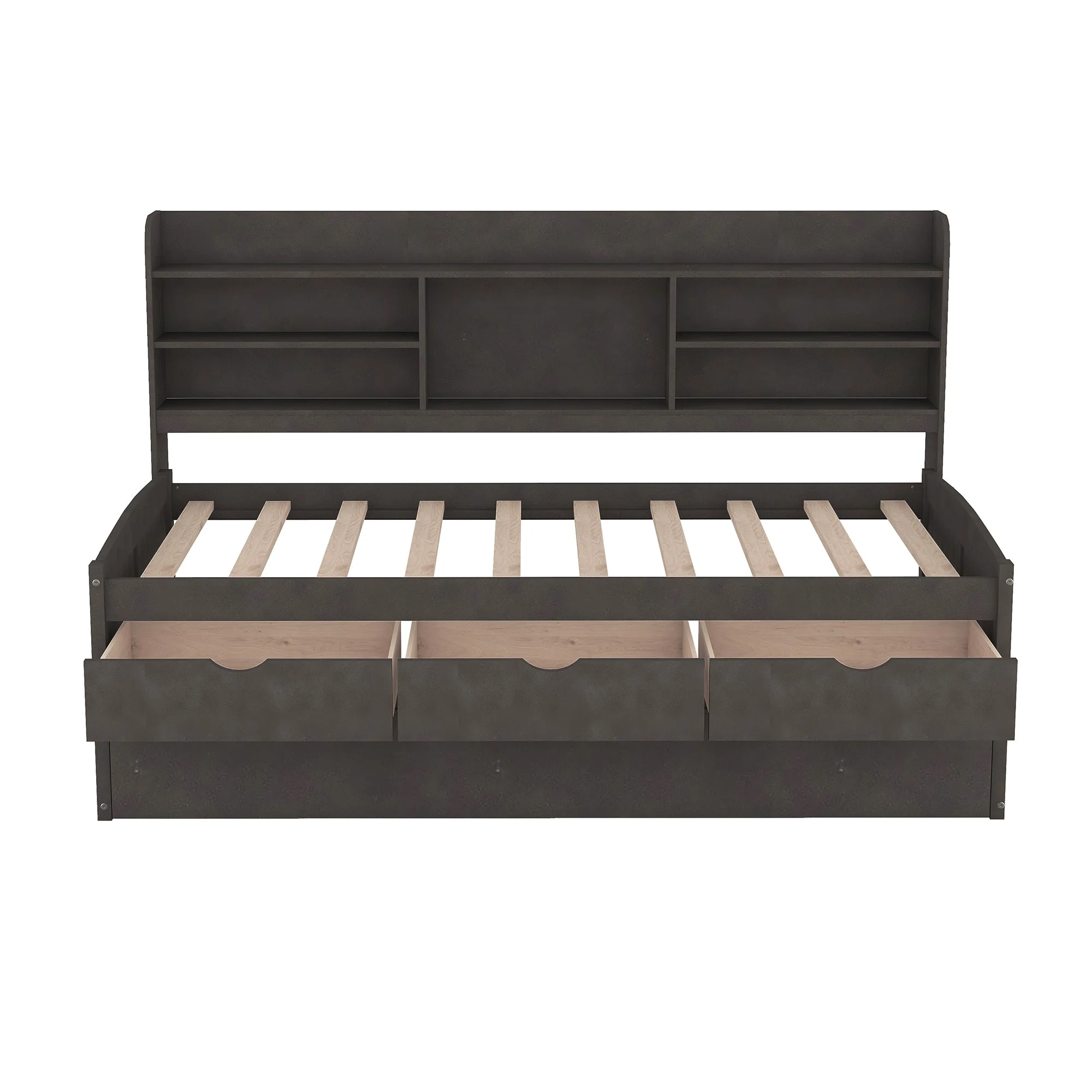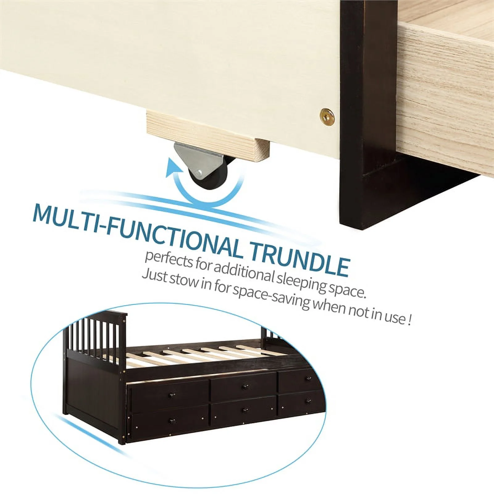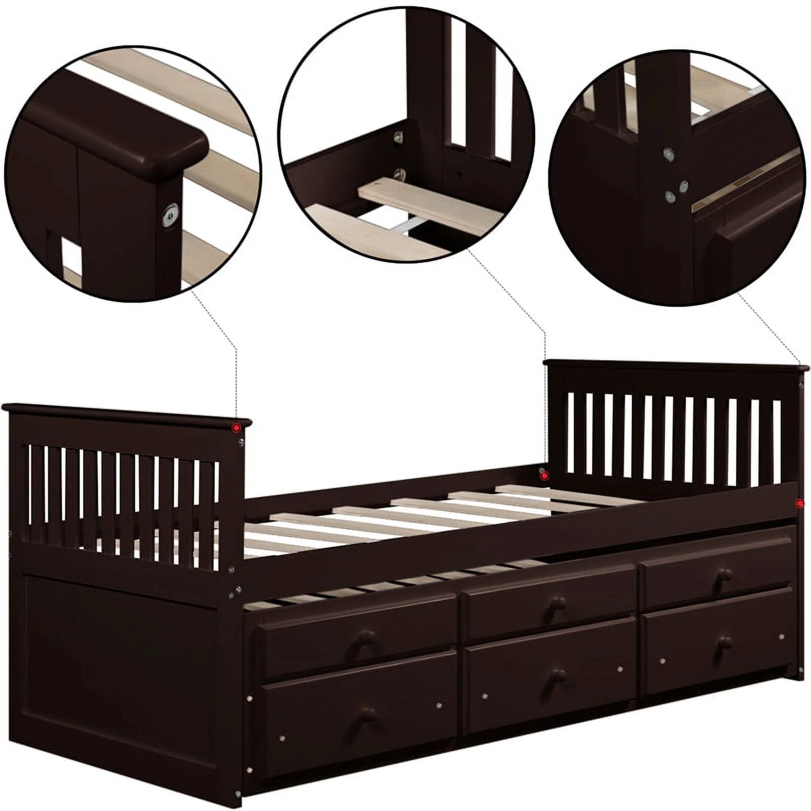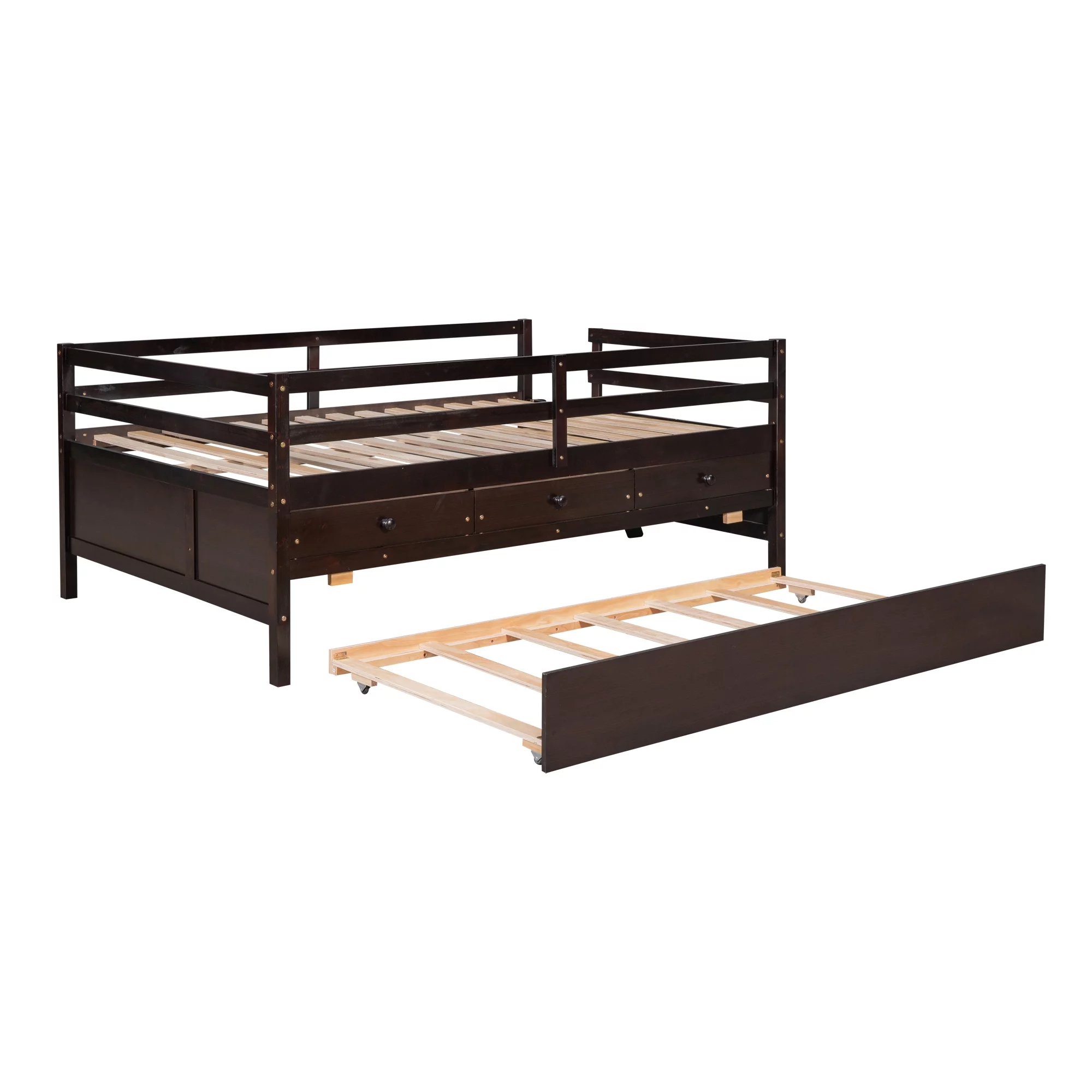 Espresso Captain's Bed Twin Daybed with Trundle Bed and Storage Drawers, No Box Spring Required, Easy Assembly
