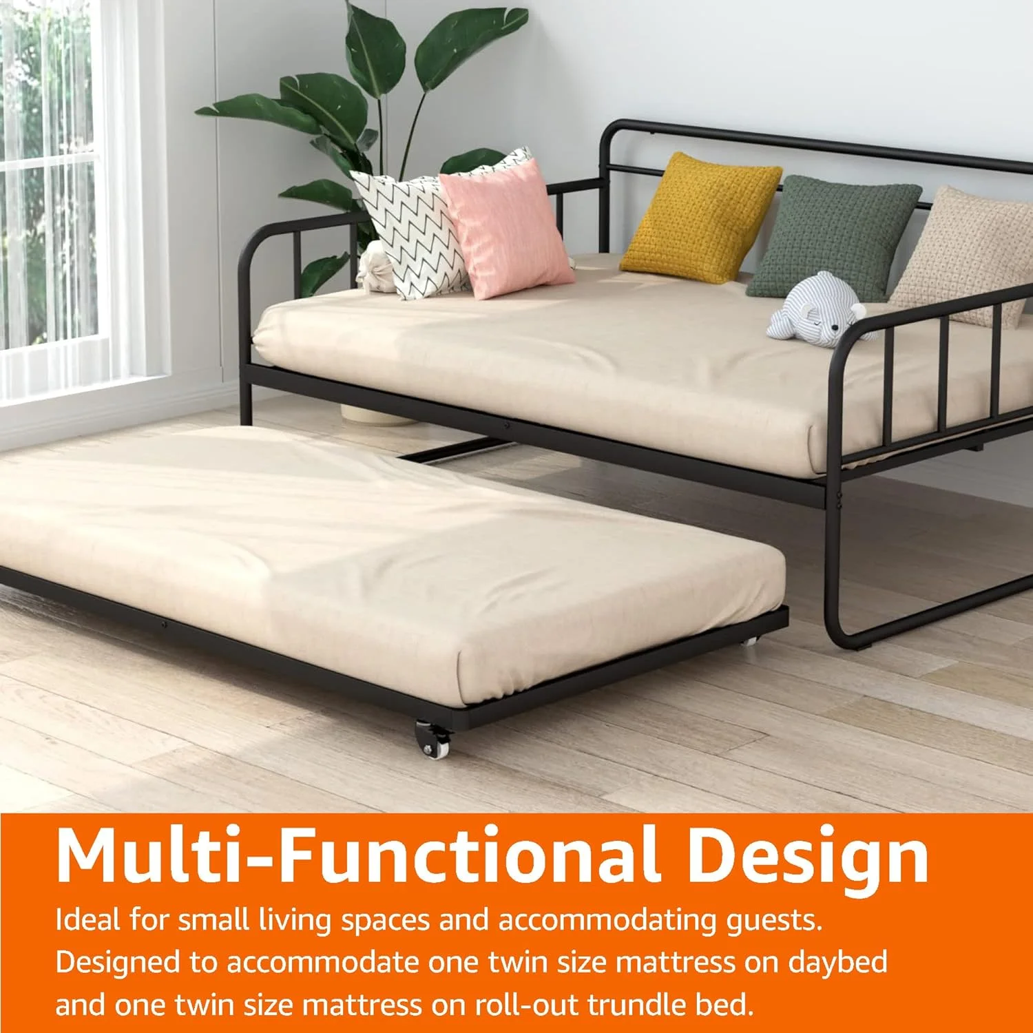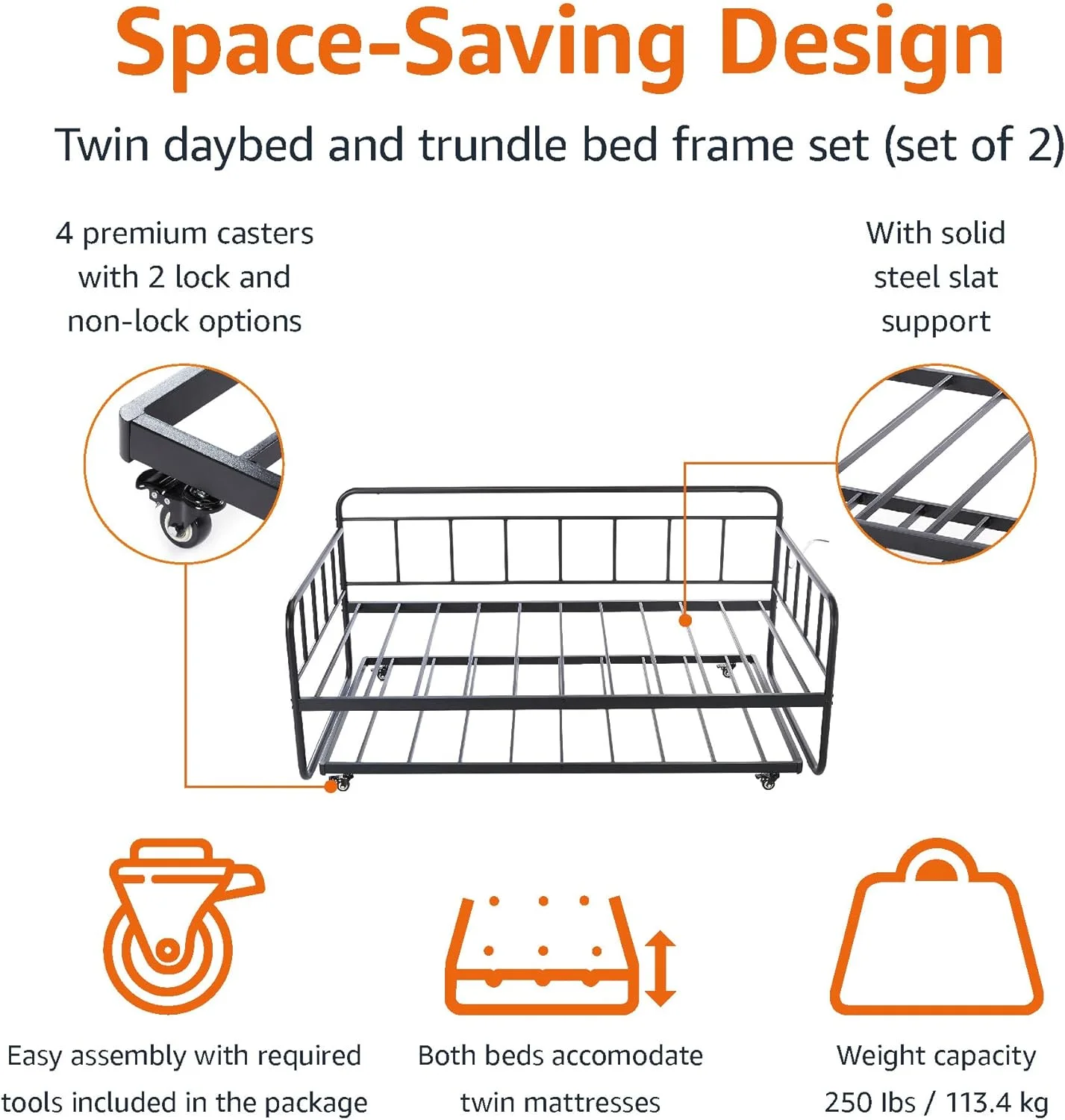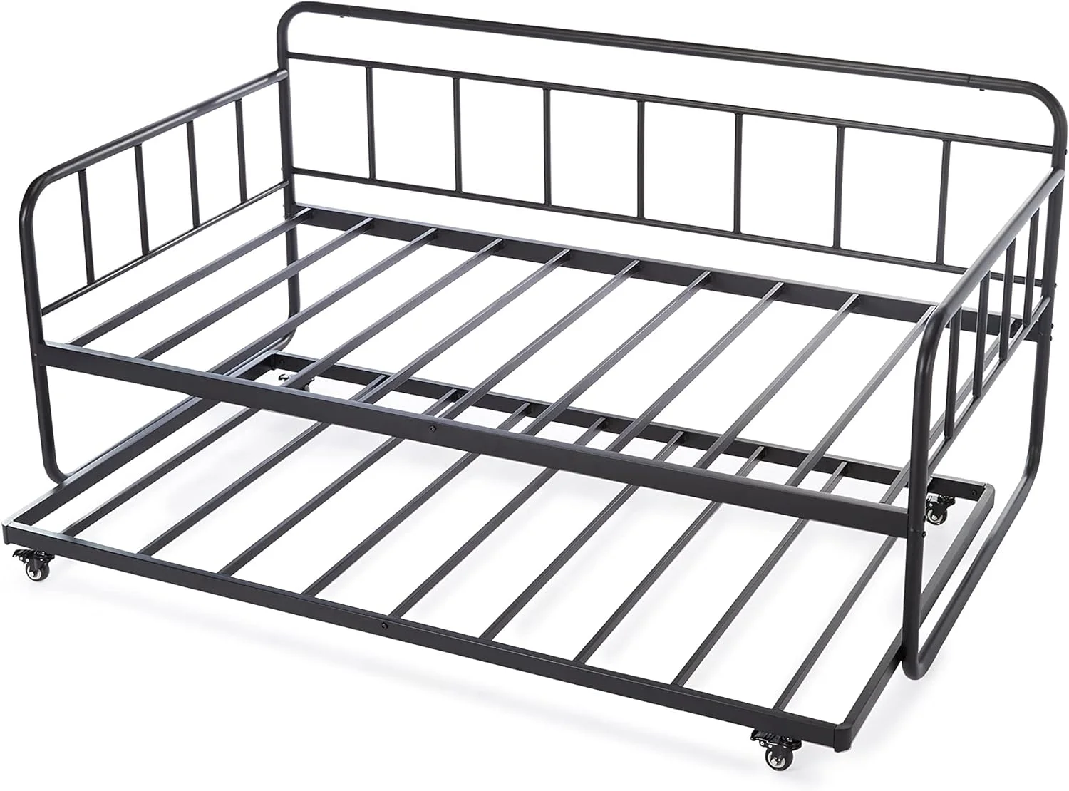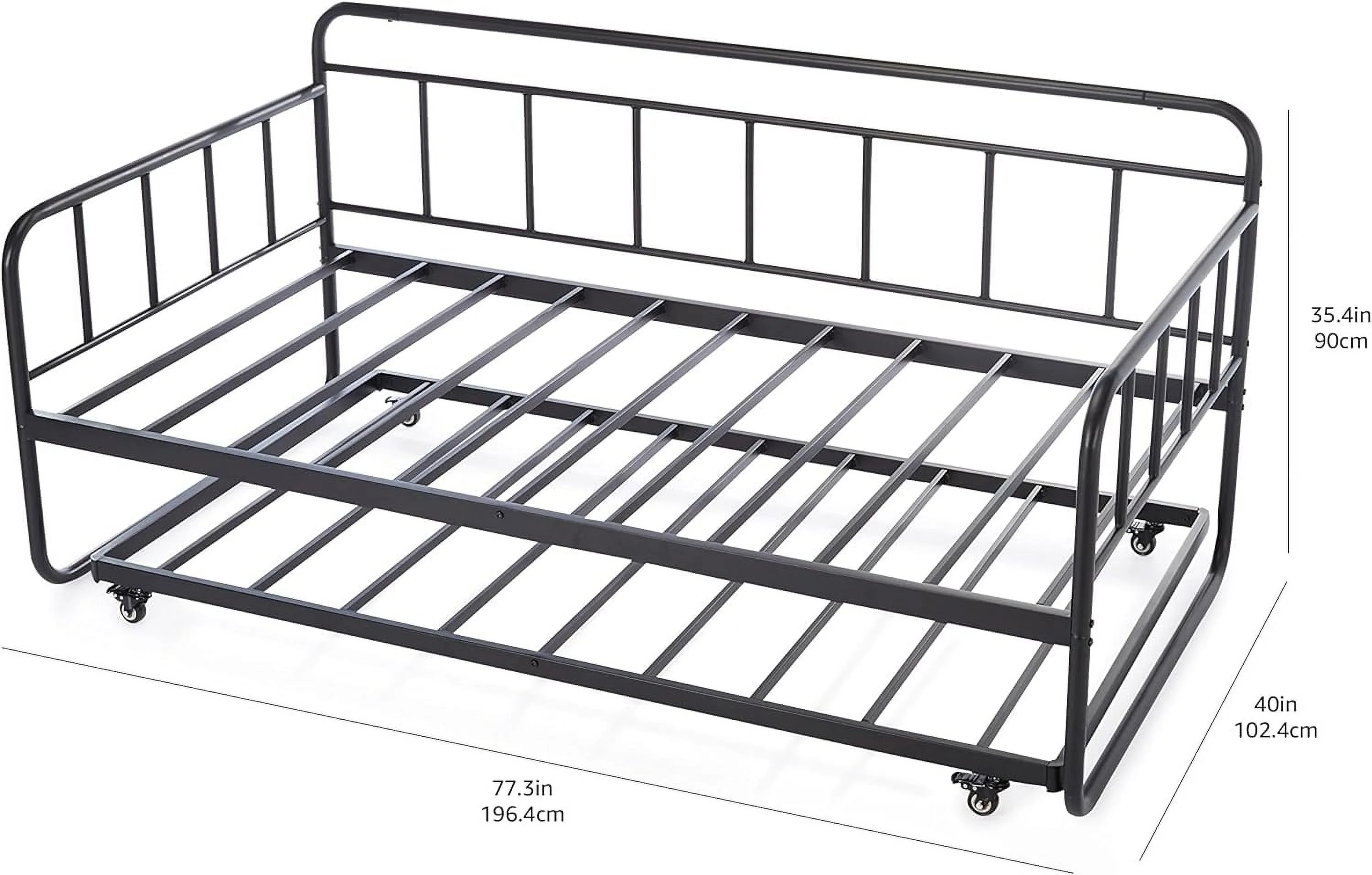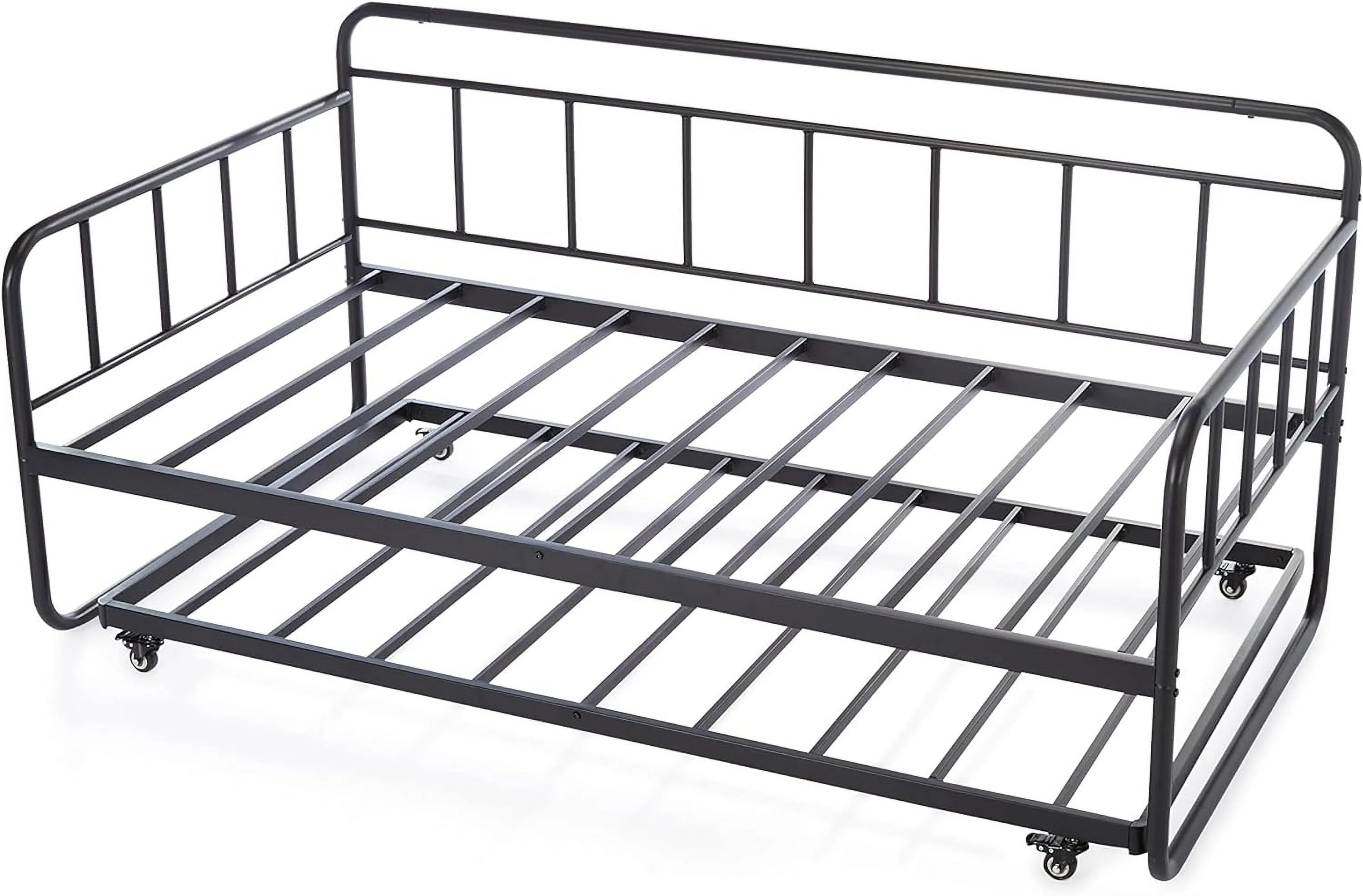 YGDU Twin Daybed and Trundle Bed Frame Set, Steel Slat Support, Black