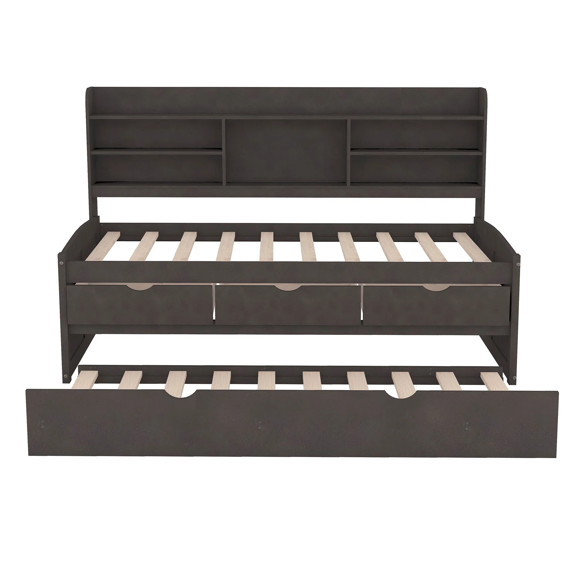 Twin Platform Bed with Trundle and Storage Drawers - Multifunctional Wood Daybed Sofa Frame for Bedroom and Living Room