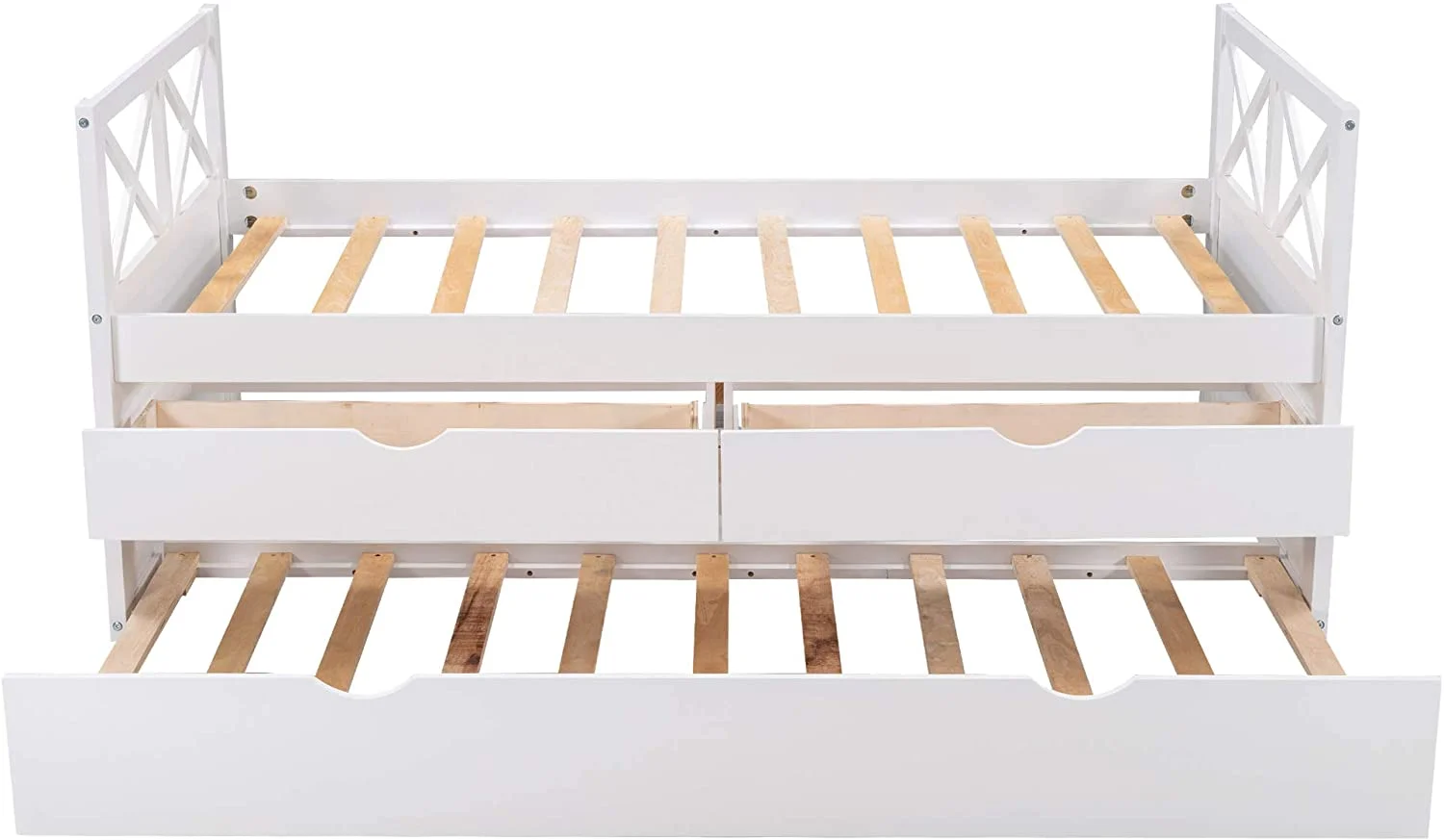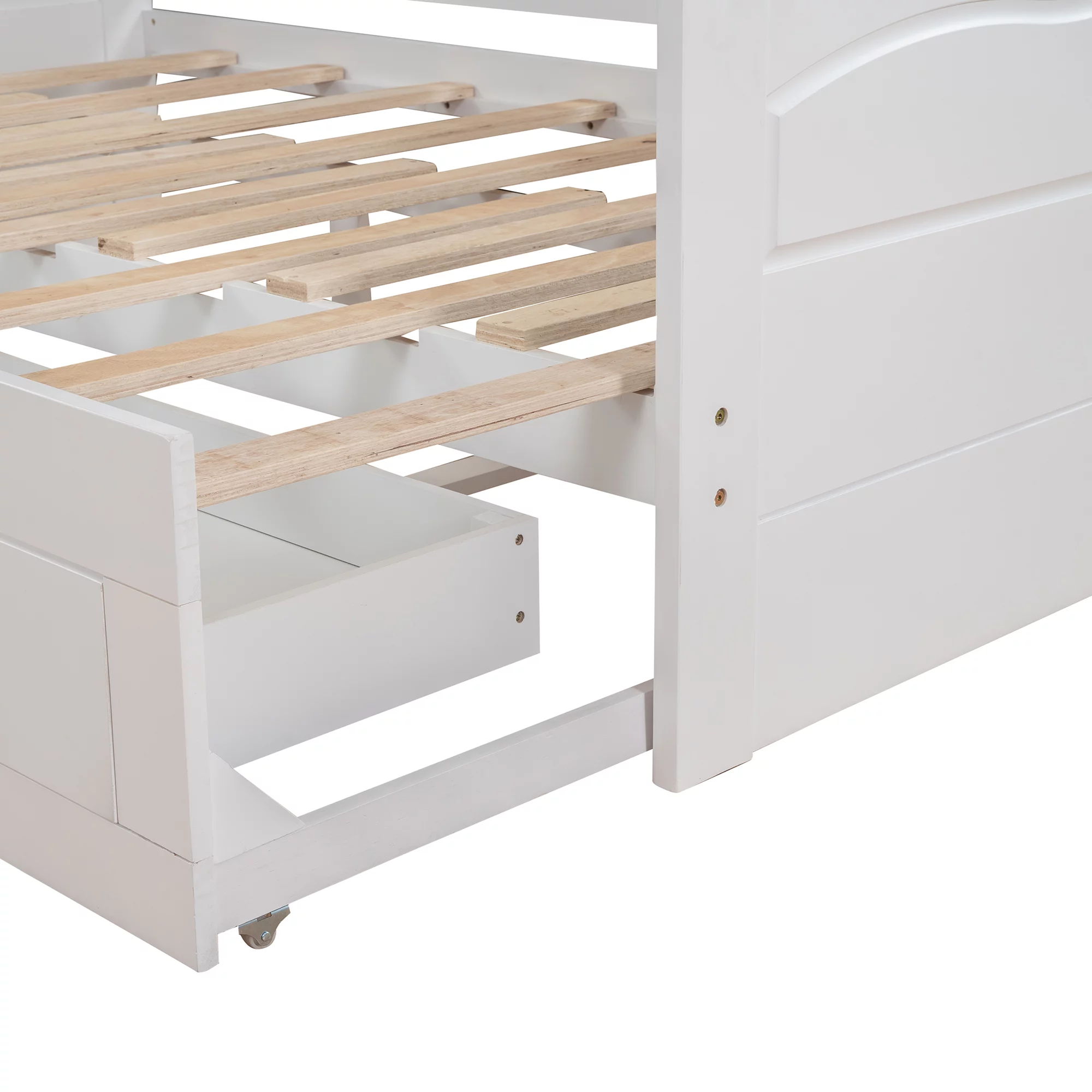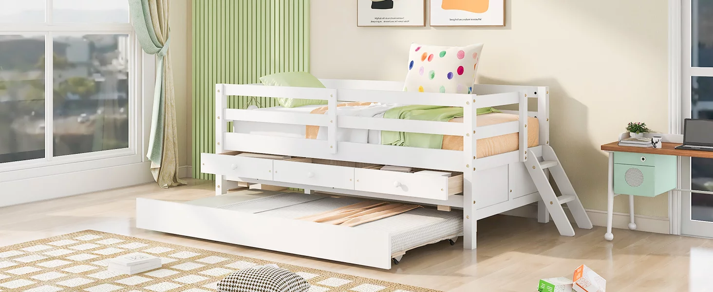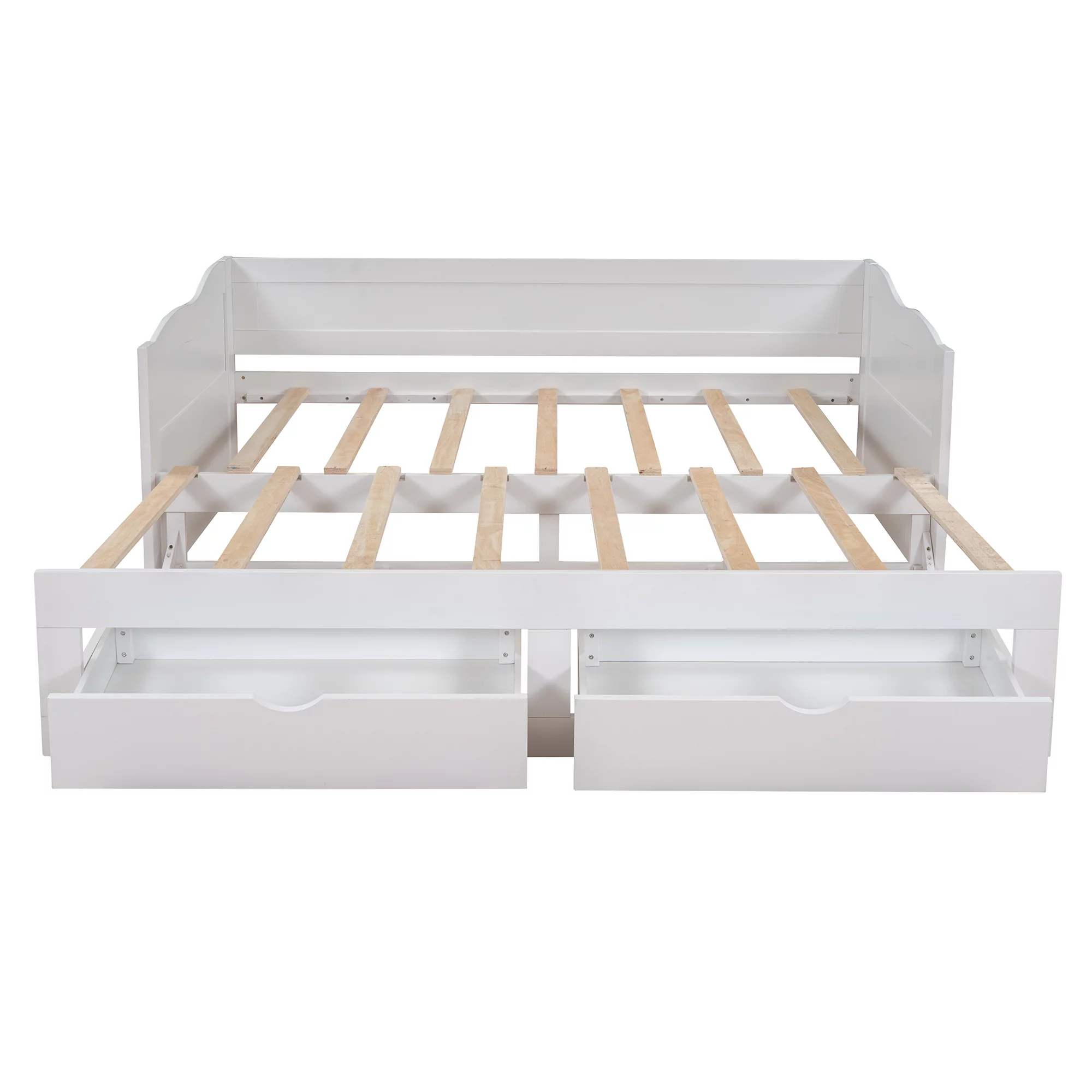 White Twin Extendable Wooden Daybed with Trundle Bed and Two Storage Drawers