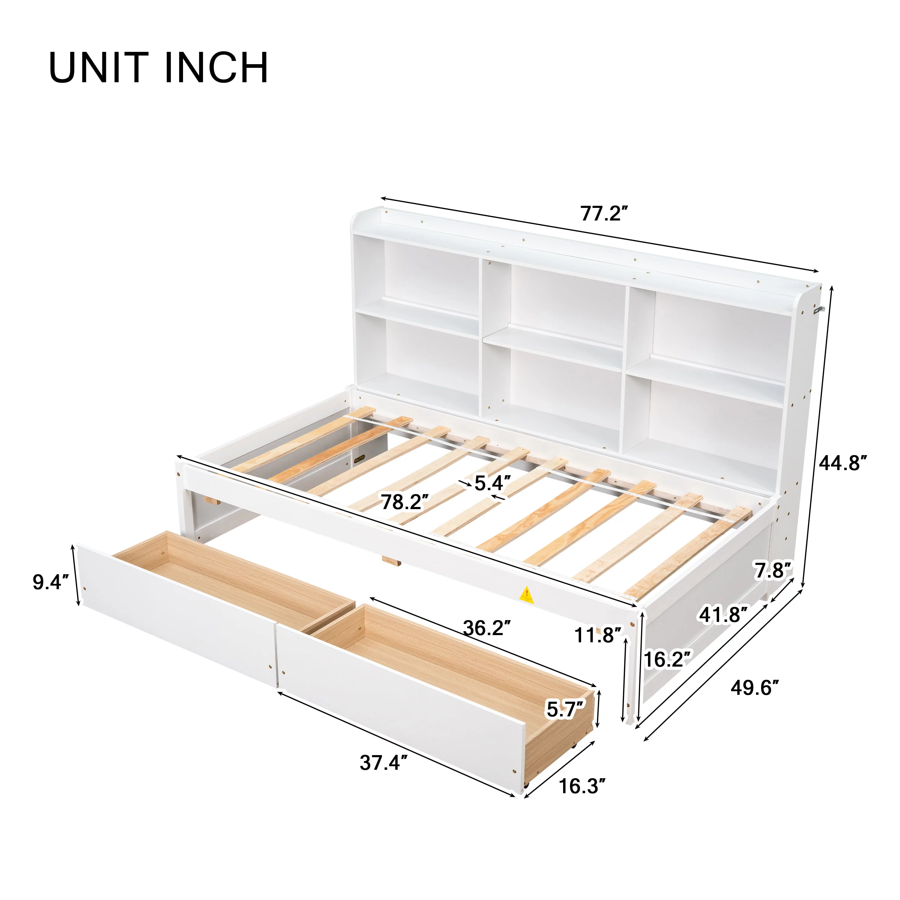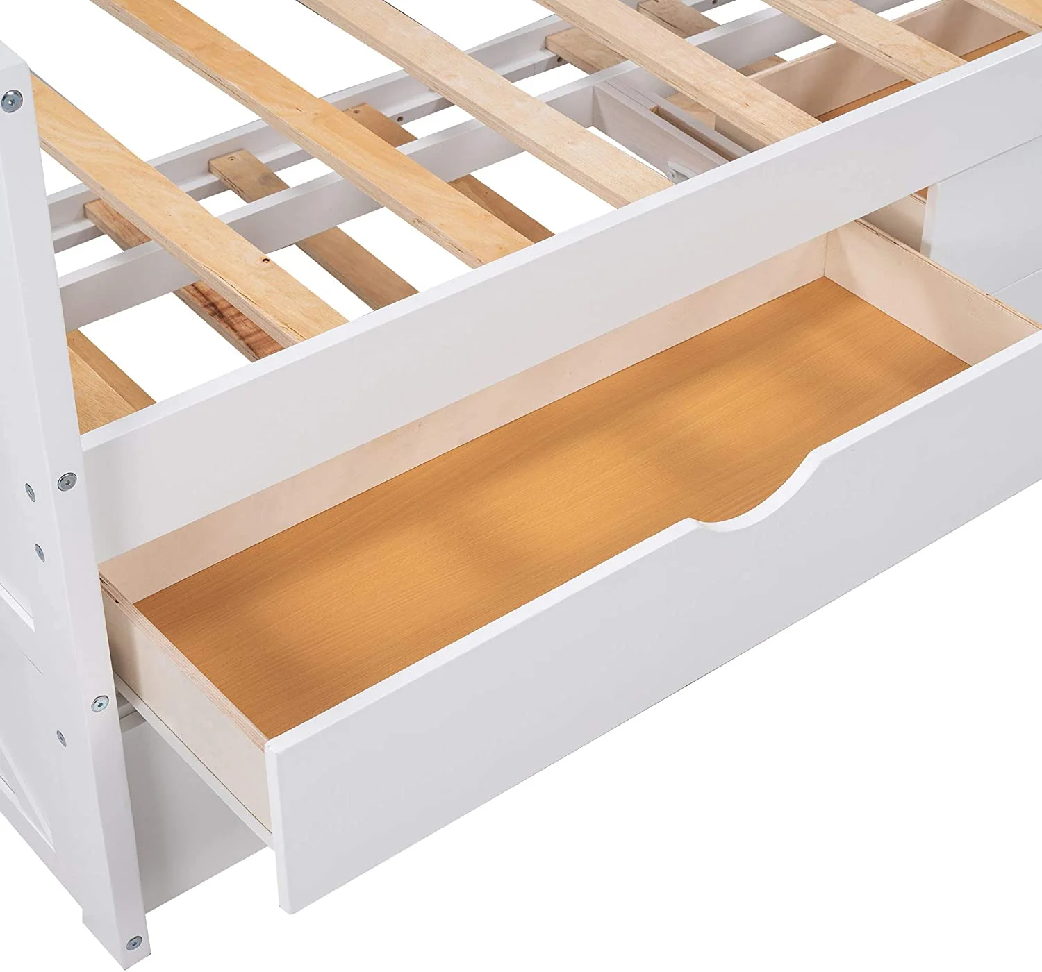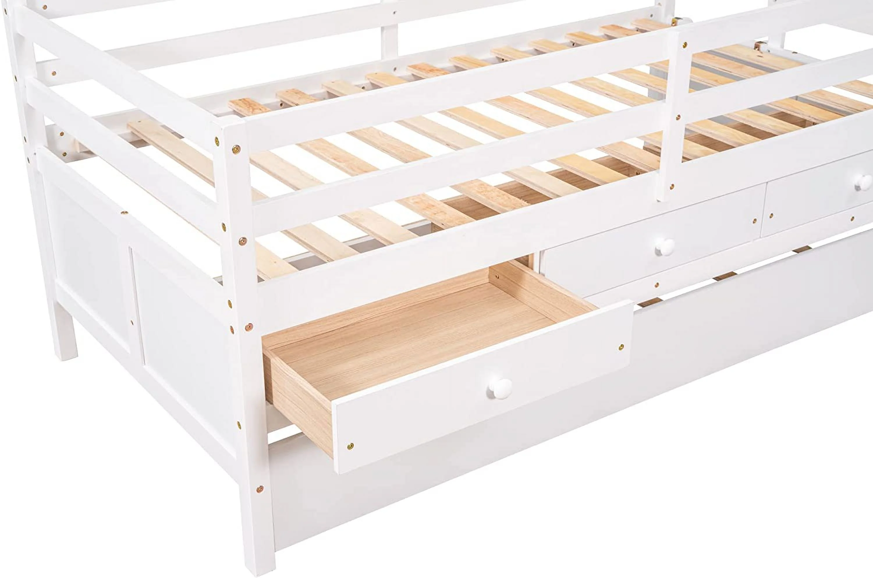 White Twin Extendable Wooden Daybed with Trundle Bed and Two Storage Drawers