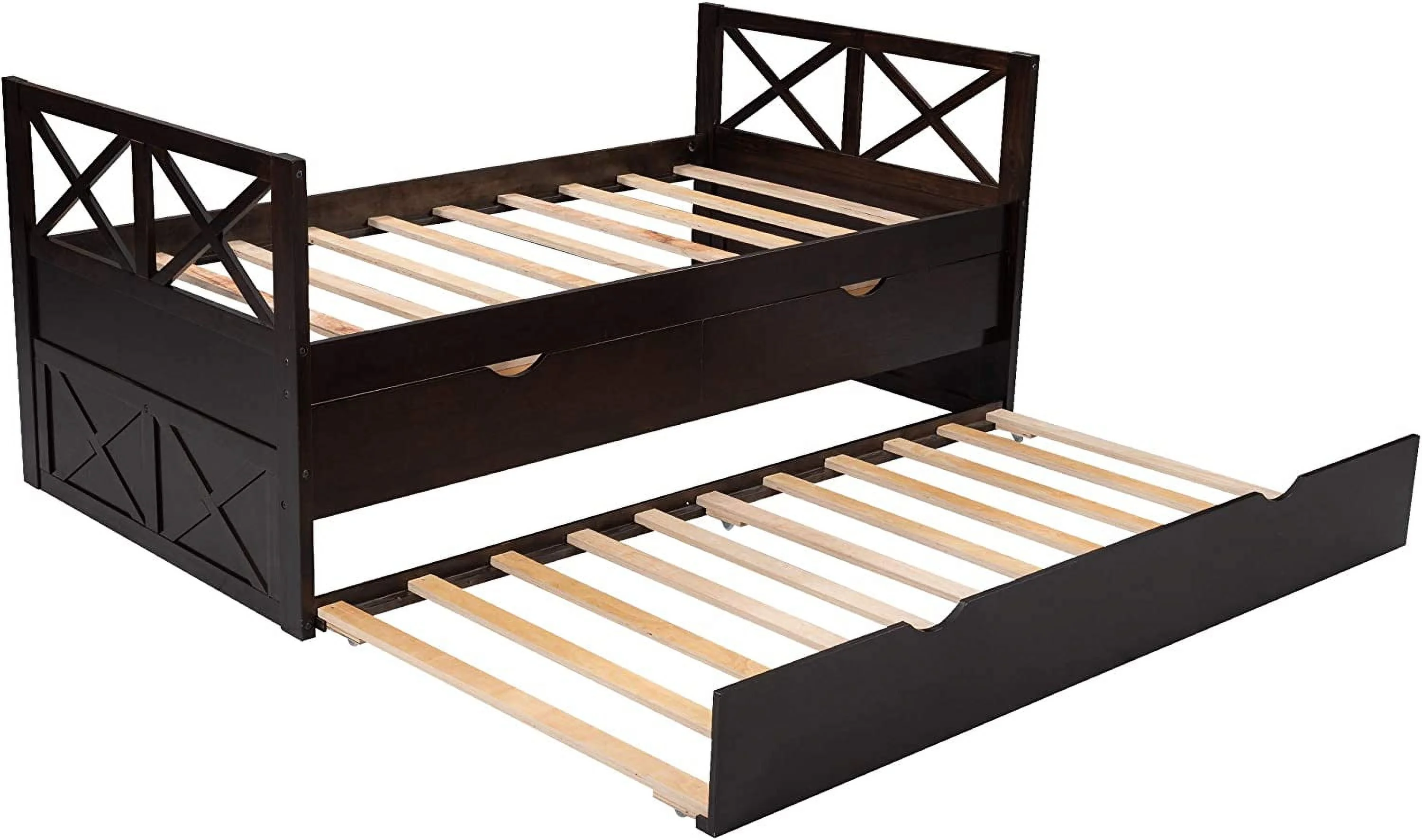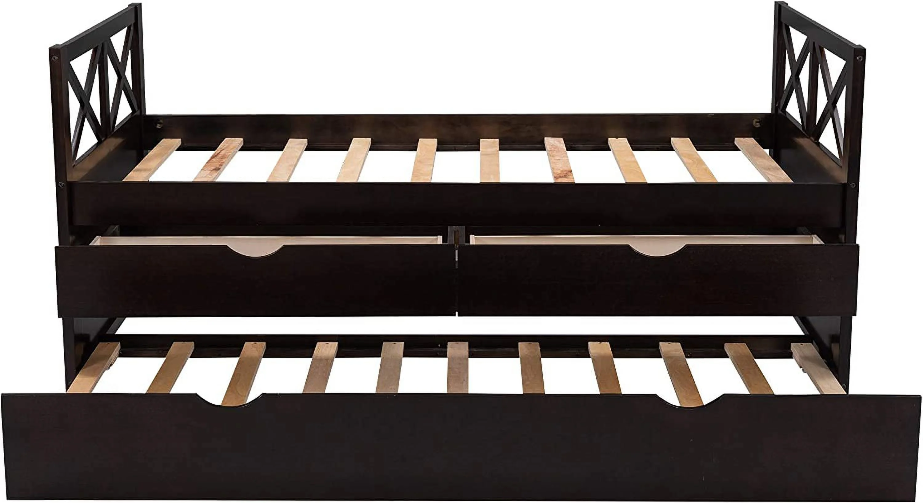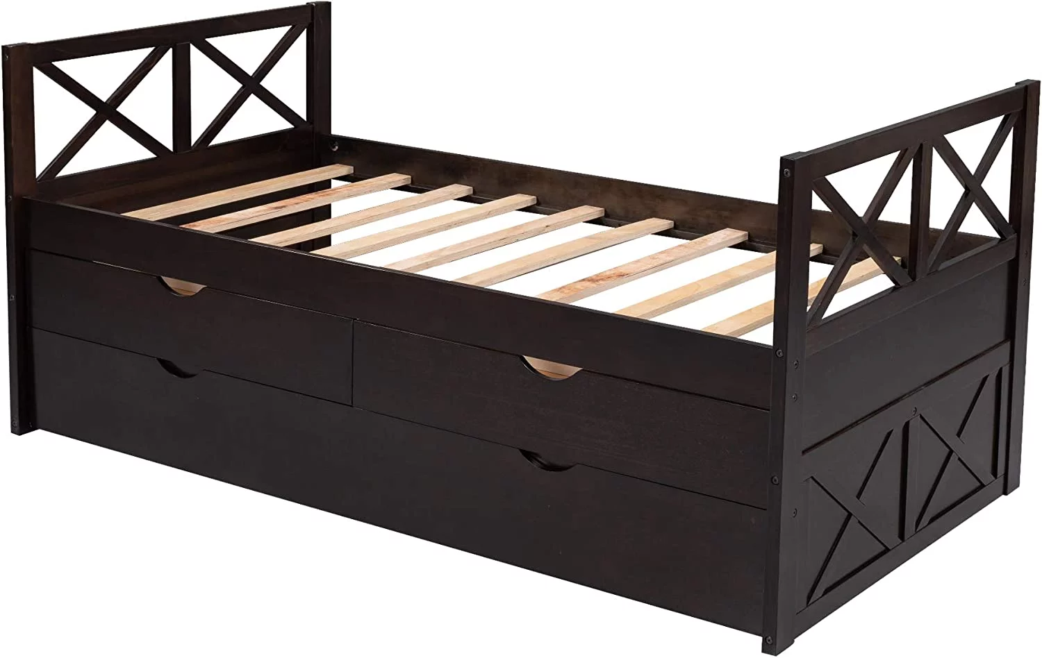 CRO Decor Captain's Bed Twin Daybed with Trundle Bed and Storage Drawer-Espresso