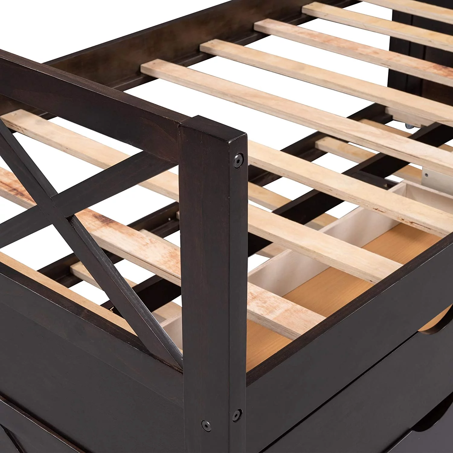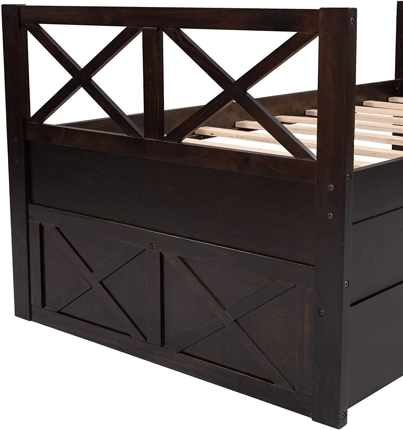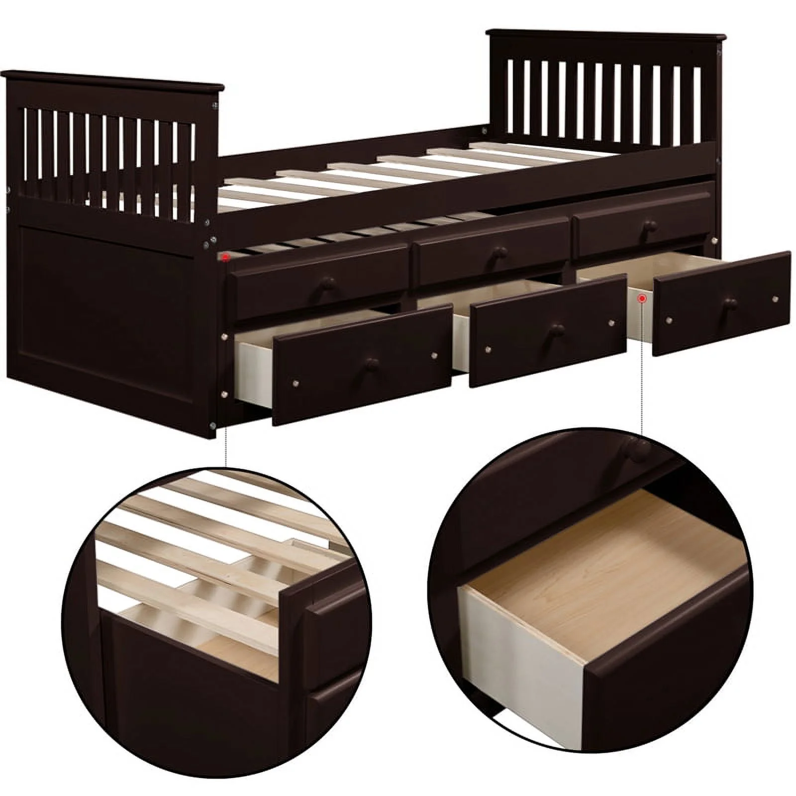 CRO Decor Captain's Bed Twin Daybed with Trundle Bed and Storage Drawer-Espresso