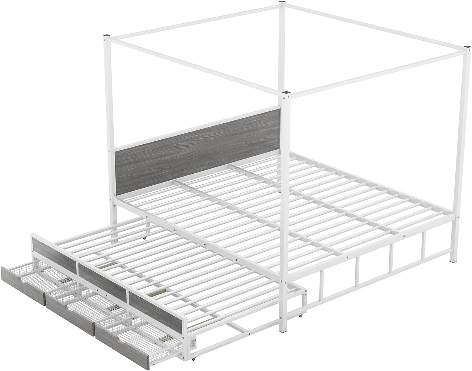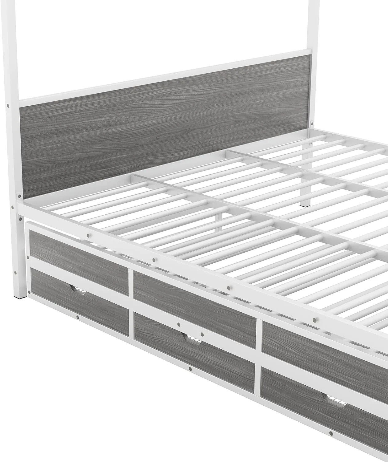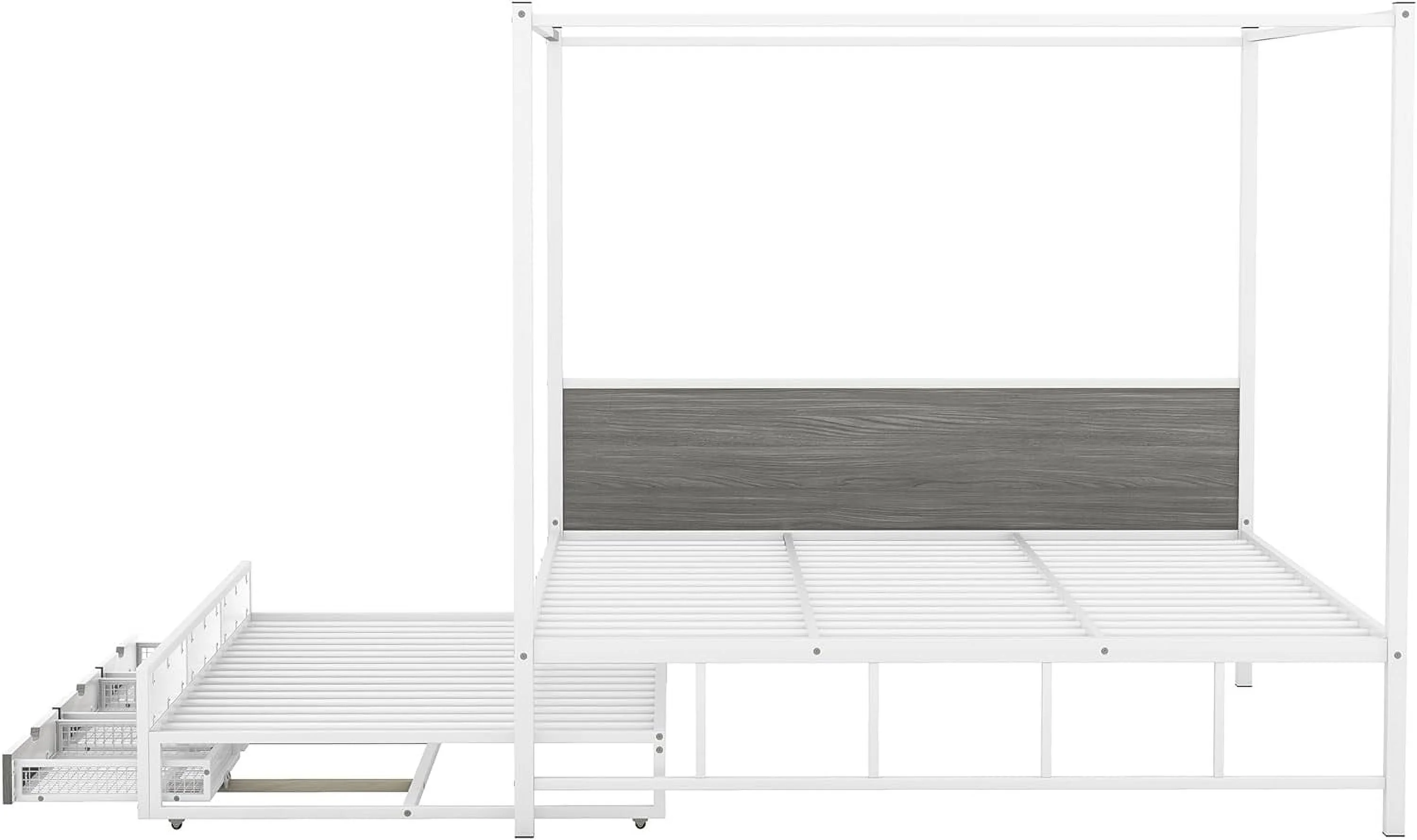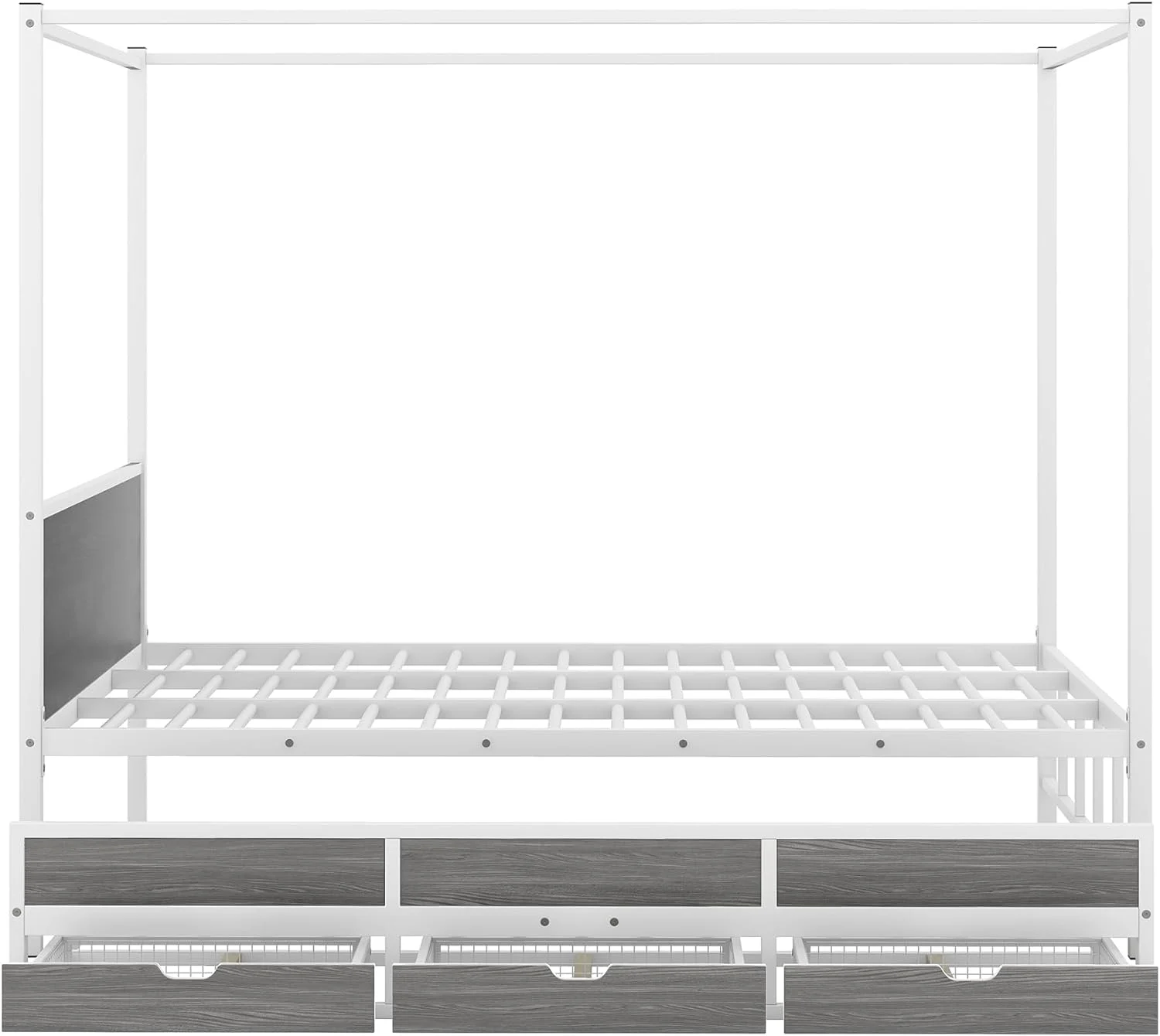 Size Captain Bookcase Bed With Trundle Bed, Solid Pine Bed Frame With 3 Spacious Under Bed Drawers In Casual,White+Walnut