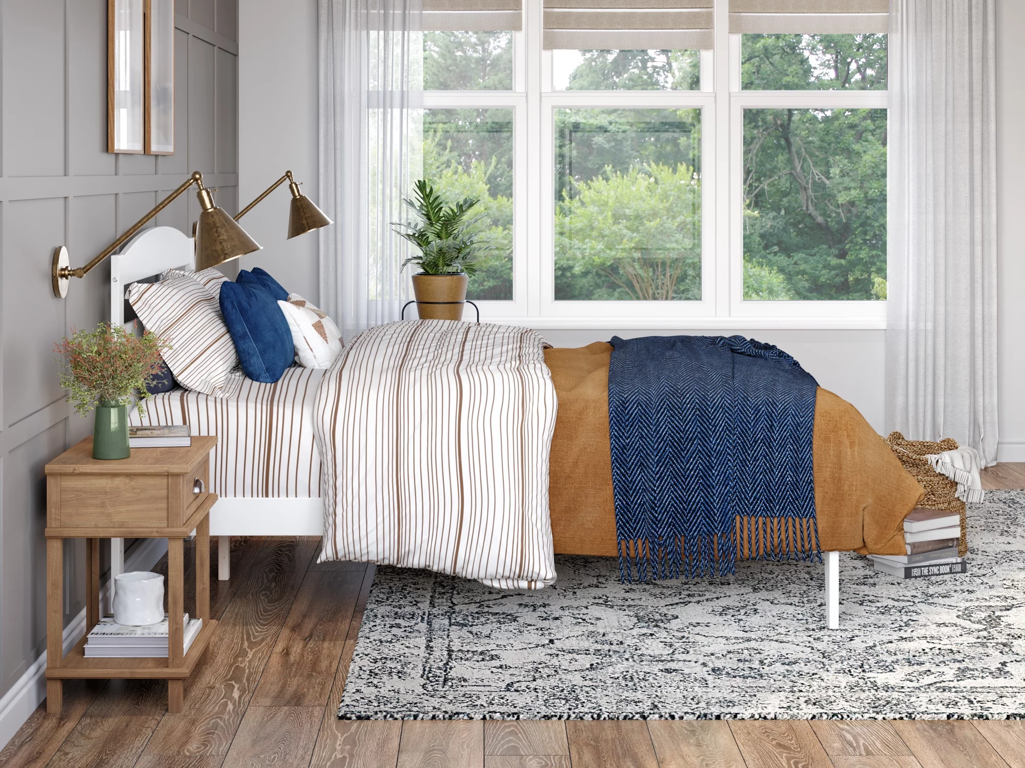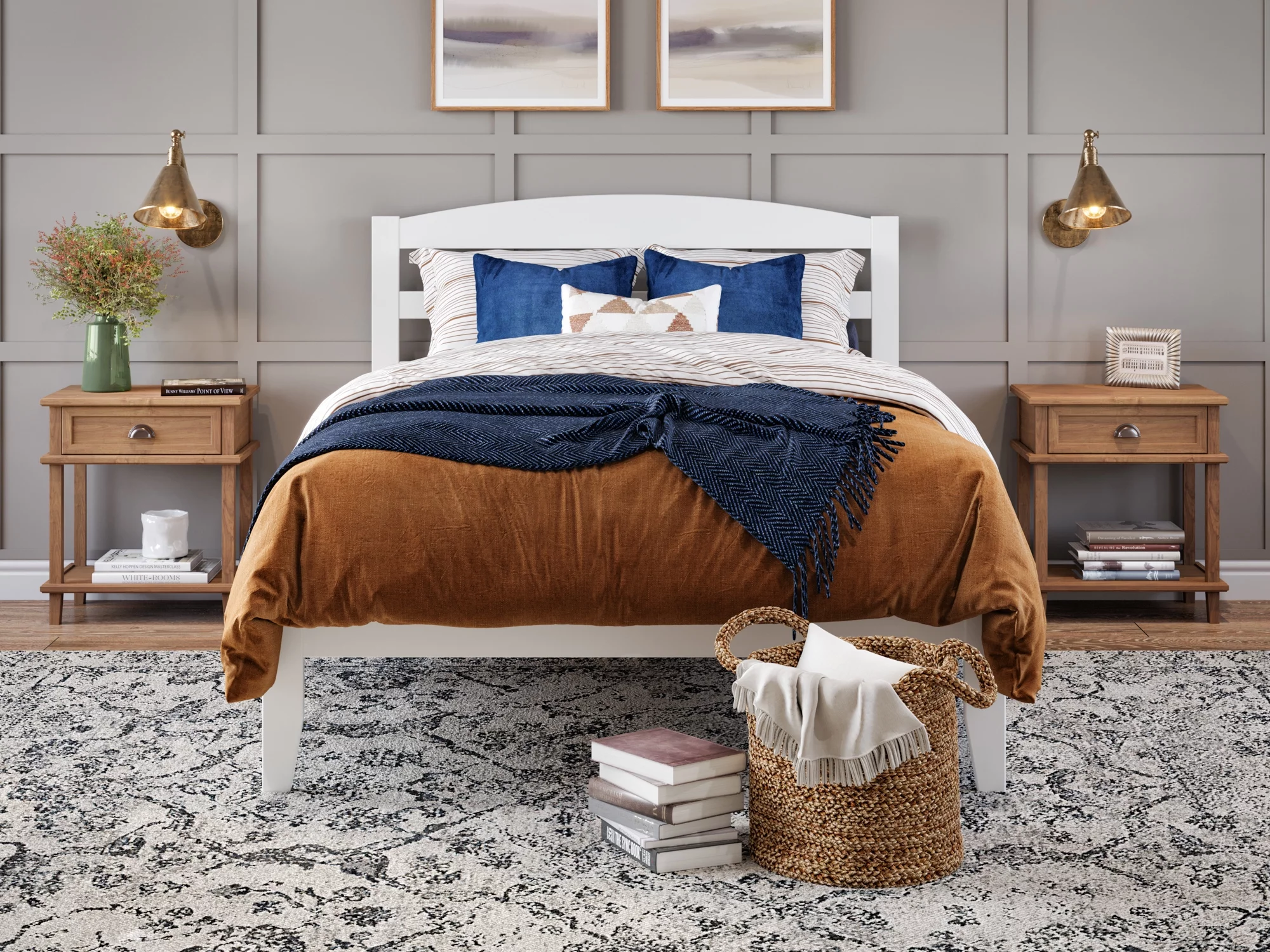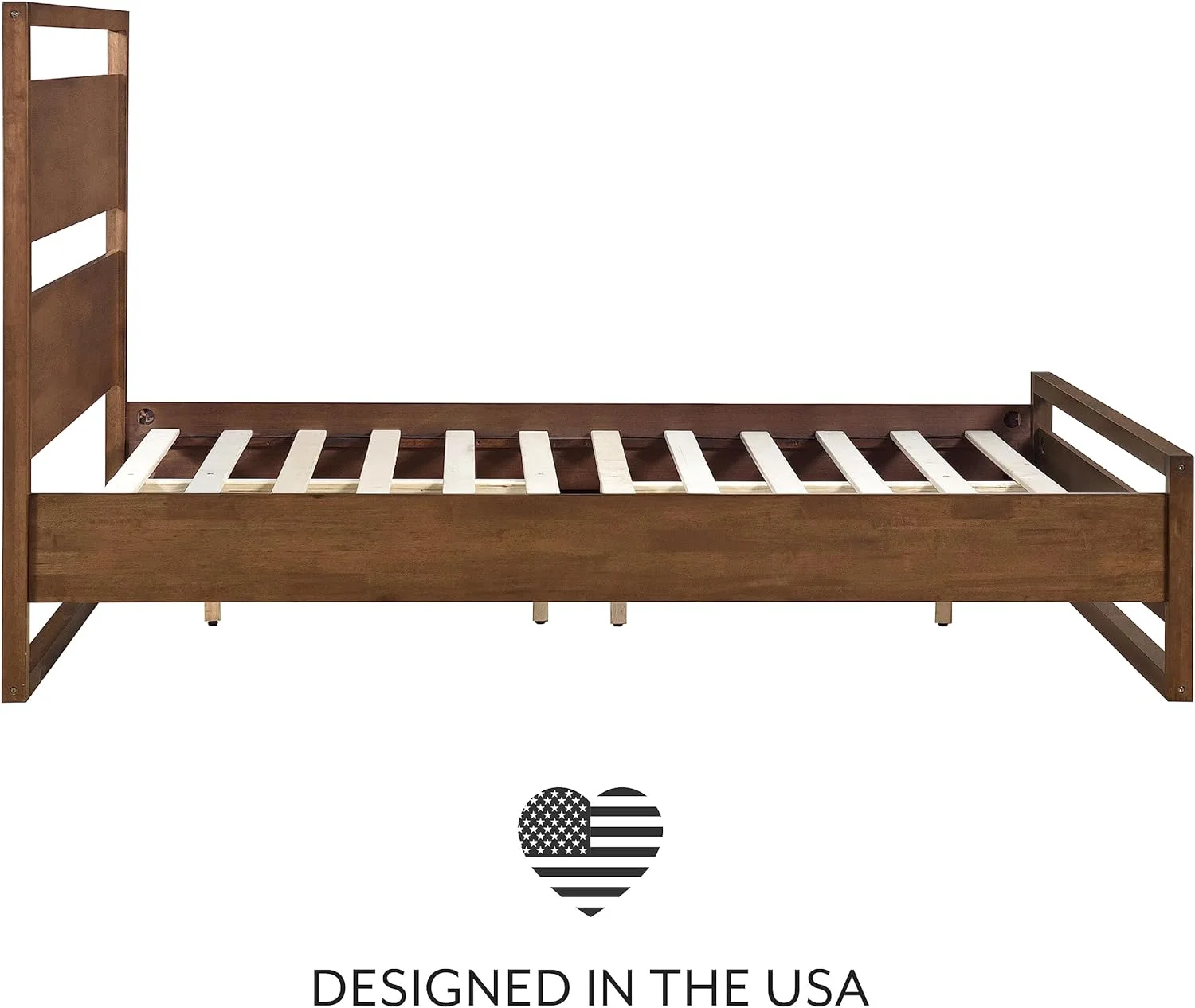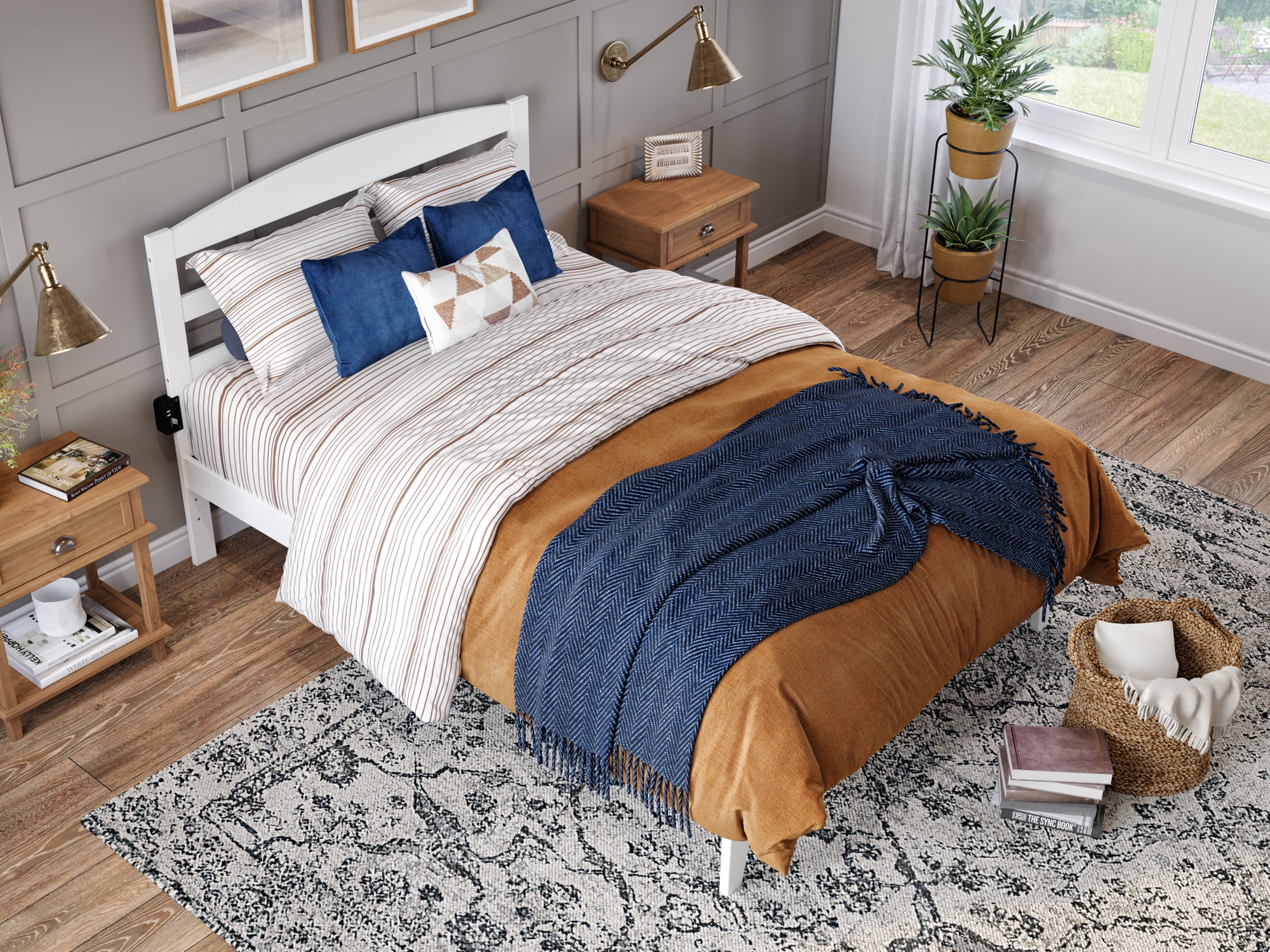 AFI Warren 14" Full Wood Platform Bed Frame with Slatted Headboard, White