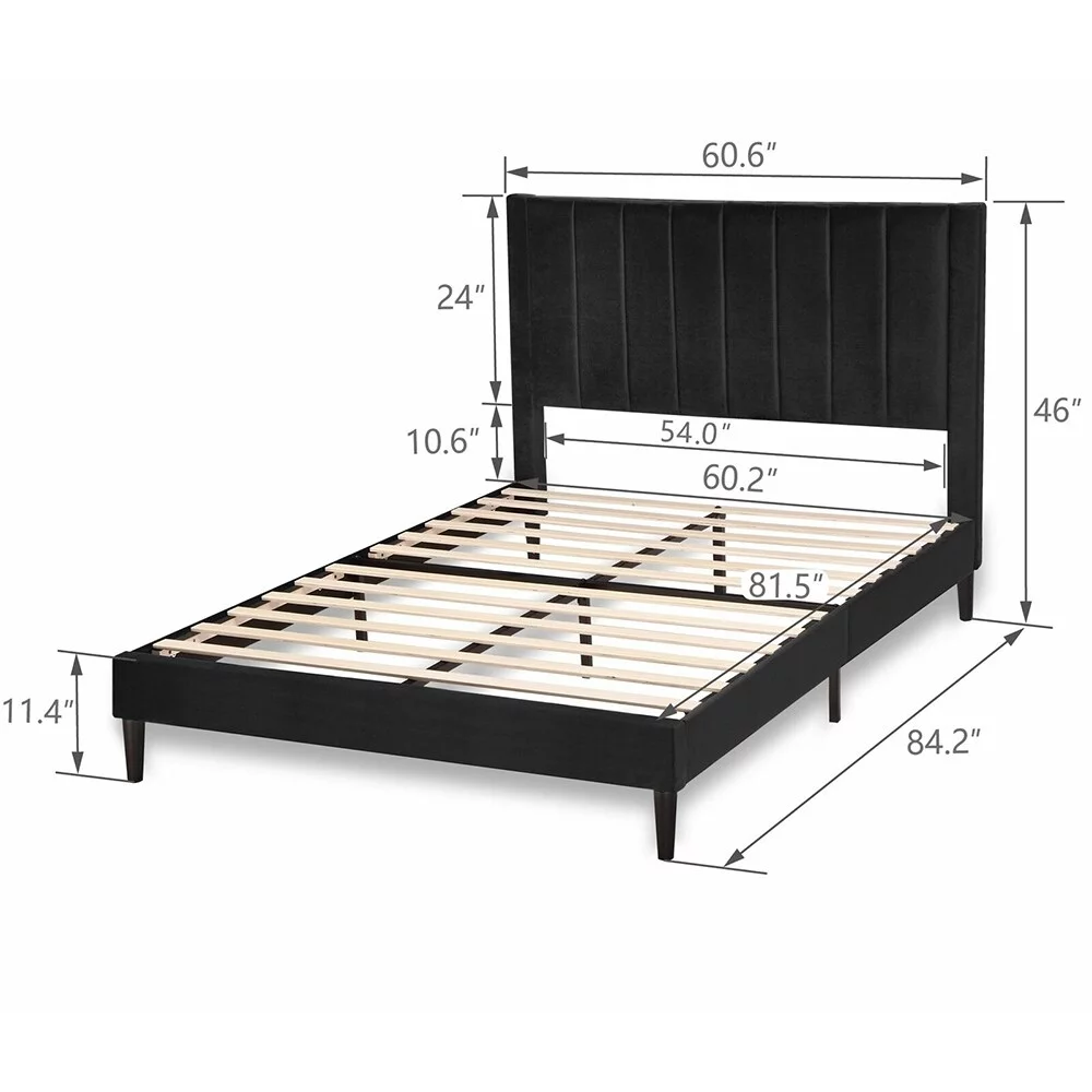 Homestock Modern Minimalism Velvet Upholstered Platform Bed with Sturdy Gold Steel Legs and Deep Channel Tufted Headboard
