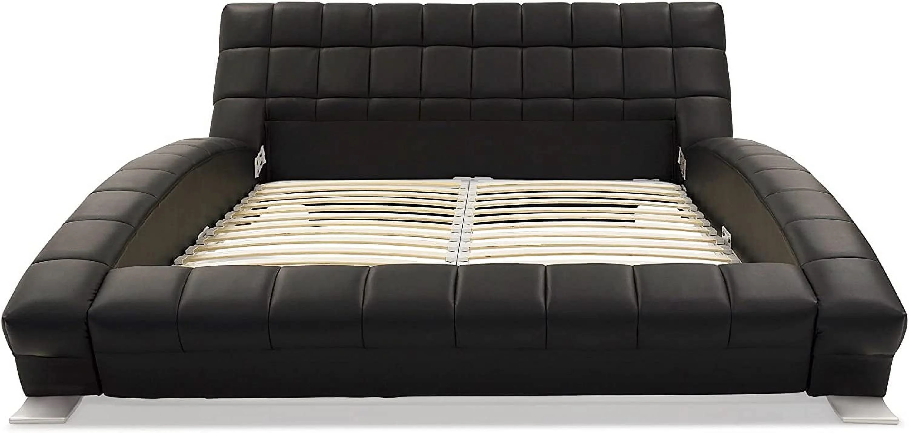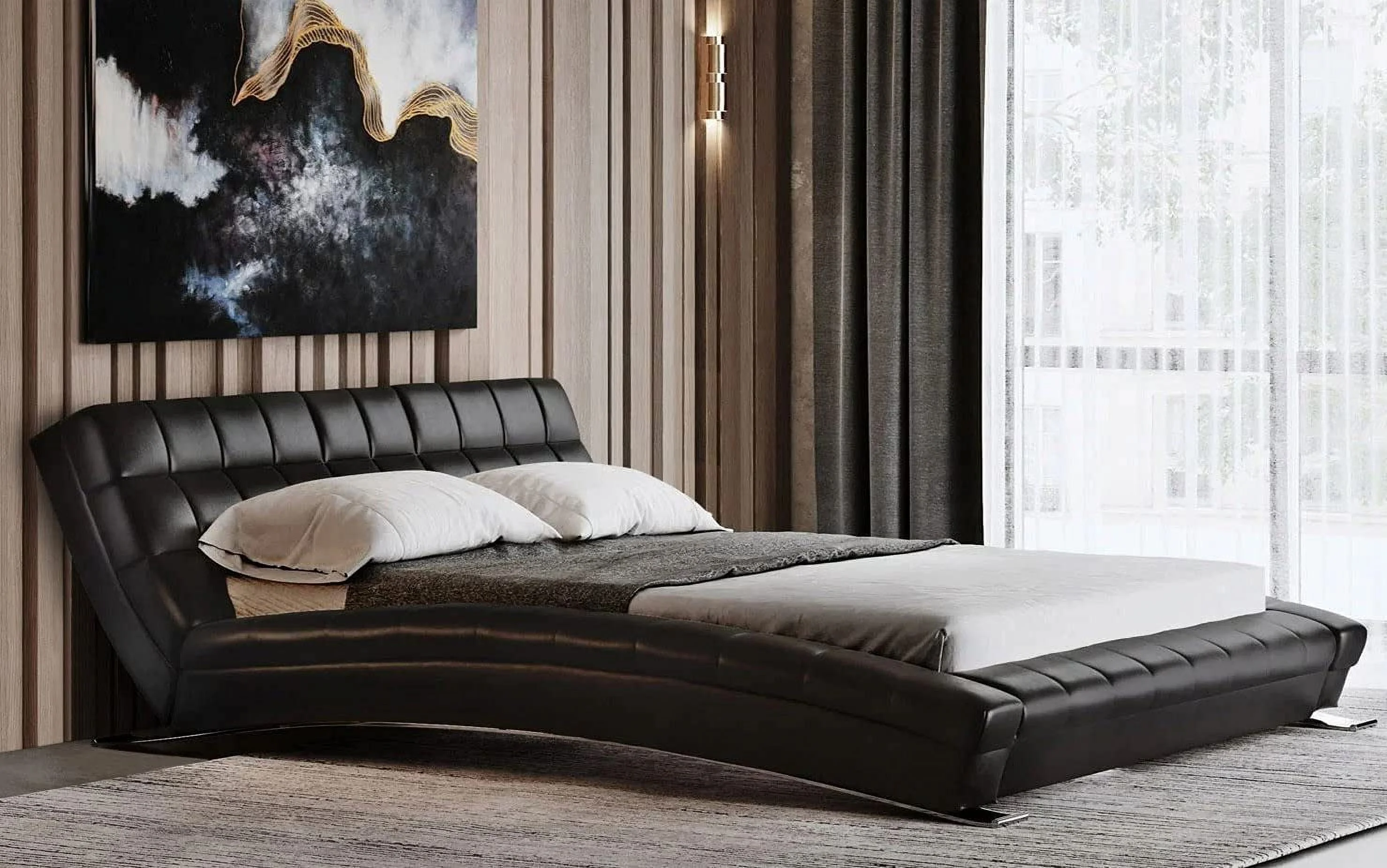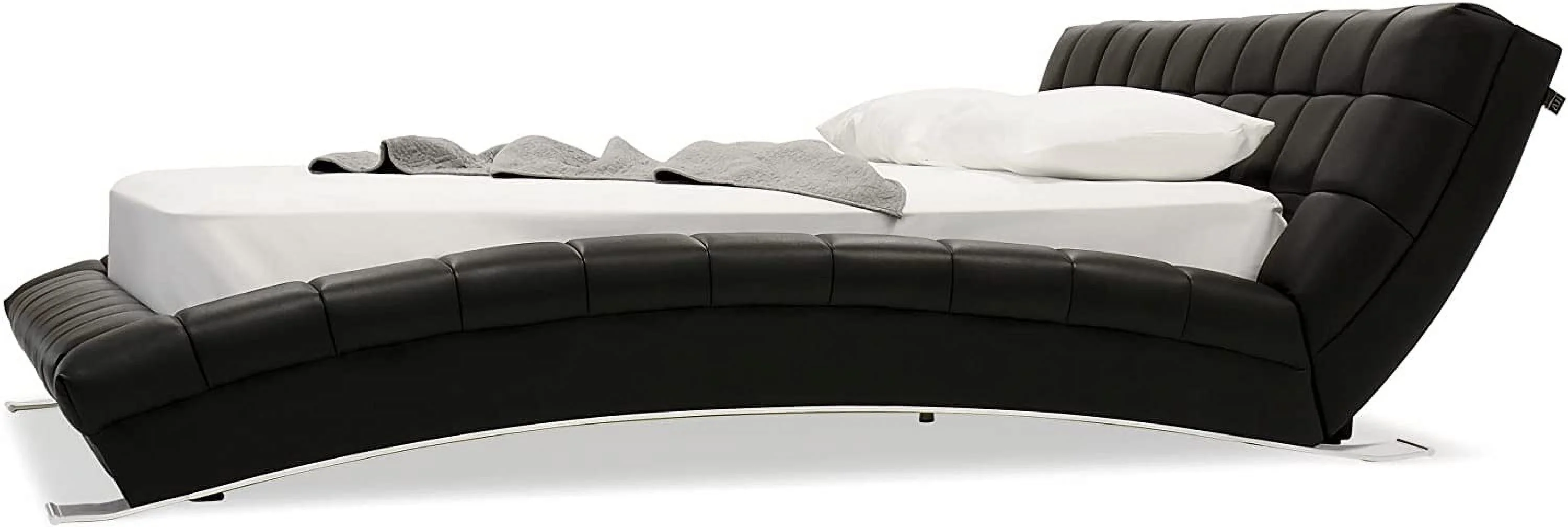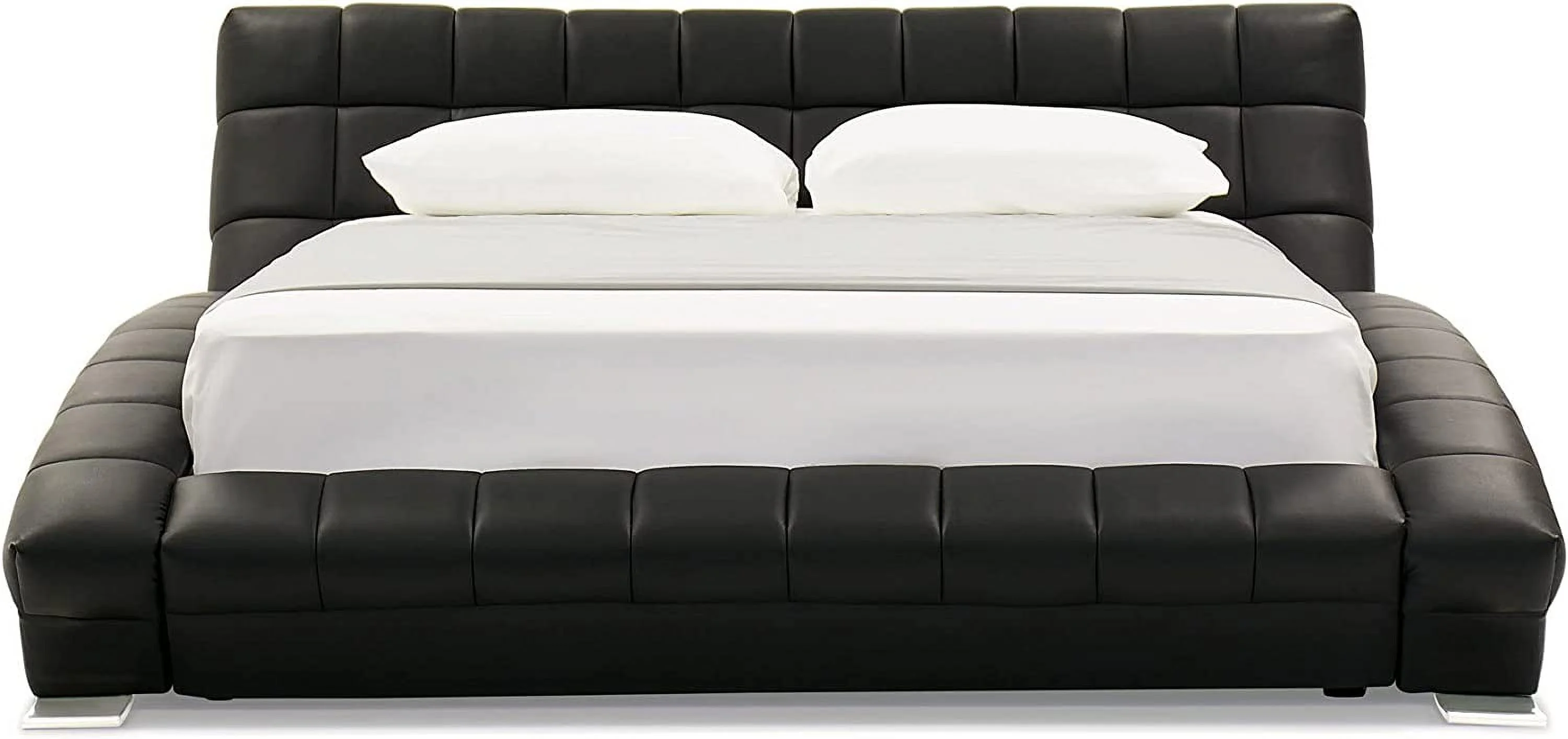 Popular Modern Adonis Black Tufted Genuine Leather Platform Bed - King