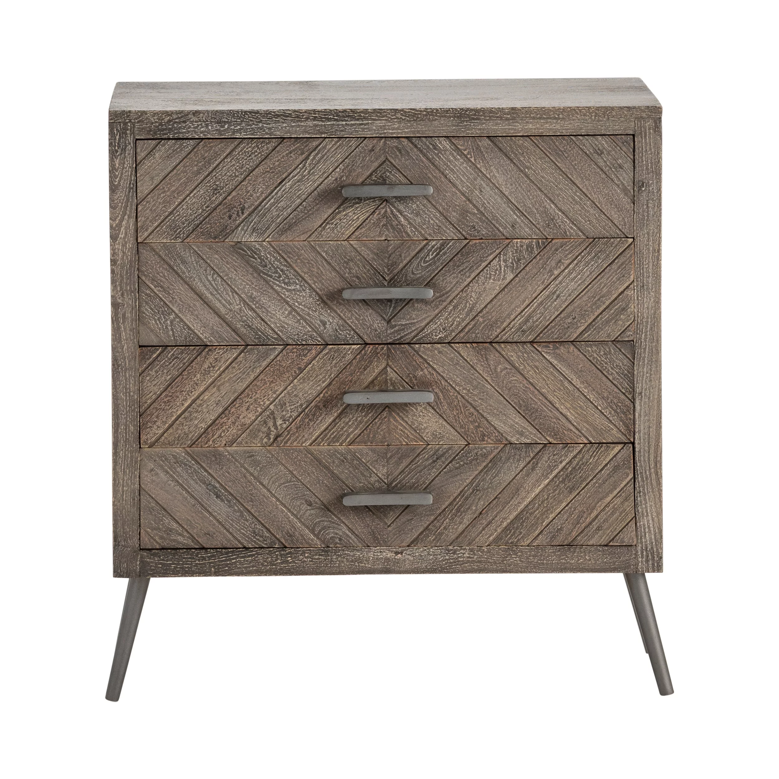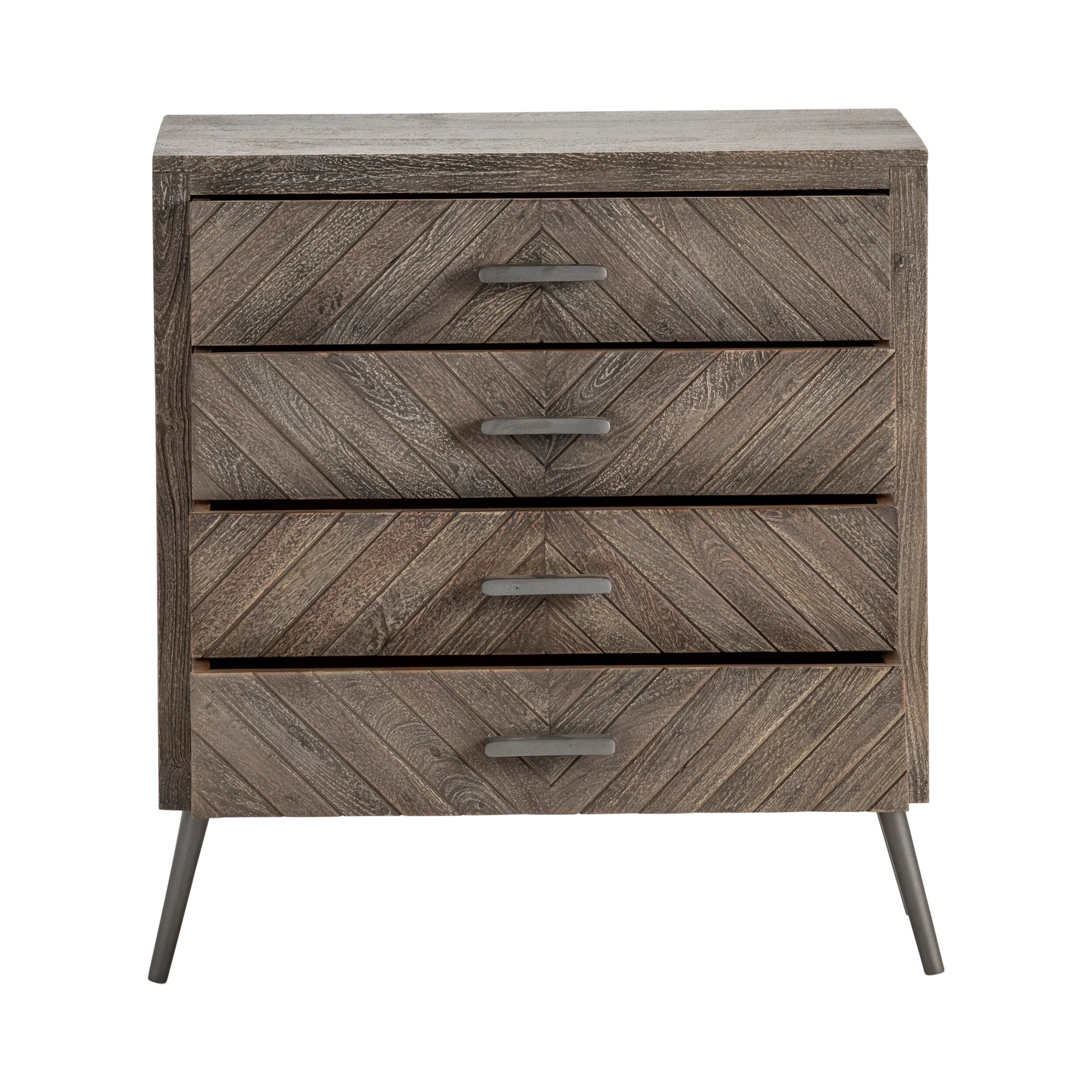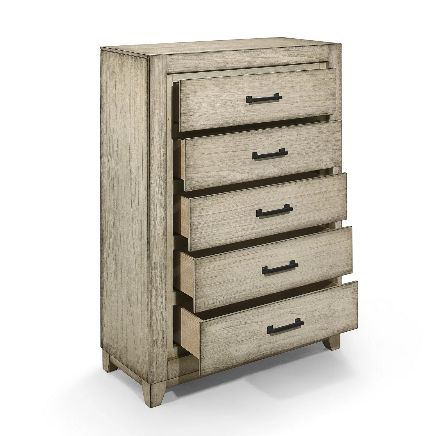 BenJara Alo 51 Inch Tall Dresser Chest, 5 Drawers, Metal Handles, Rustic White