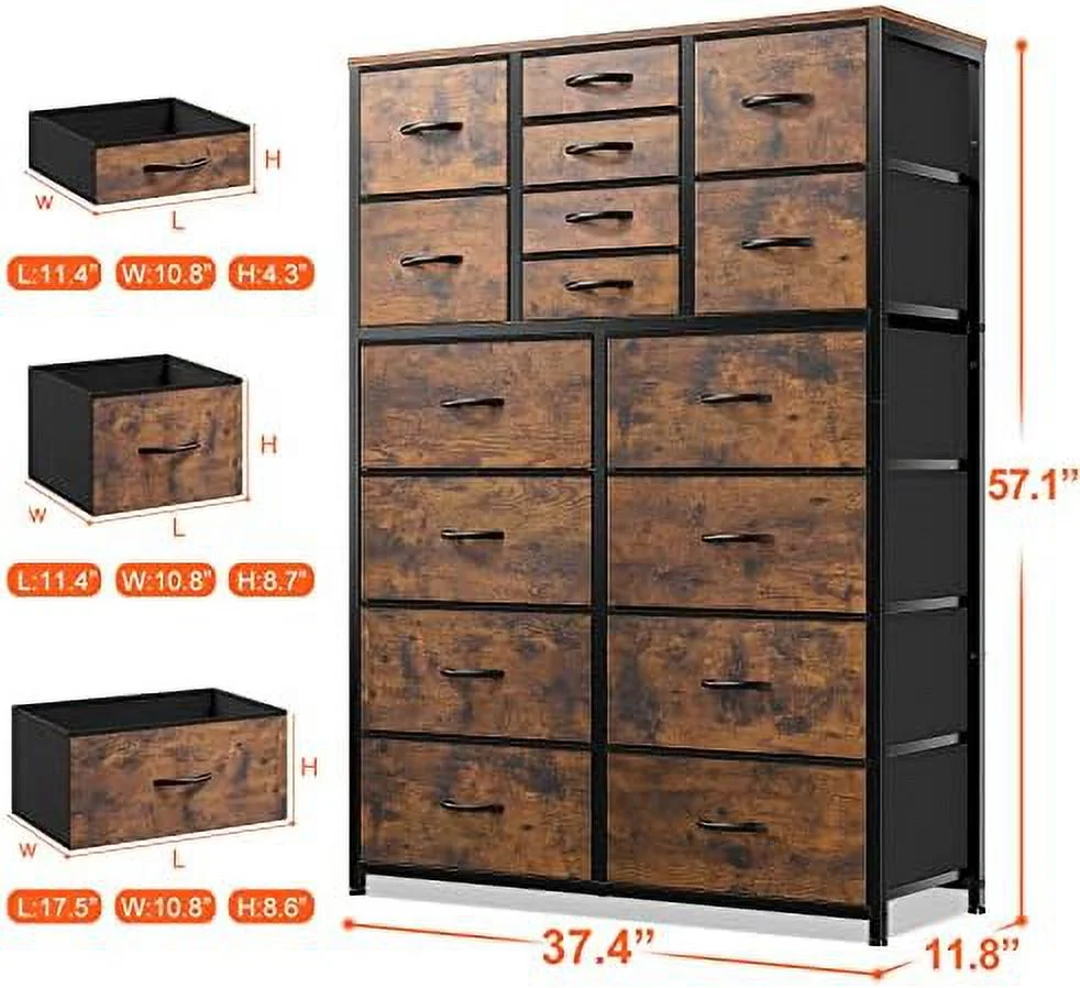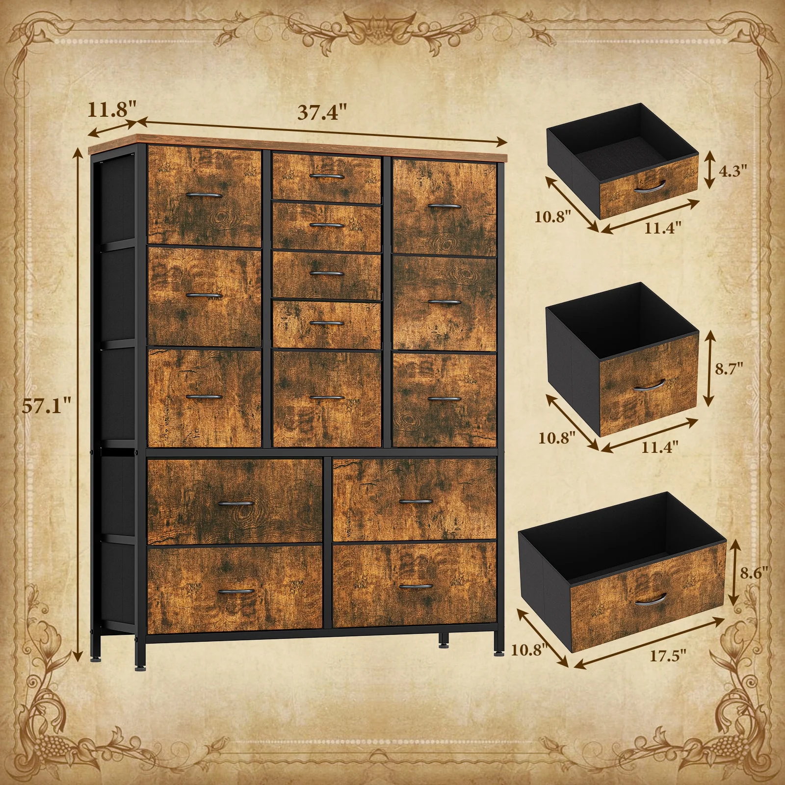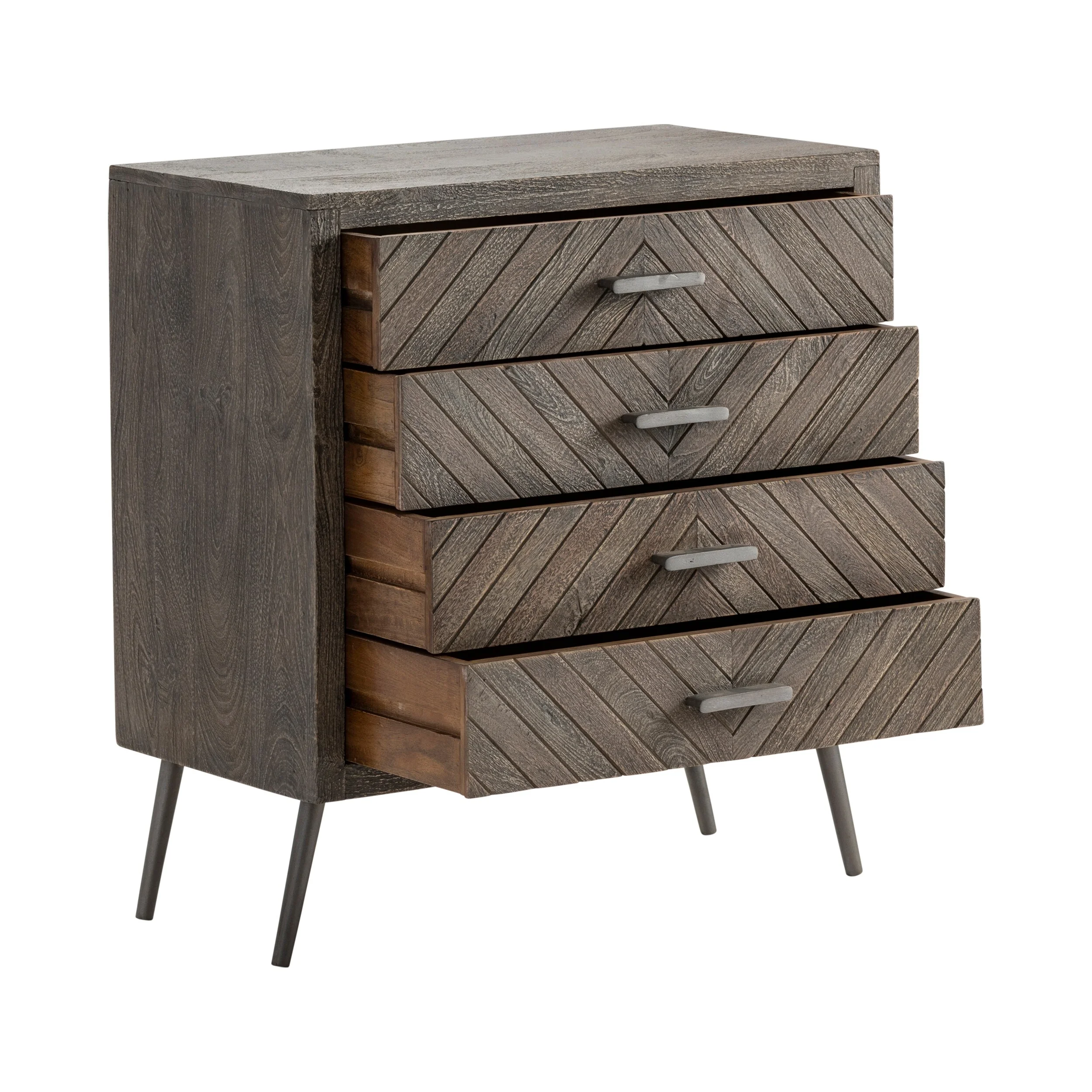 BenJara Alo 51 Inch Tall Dresser Chest, 5 Drawers, Metal Handles, Rustic White