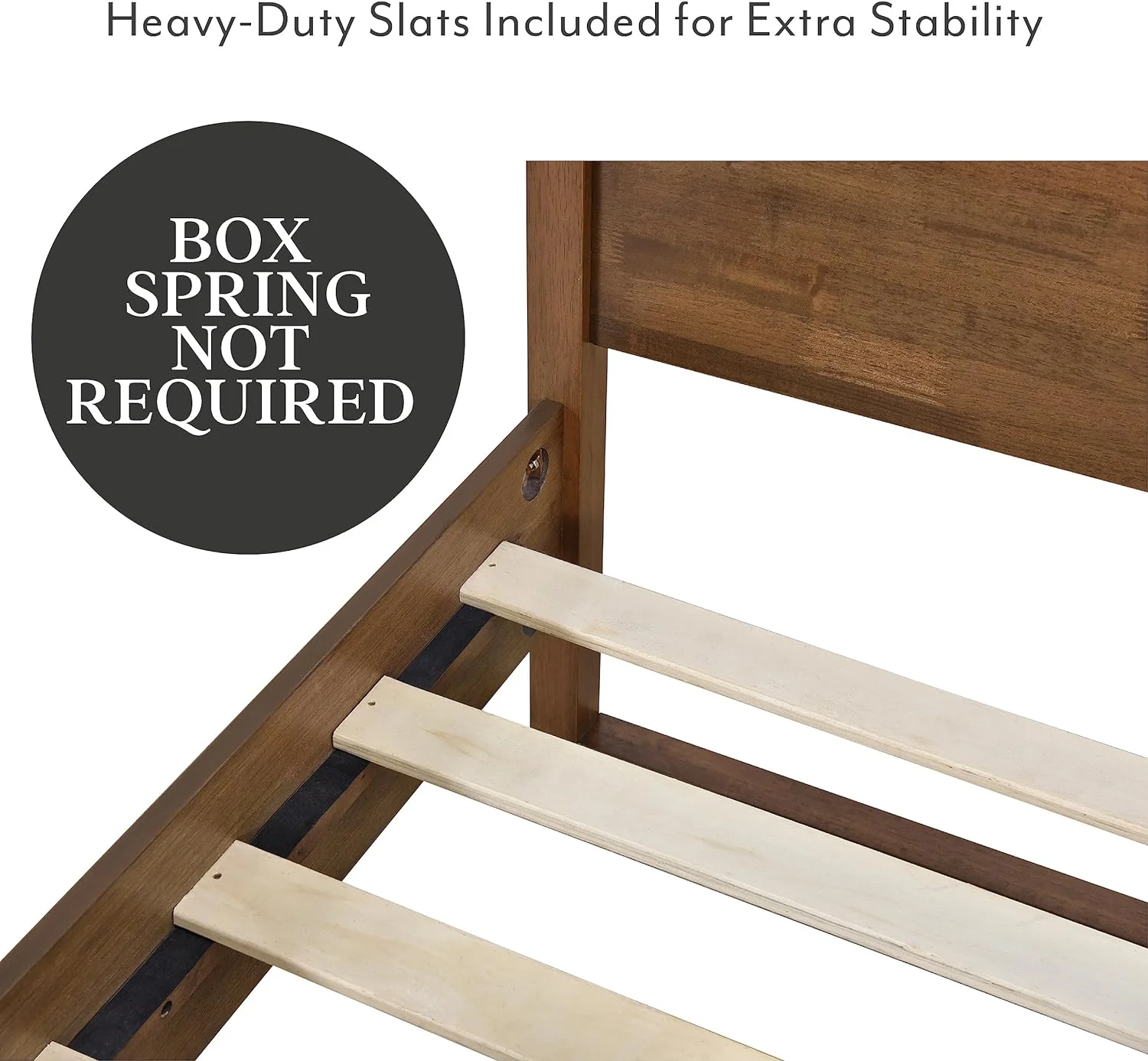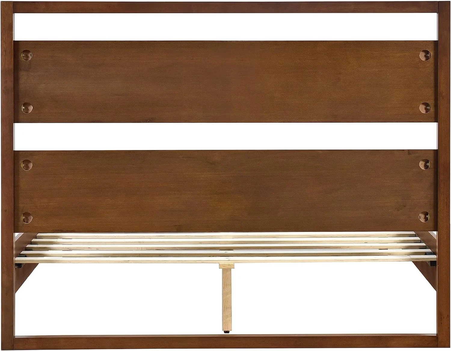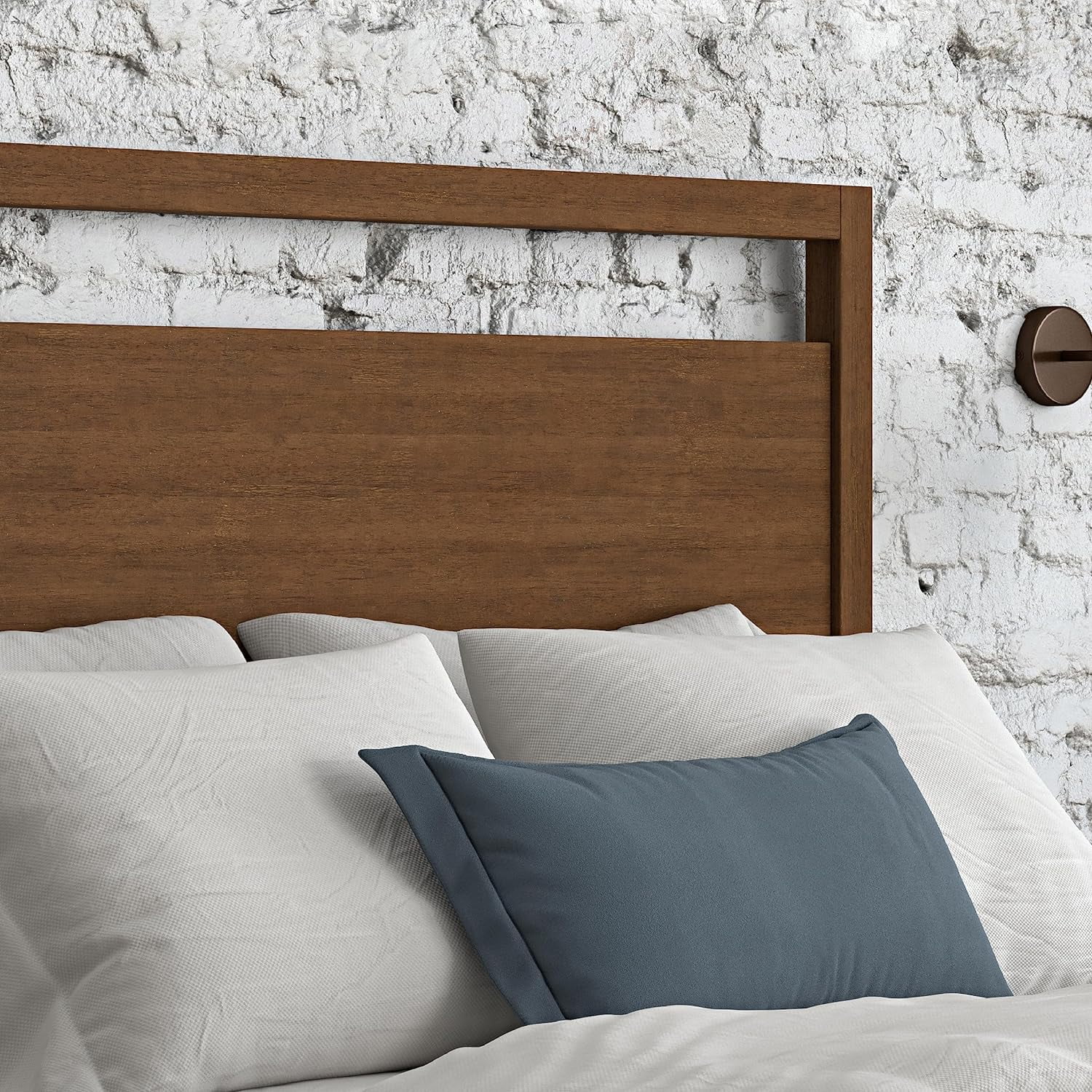 78.5" Minimalistic Solid Pine Construction Wood Platform Bed with Headboard Walnut